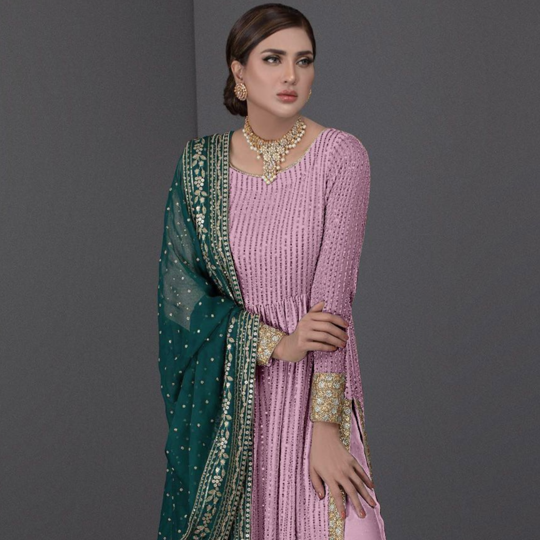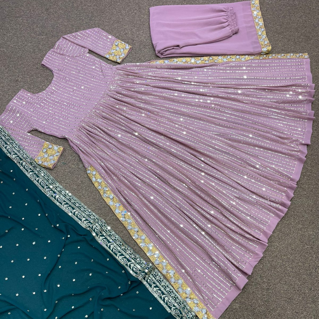 # PLAZZO FABRIC : HEAVY FAUX GEORGETTE WITH EMBROIDERY AND 5mm SEQUINS LACE BORDER WORK