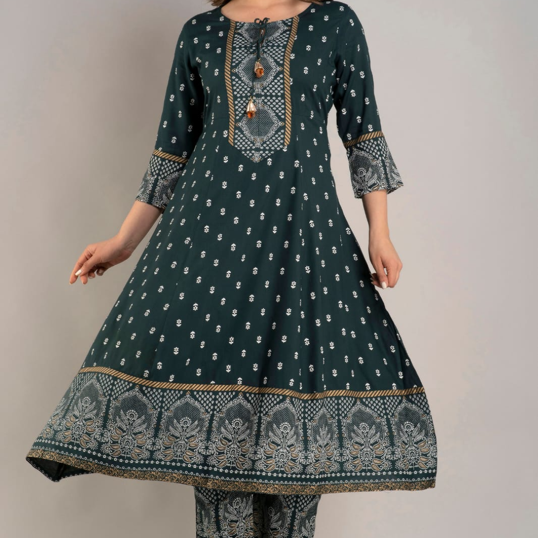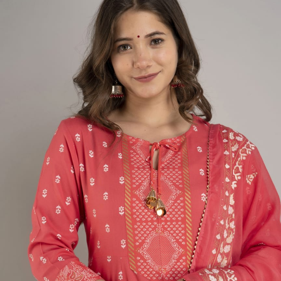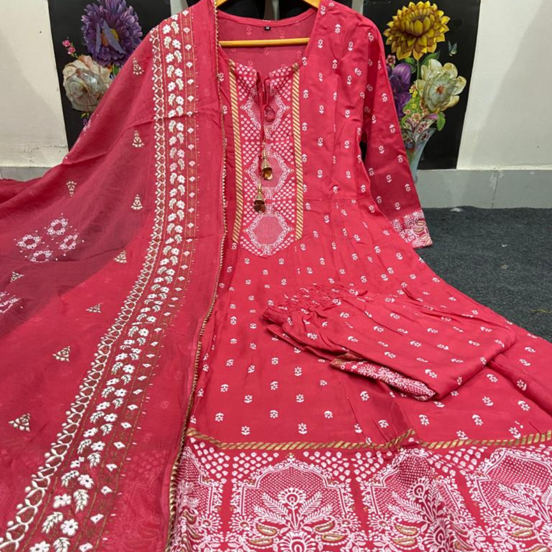 😍 Beautiful Heavy Printed Anarkali Kurti With Tassel And Full Printed Palazzo And Dupatta