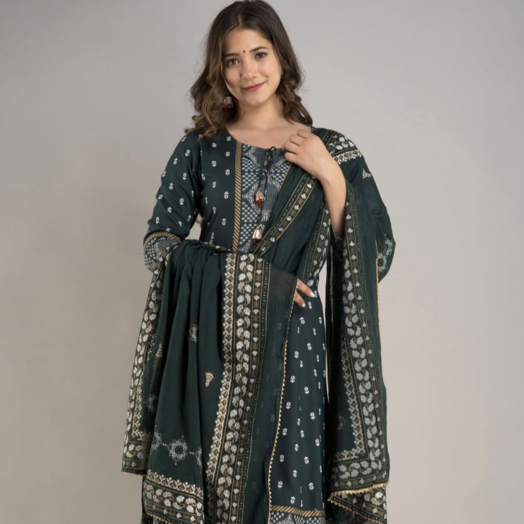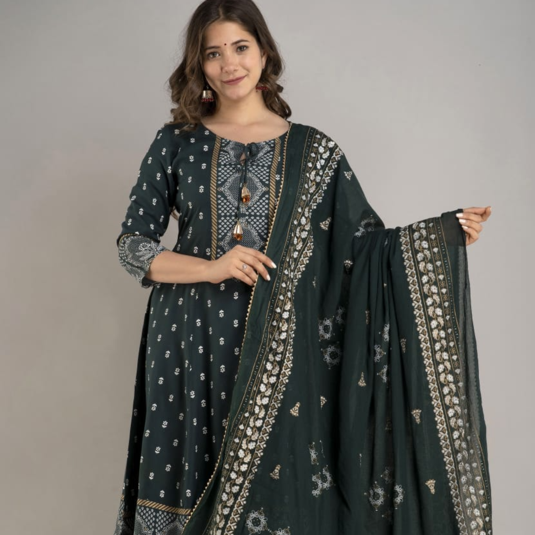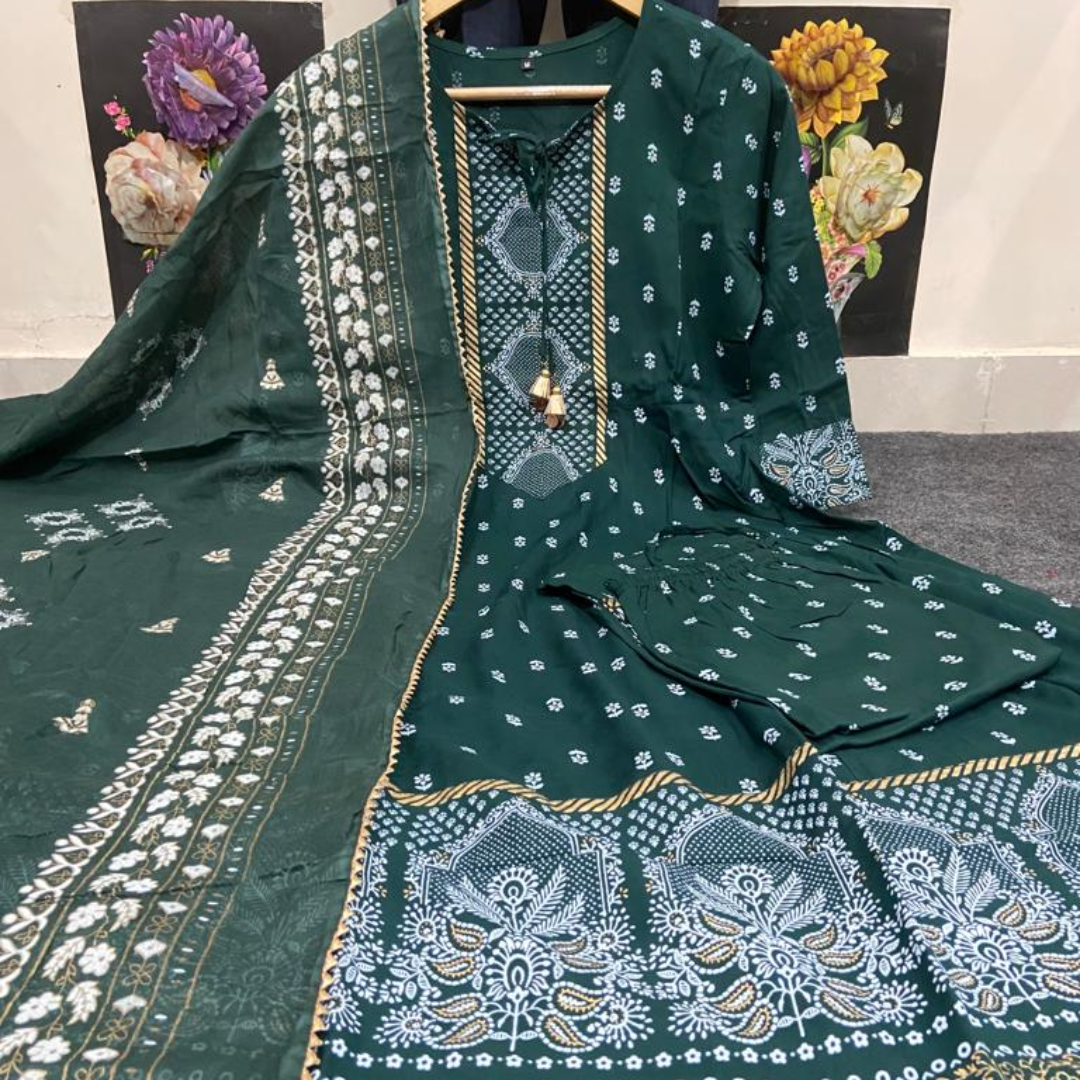 😍 Beautiful Heavy Printed Anarkali Kurti With Tassel And Full Printed Palazzo And Dupatta