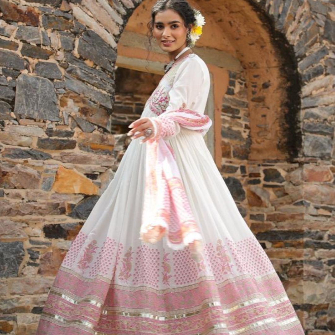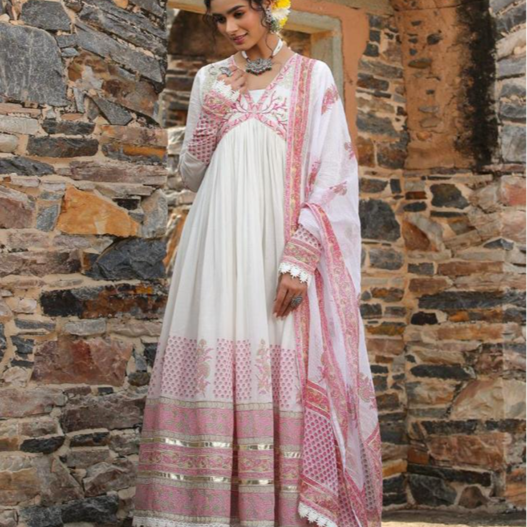 Beautiful Aliya style Anarkali two-piece suit with heavy embroidery_ 😍🪡🪡