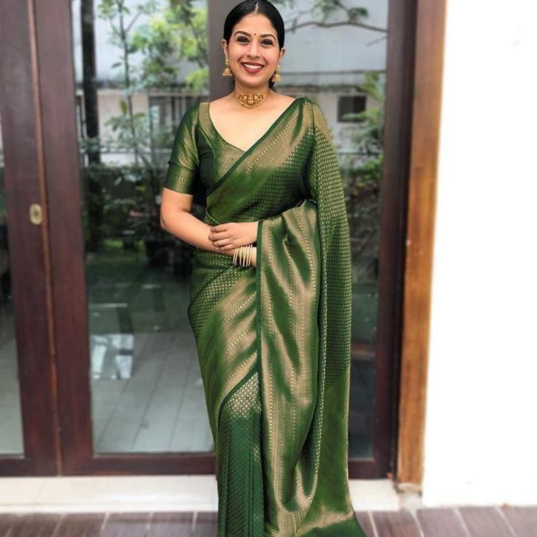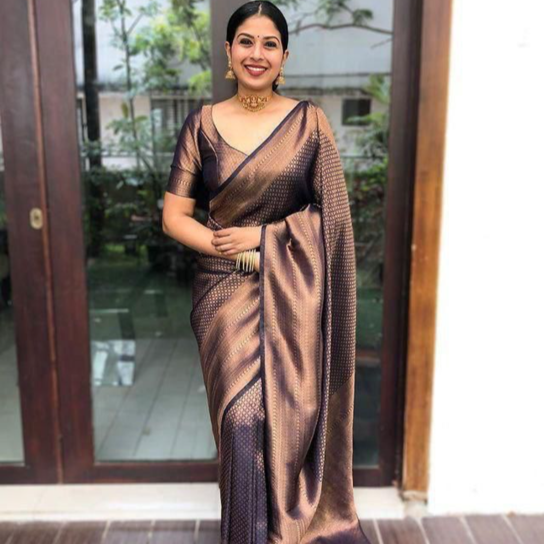 Beautiful Art Silk Jacquard Border Saree With Unstitched Running Blouse For Women Wedding Wear Party