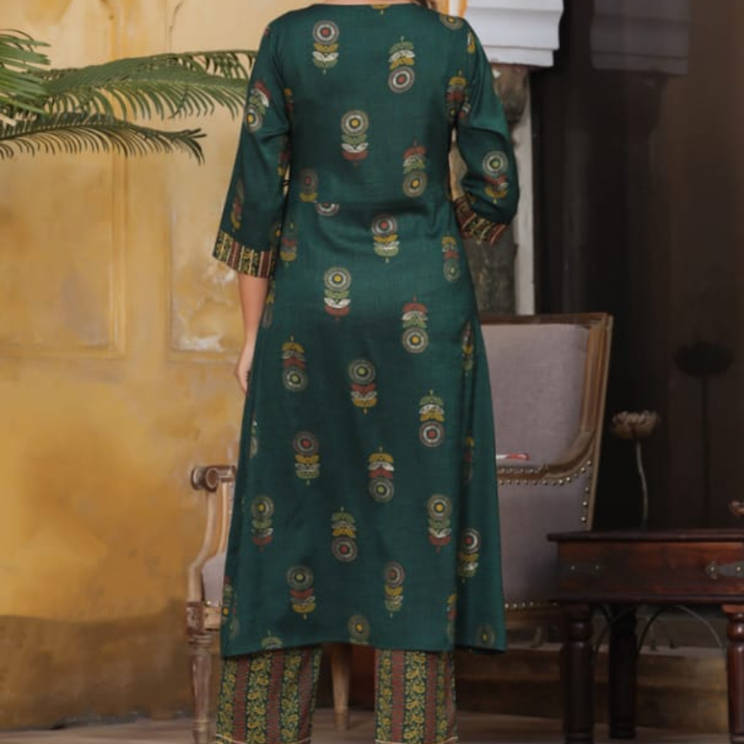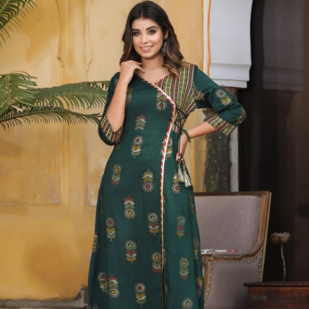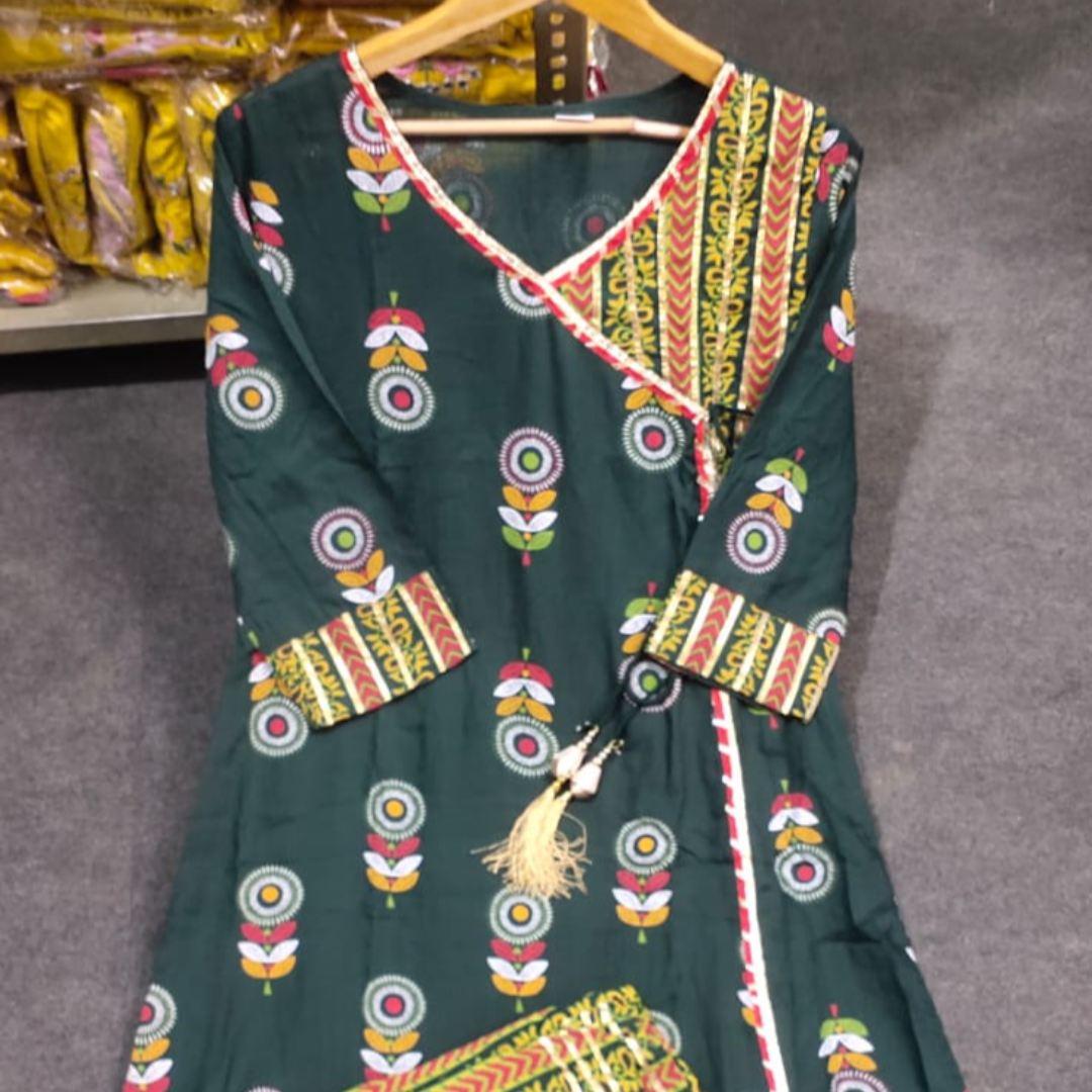 💃 *Beautiful Fabric rayon Slub Printed kurta with Lace work with Reyon printed Pant *💃