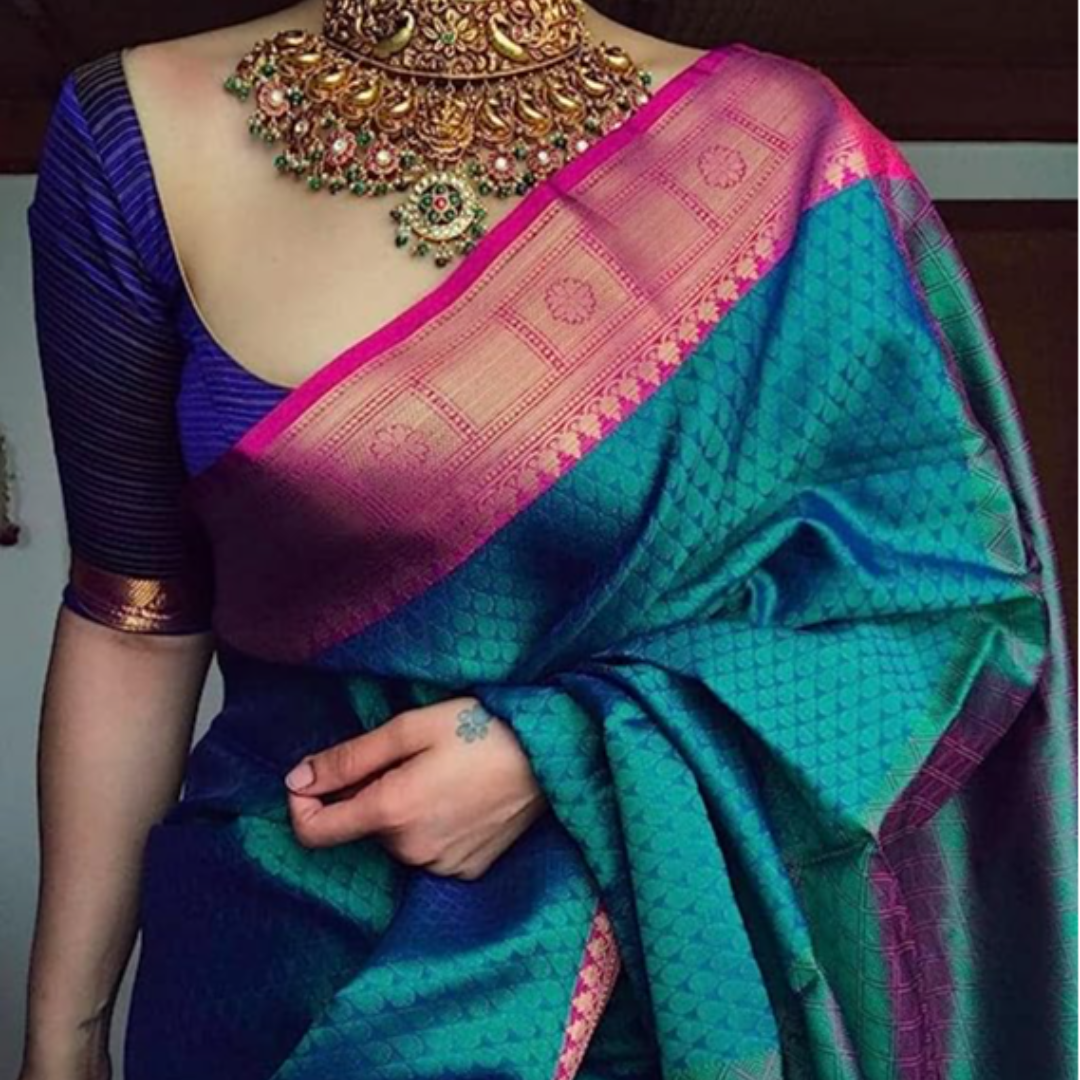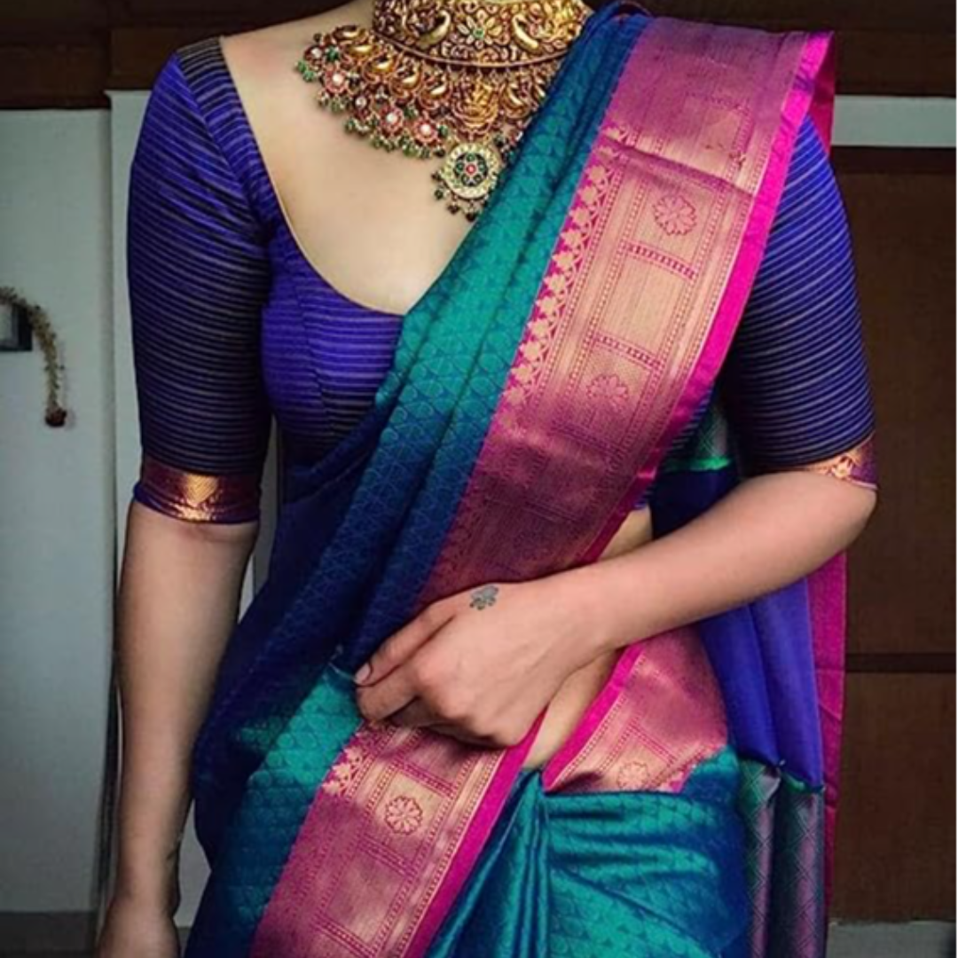 Fabric: Kanchipuram Silk, Blouse Fabric Kanchipuram Silk. Work: Jacquard Woven Stylish Sari, Zari Woven.