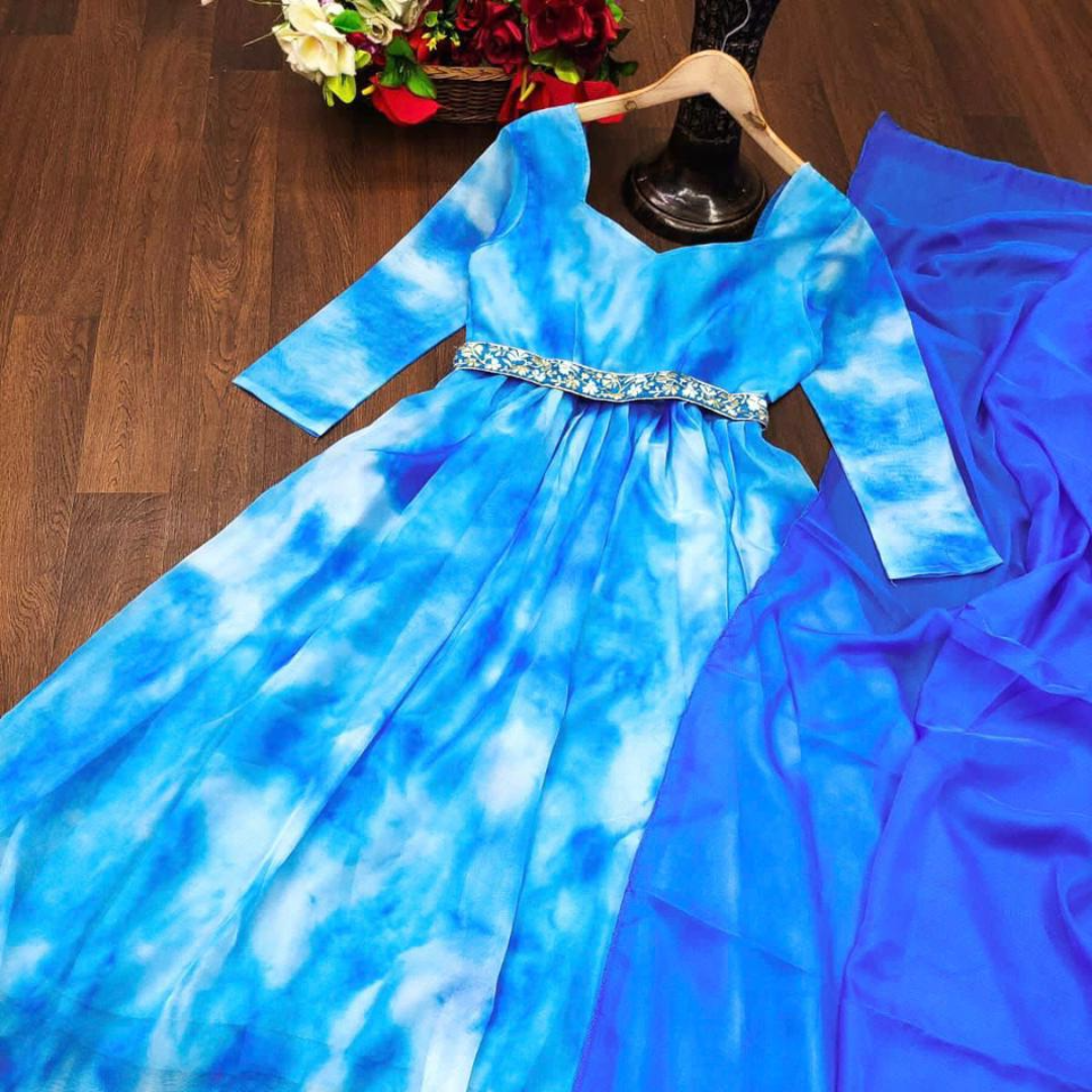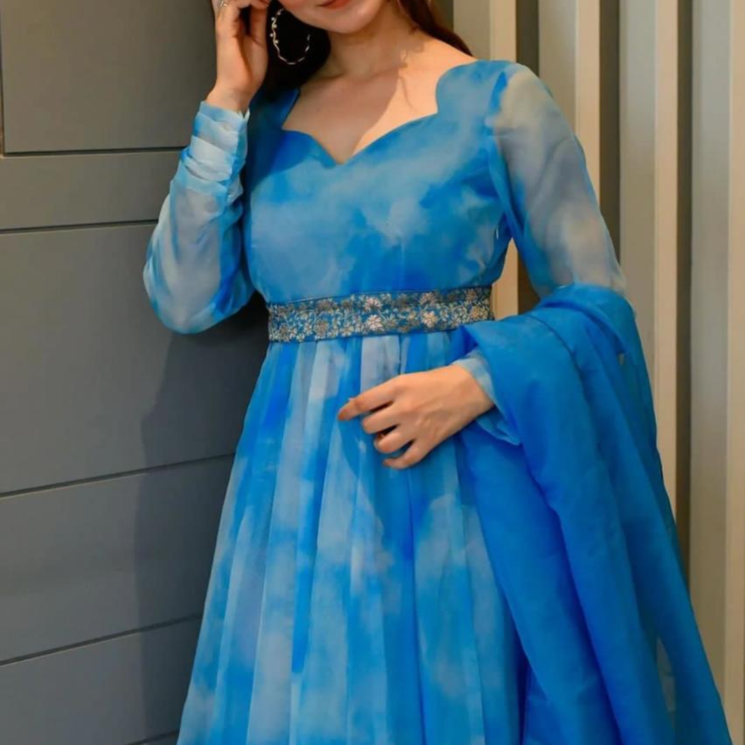 Celebrate This Festival of Joy In The Best Ethnics Here Presenting You A Beautiful Organza Suit For The Upcoming Festival Season And Weddings With Beautiful EMB Belt๐๐