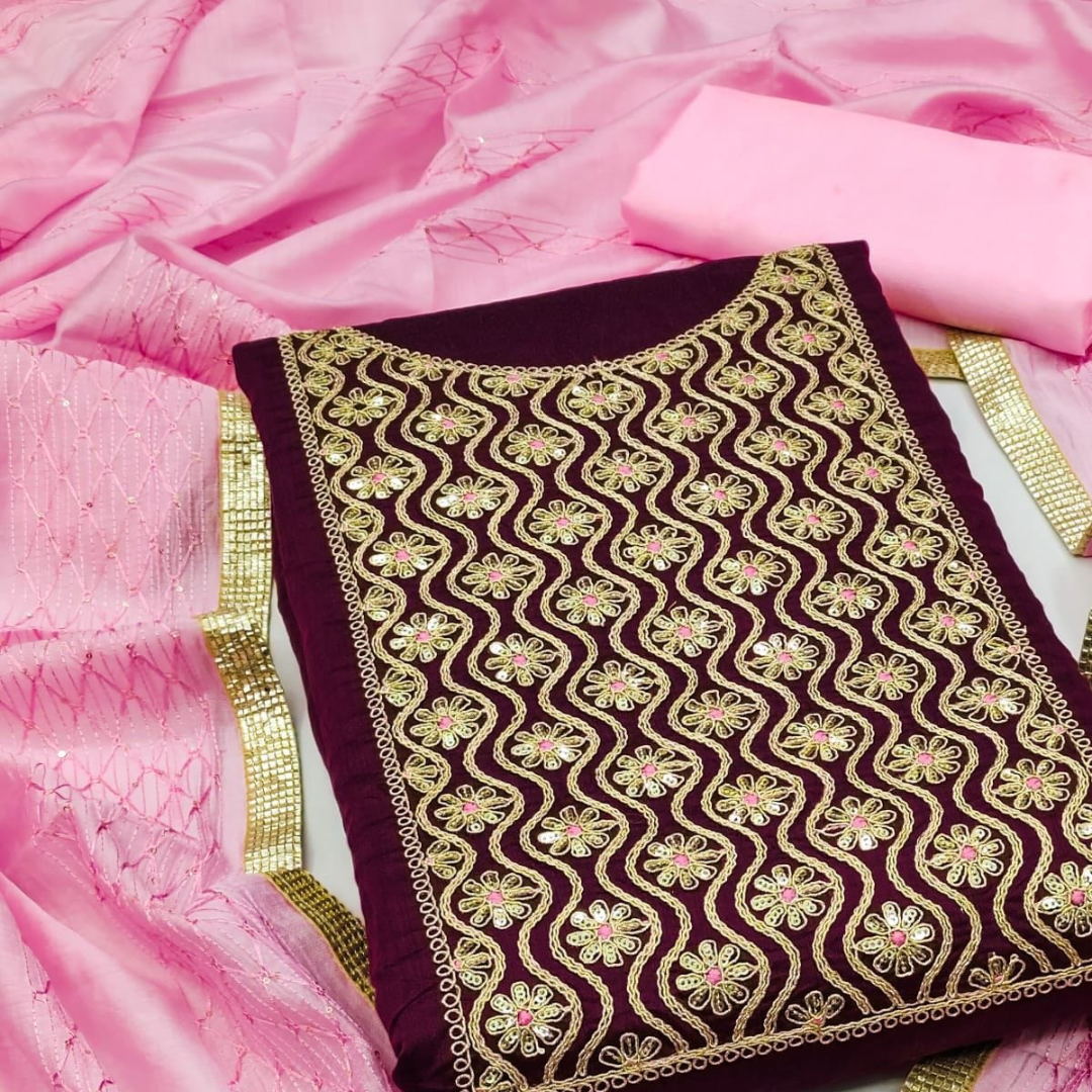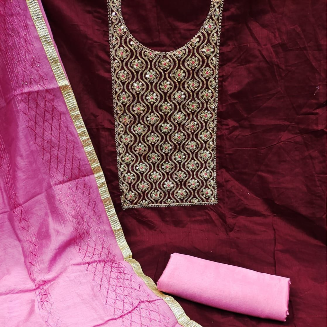 👚 TOP-MODAL CHANDERI SILK WITH CODDING WORK ON THE NECK (1.9 MTR)