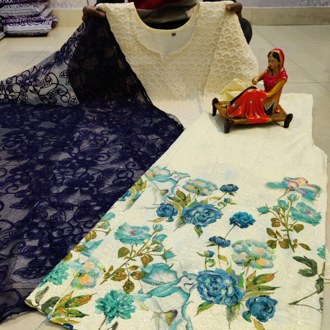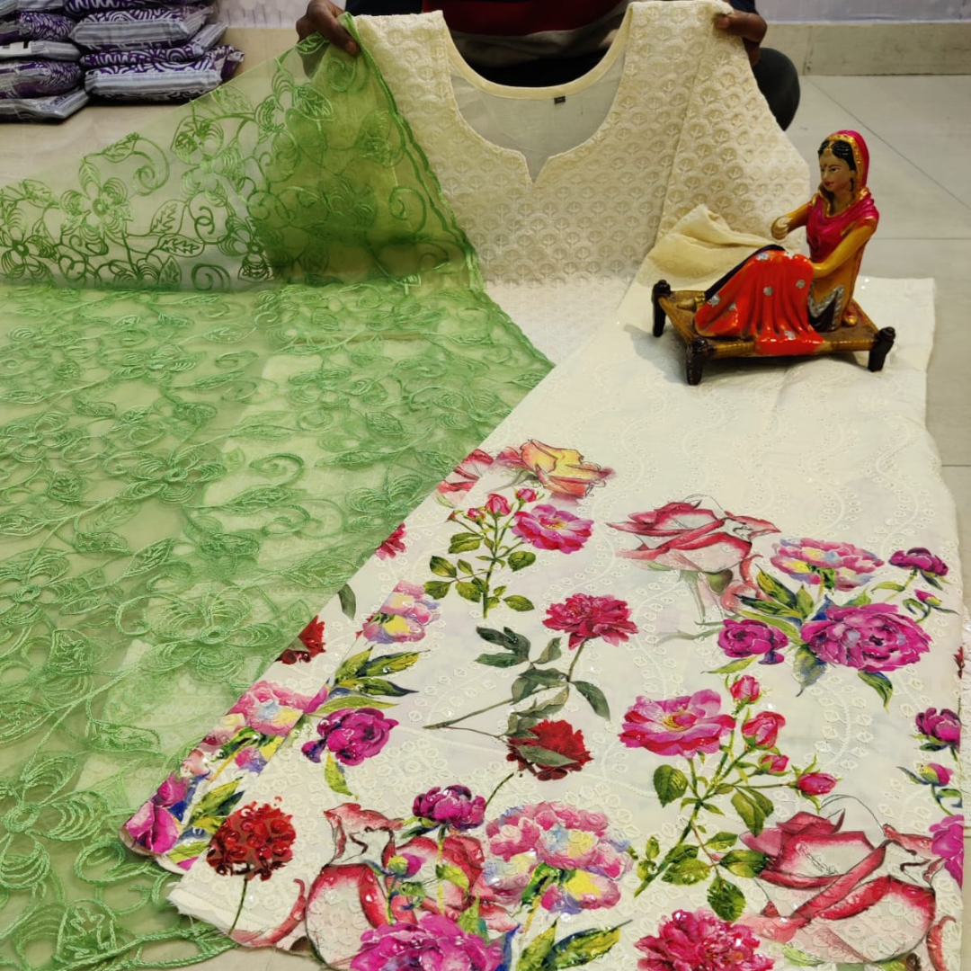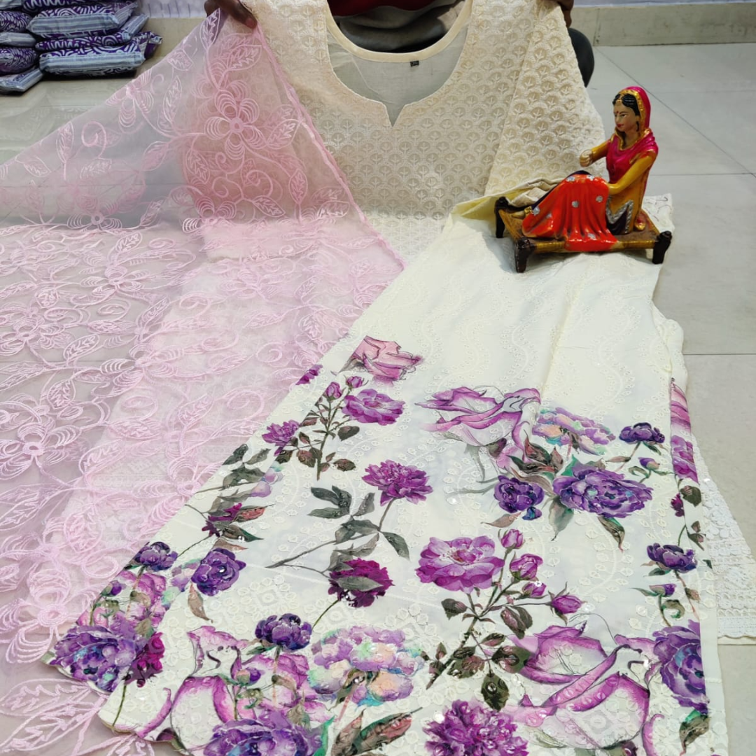 Presents Beautifull Articles Of Chikankari Kurti With Chikan Digital Mastani Sharara and Matching net fabric Duppata💐💐 (4)