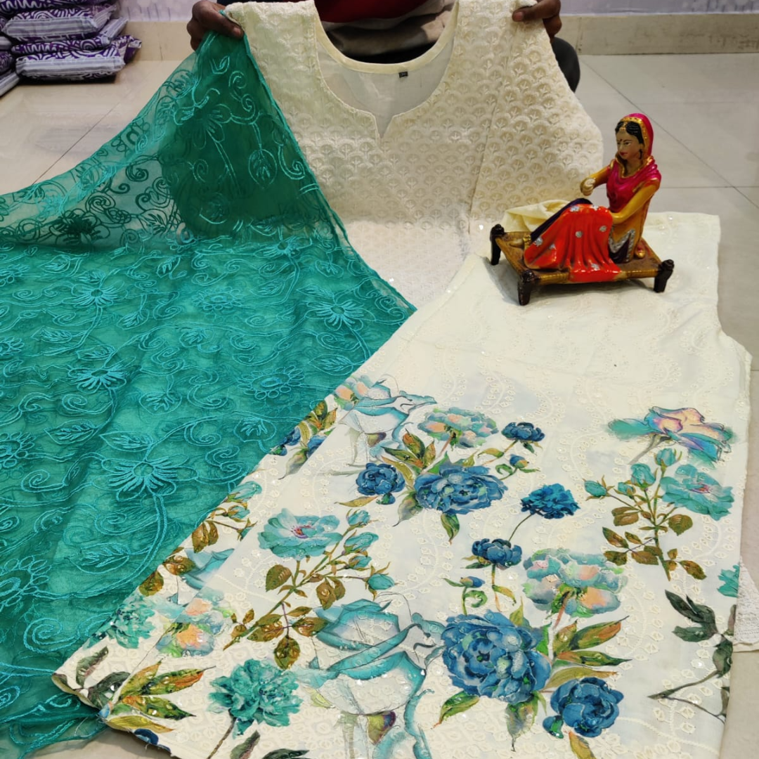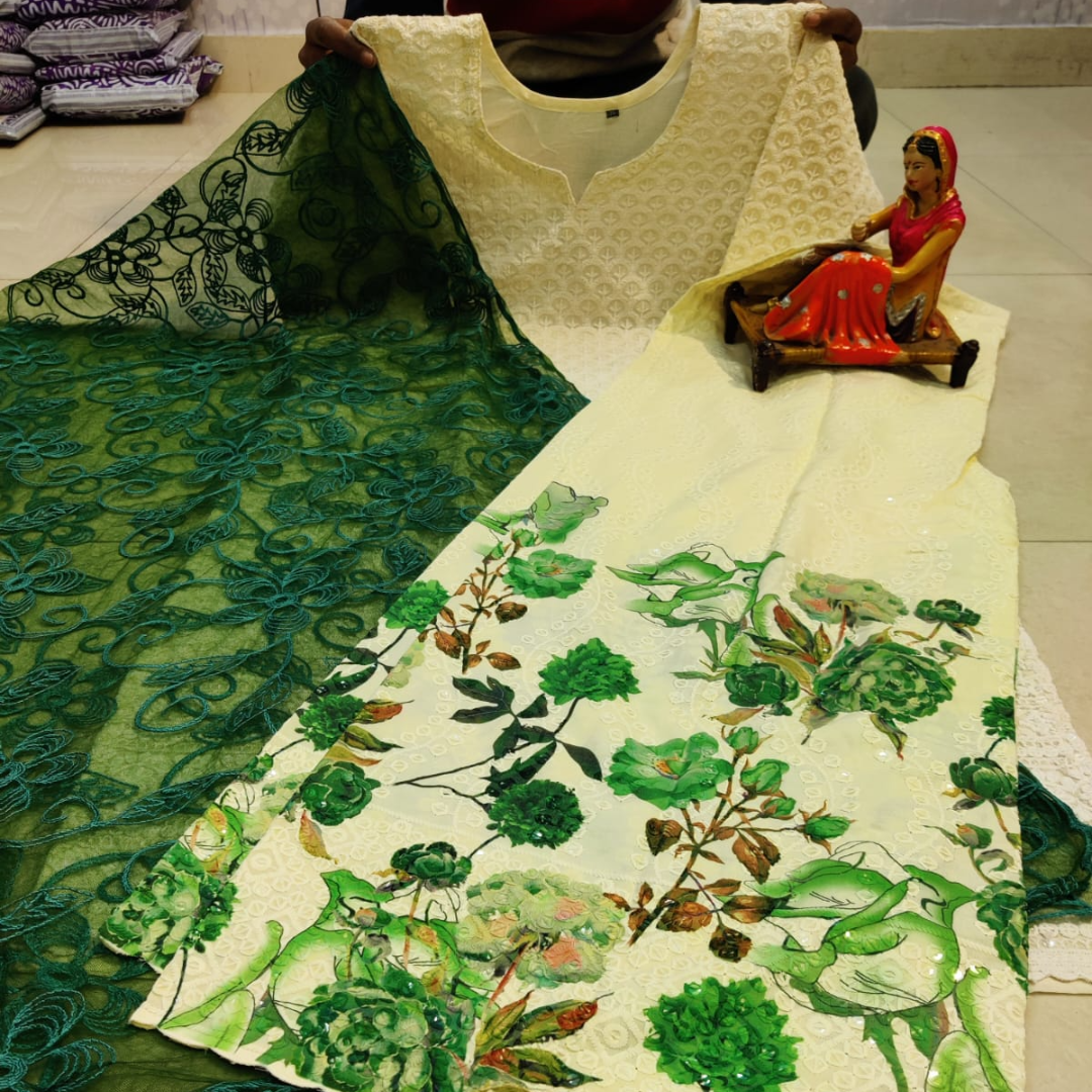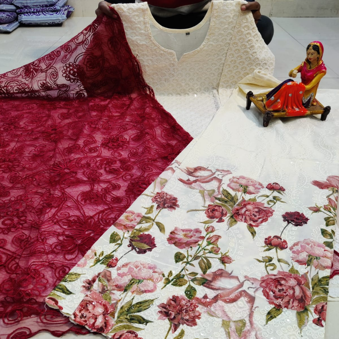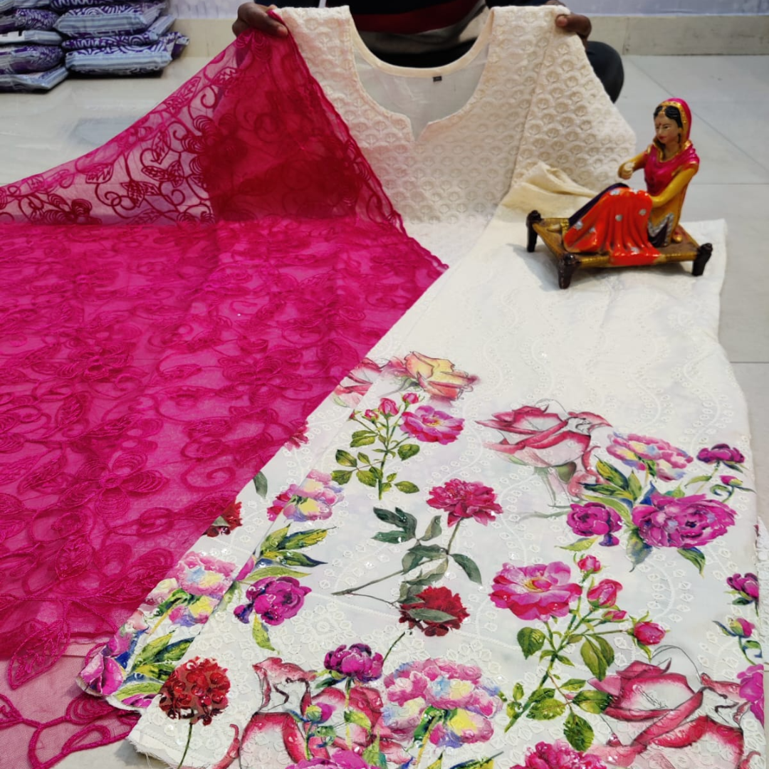 Presents Beautifull Articles Of Chikankari Kurti With Chikan Digital Mastani Sharara and Matching net fabric Duppata💐💐 (4)