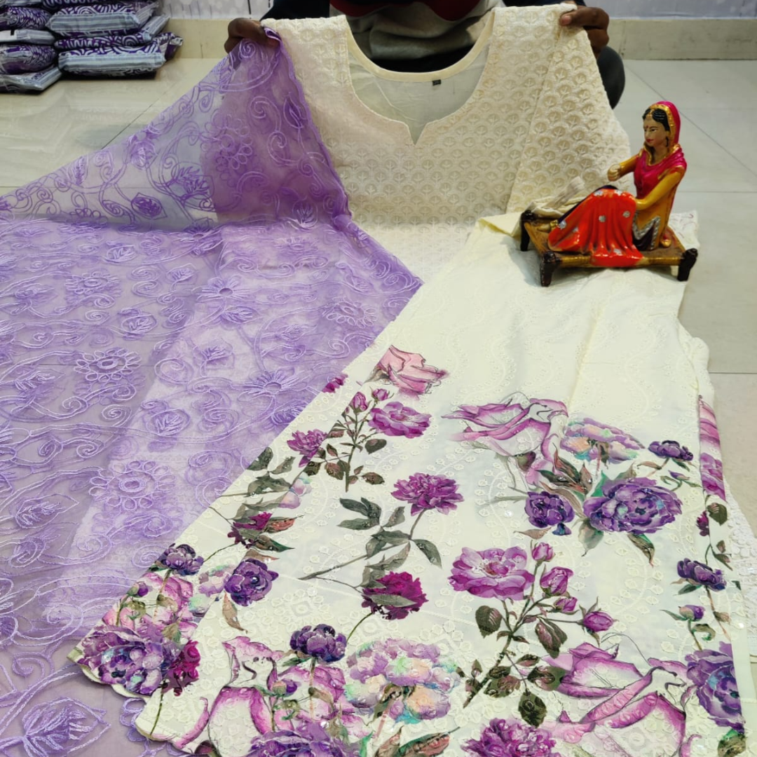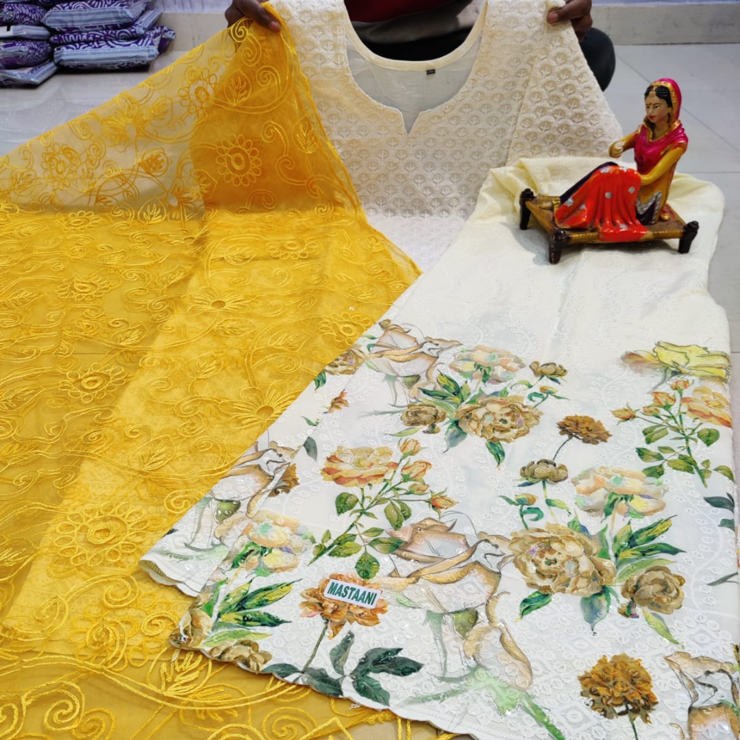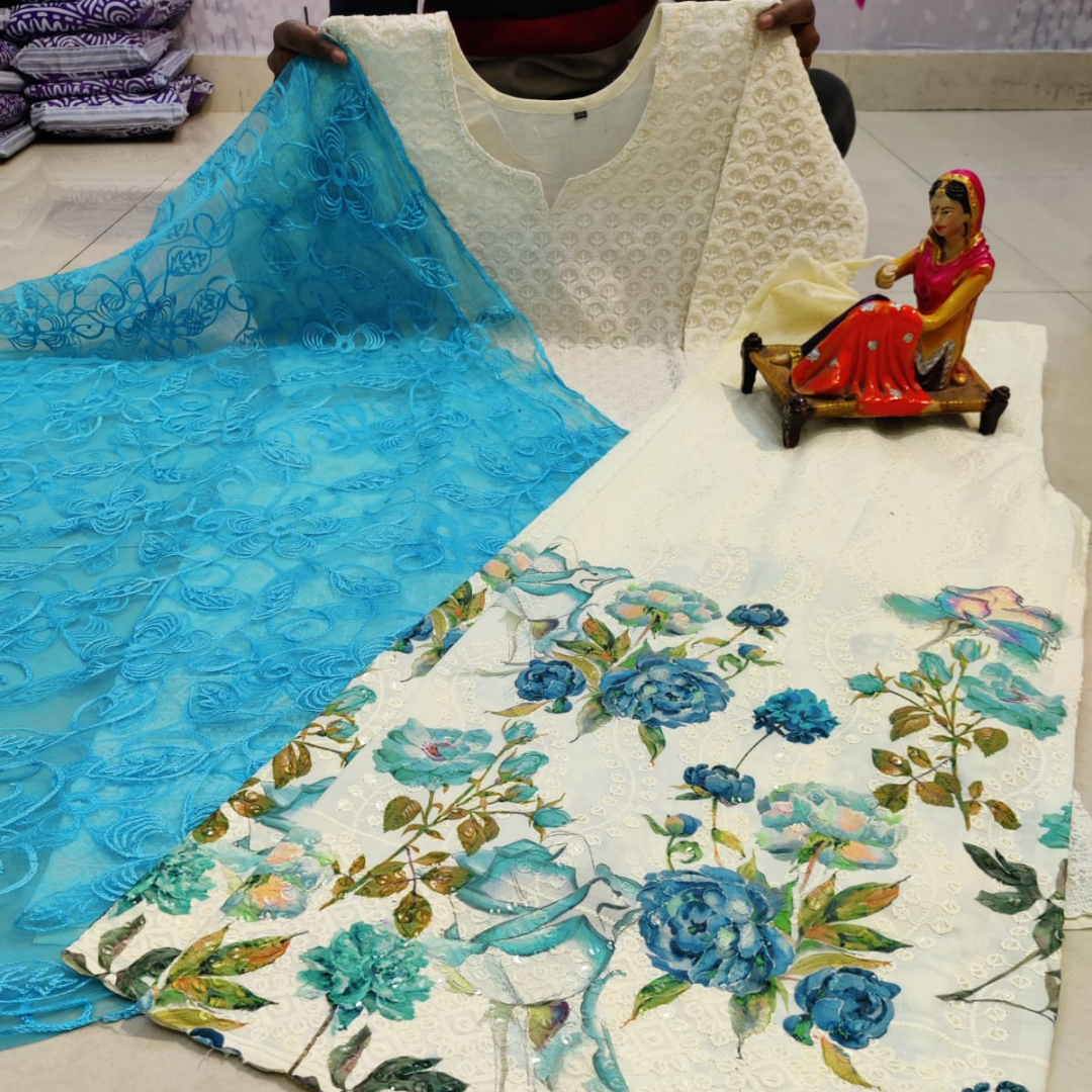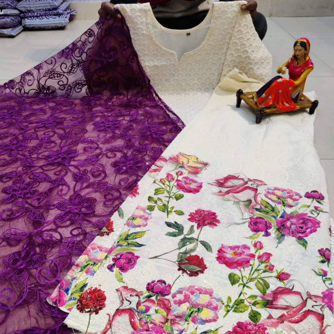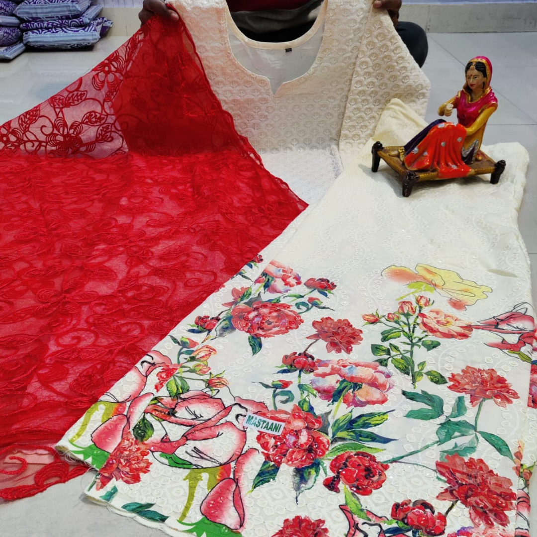 Pure Cotton Fabric Beautiful Chikan Digital print Mastani Shrarara upto 4xl