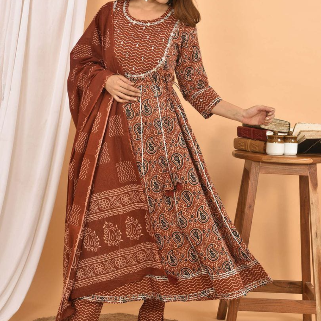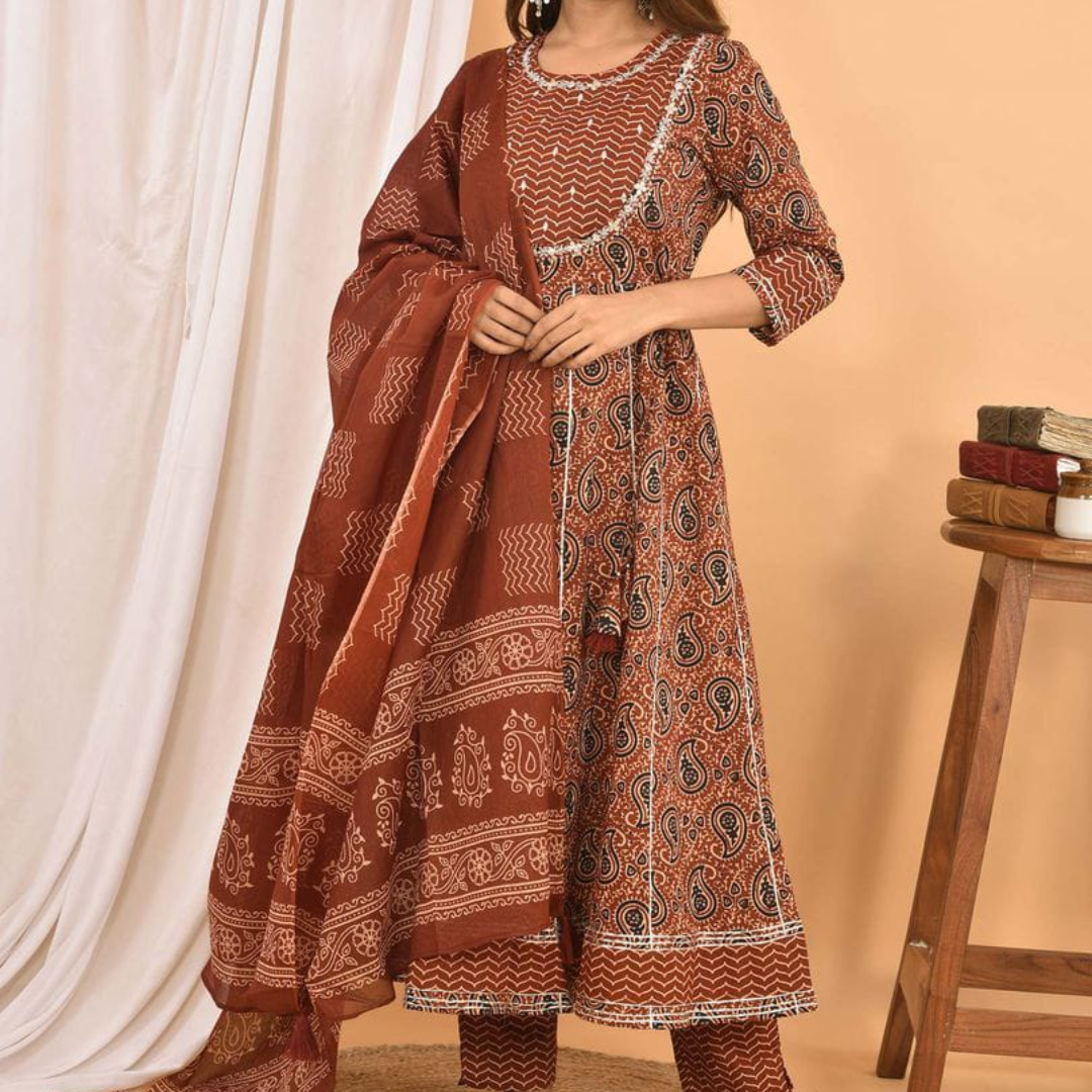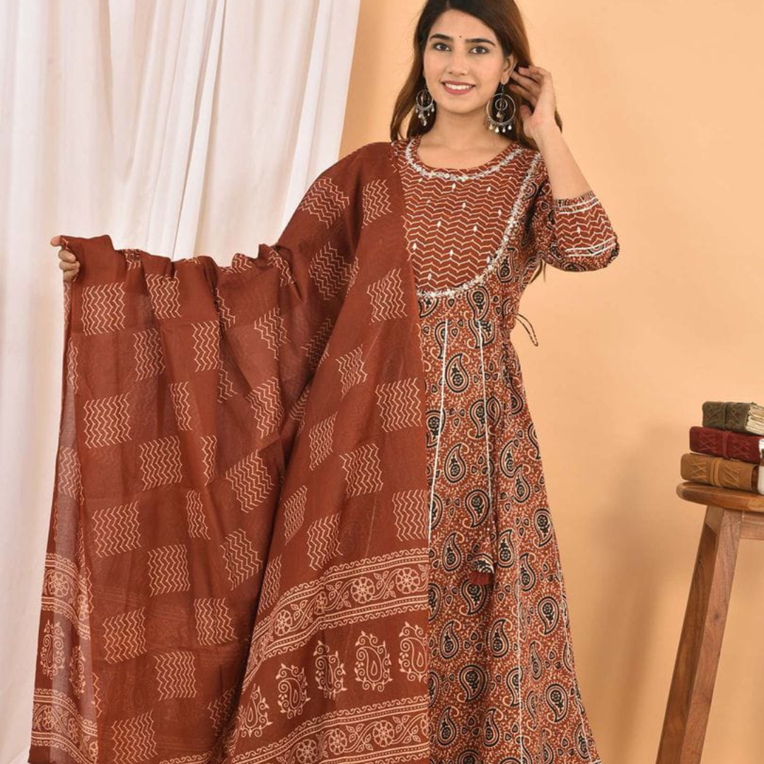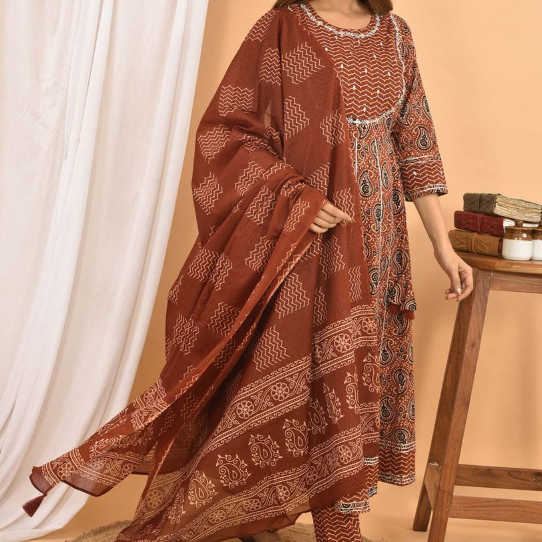 NEW LAUNCHING BEAUTIFUL CLASSICAL PRINT COTTON KURTI WITH PENT WITH DUPPATA FULL 3 PIECE SET๐ซ (4)