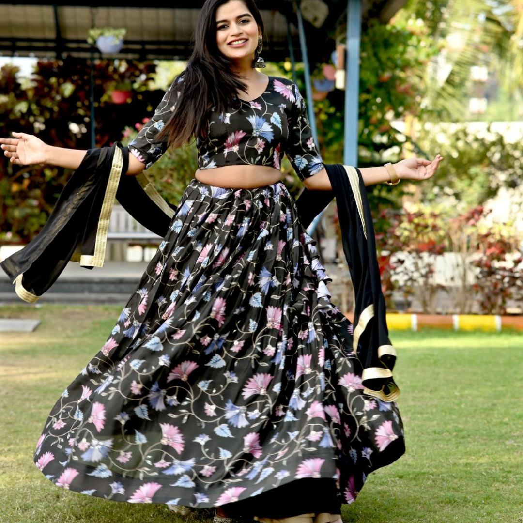 π *Be the center of Attractions with this Chinnon With Position Print designer lehenga choli set, Select this with one blink and add in your collections.*π₯°