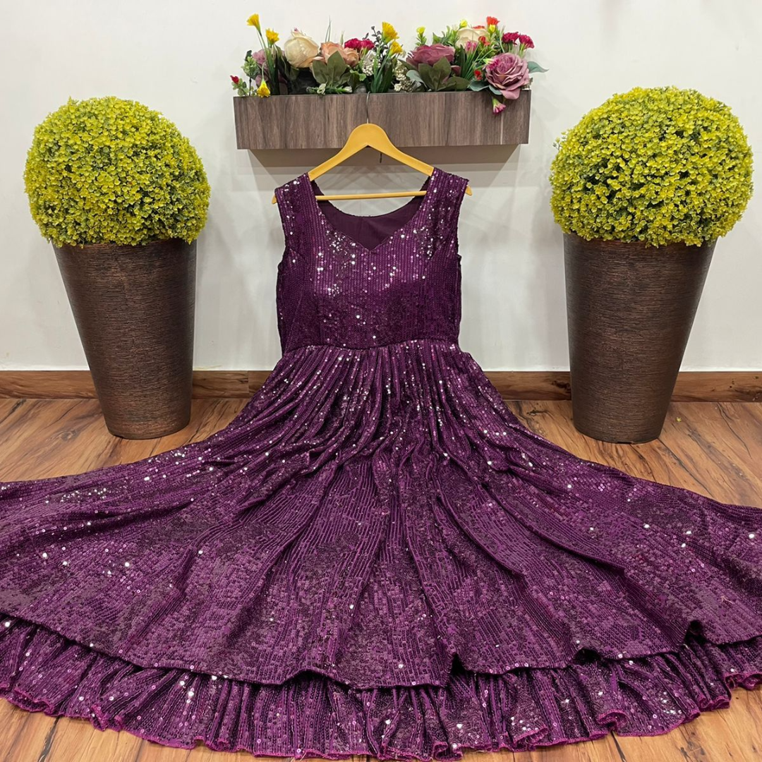 Looking for this same colour beautiful Designer Gown On heavy Georgette fabric and Padded with Font and back both side havy Sequnce work with 2 Layer Canvas patta.
