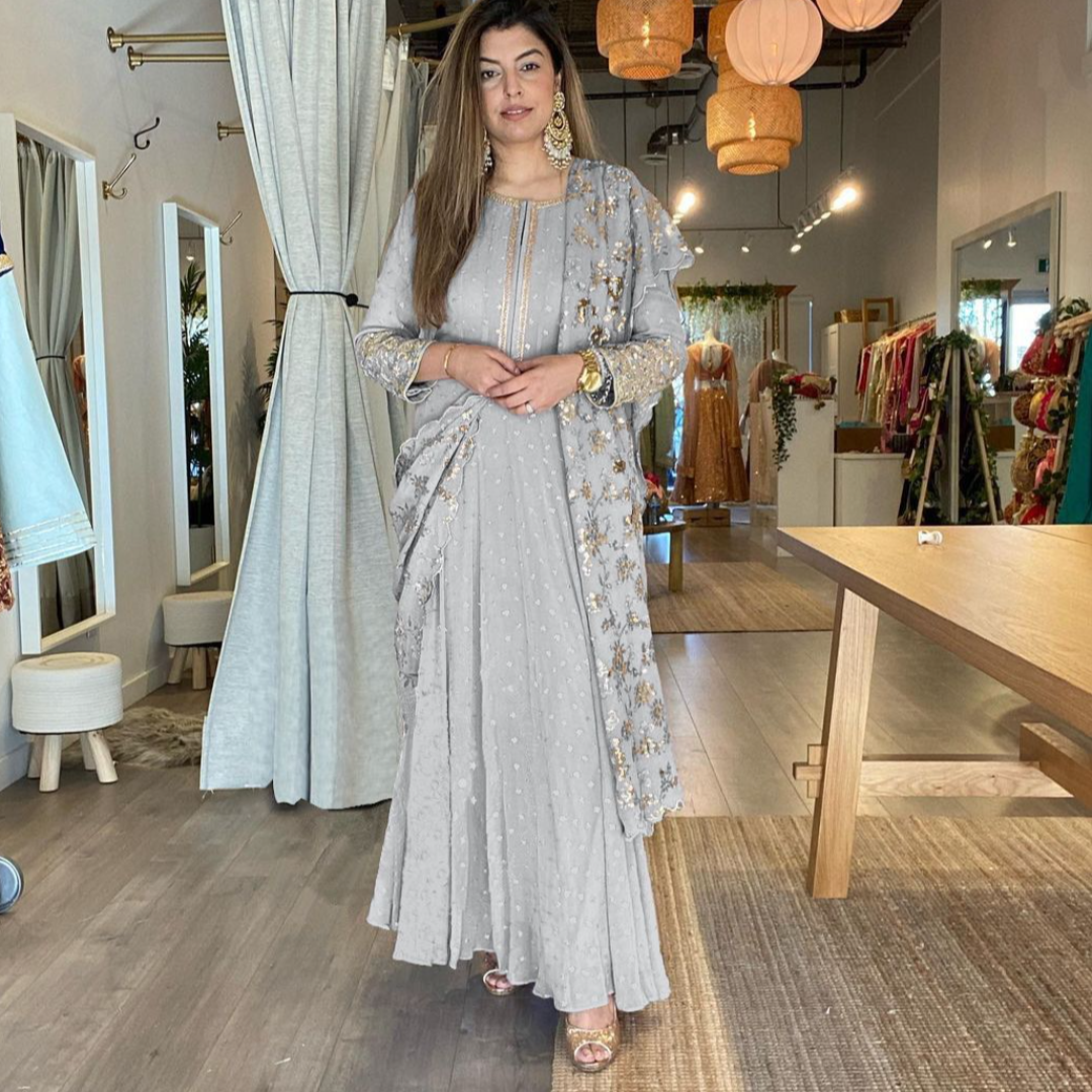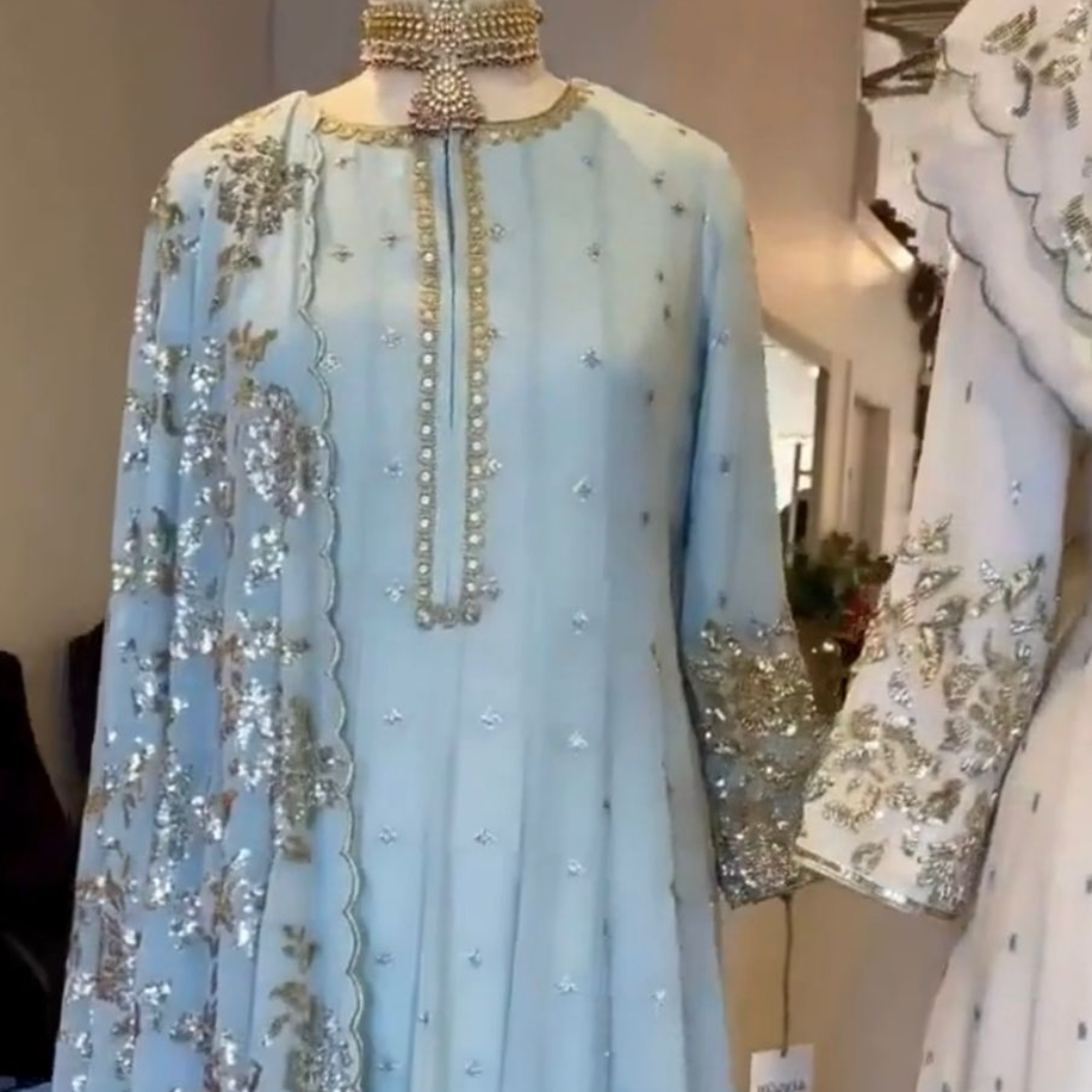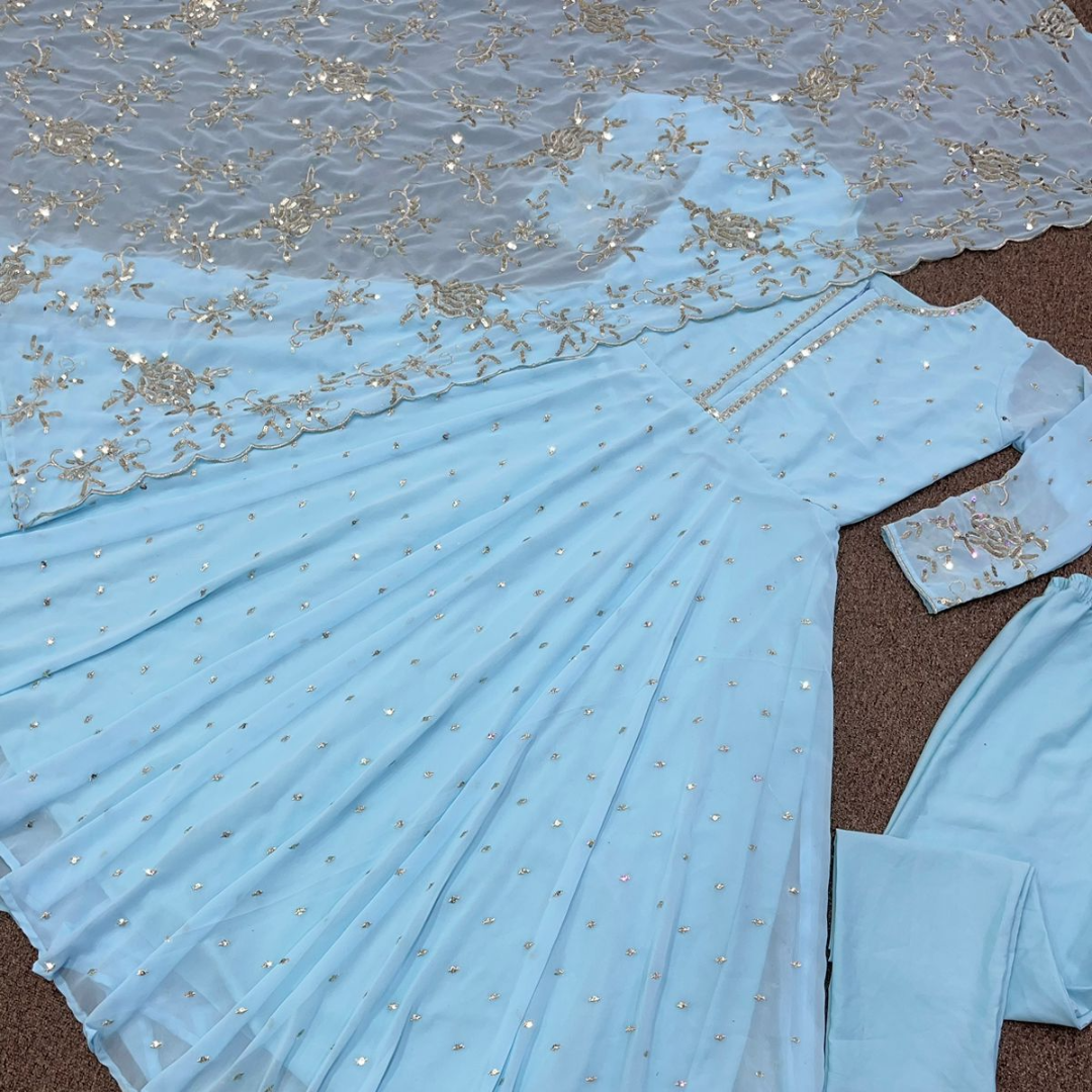 DUPATTA FABRIC : HEAVY FAUX GEORGETTE WITH HEAVY EMBROIDERY AND 5mm SEQUENCE