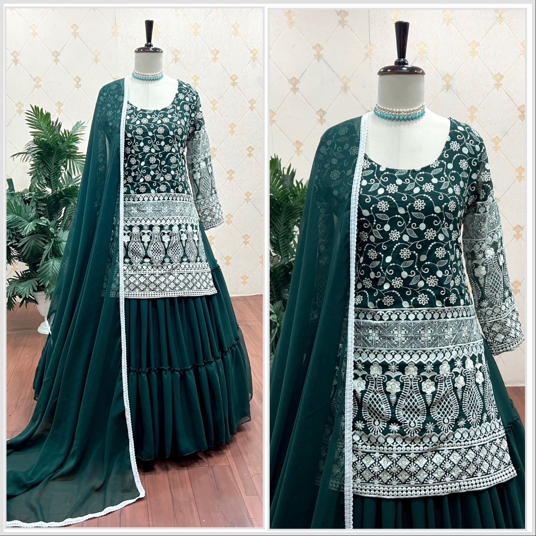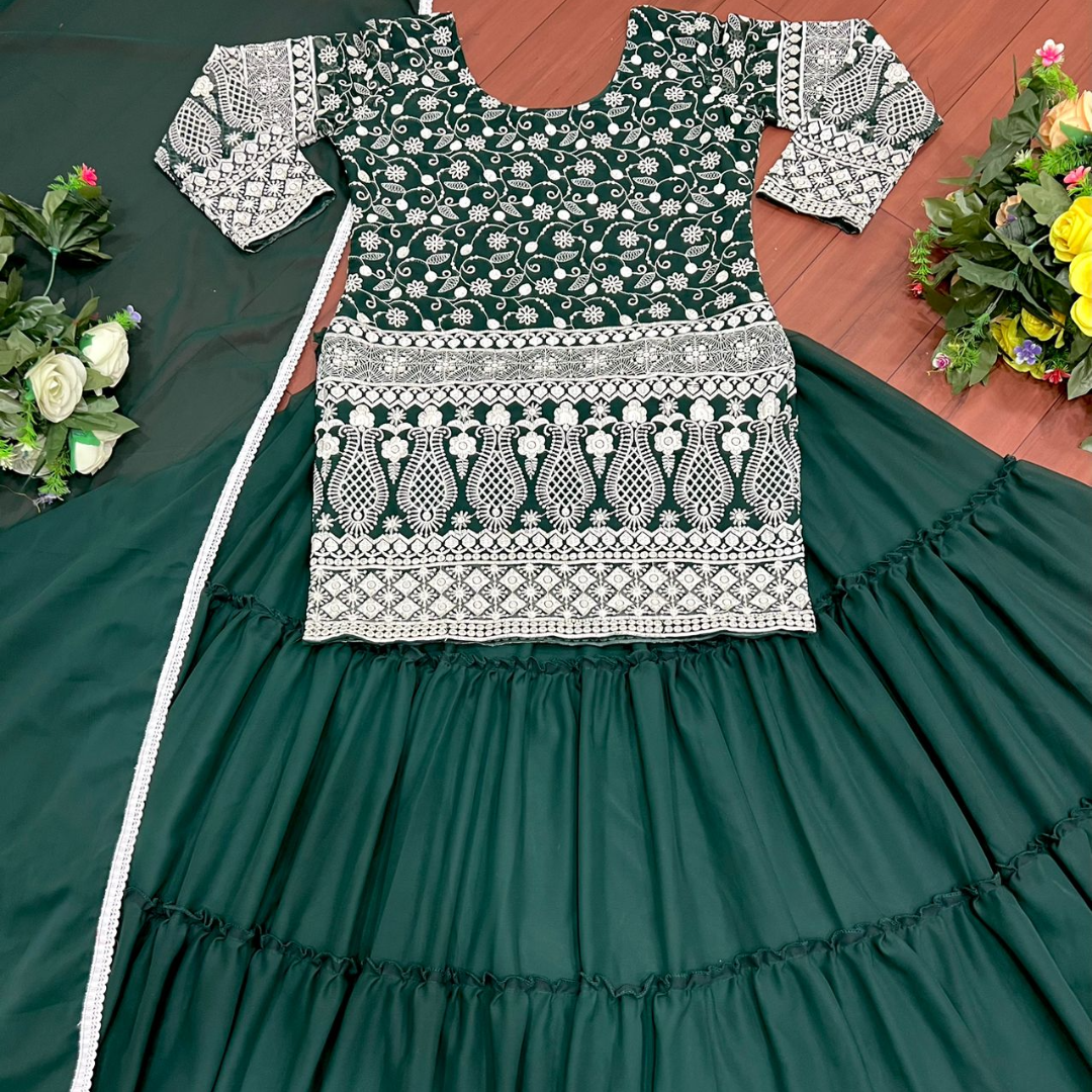 💃Lehenga Fabric *: Fox Georgette With *Full-Flyer 3 Step Ruffles Work With