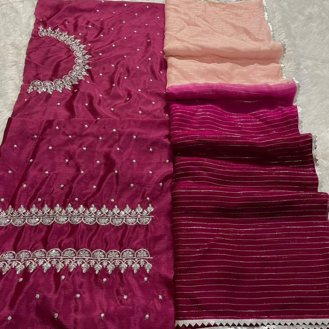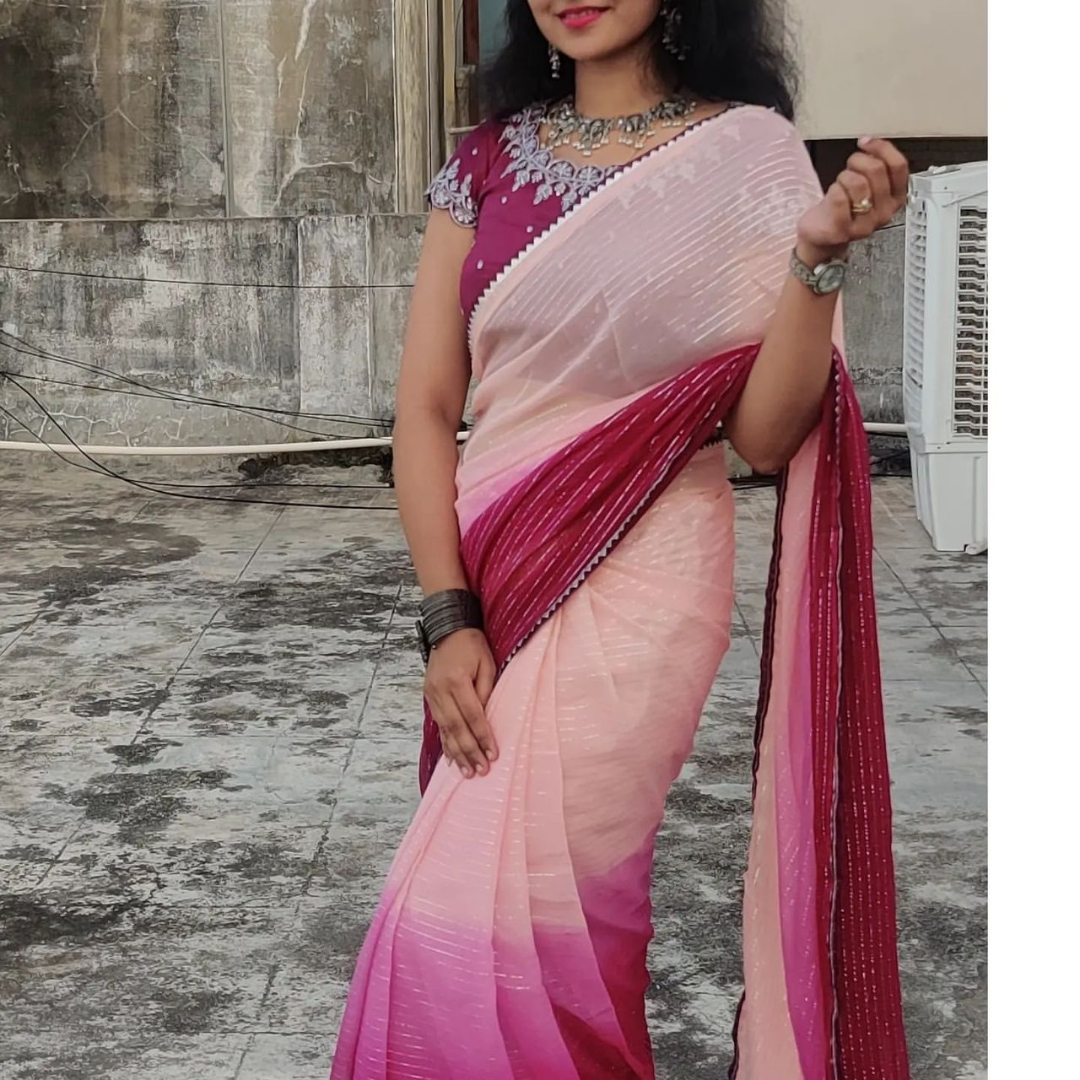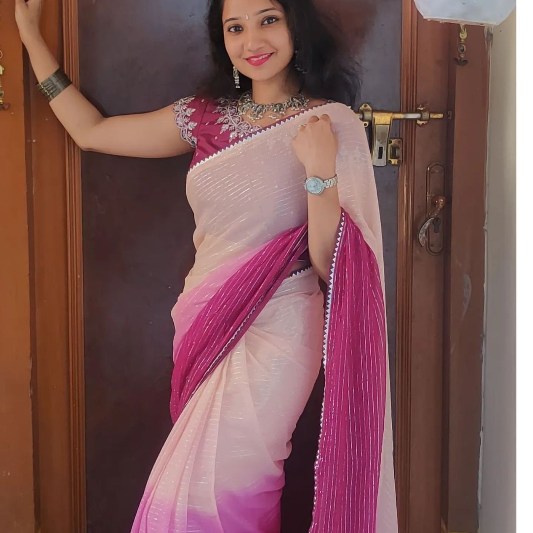 🌷🌷 Beautiful dual-shaded pure georgette sarees with fancy lace border & paired up with nice Chinon sequence work unstitched blouse
