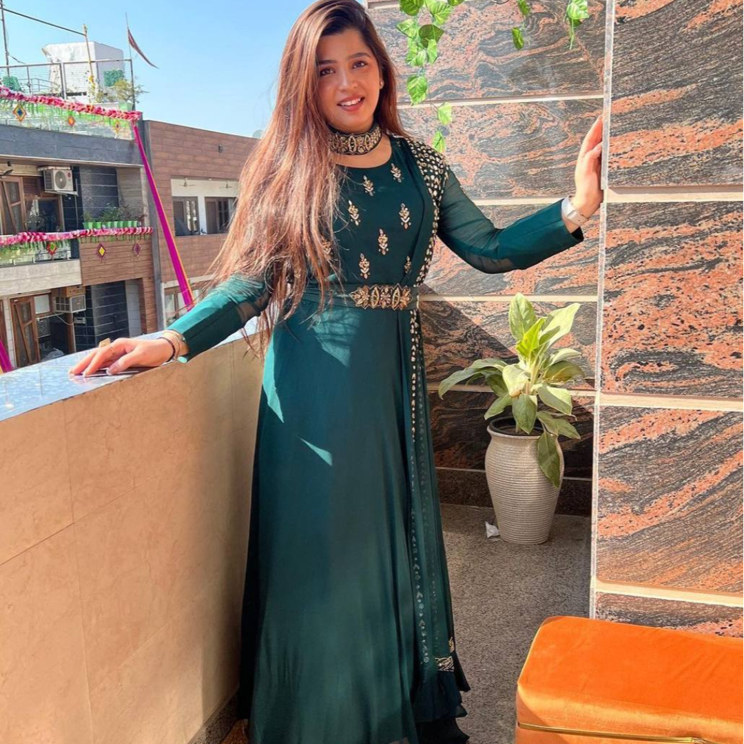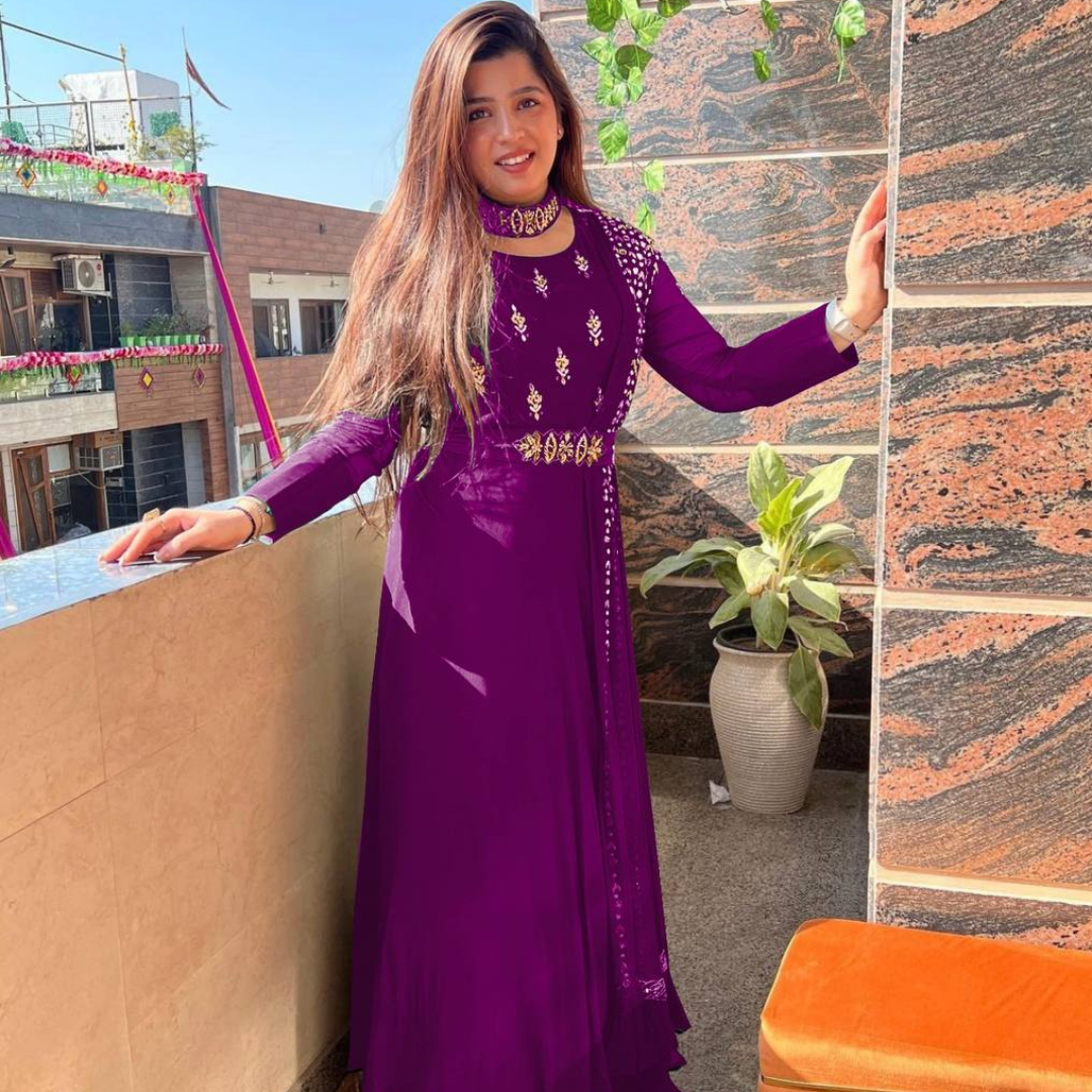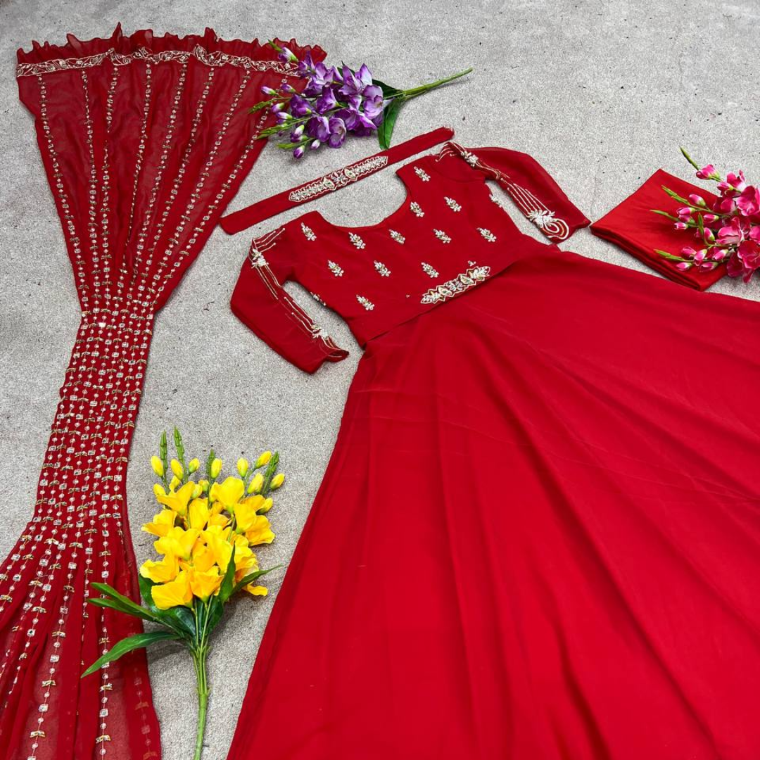 ๐ Gown Fabric * : Faux Georgette With *Heavy Embroidery Work With Real Mirror Handwork and Pal Moti Work With Heavy Fancy Belt