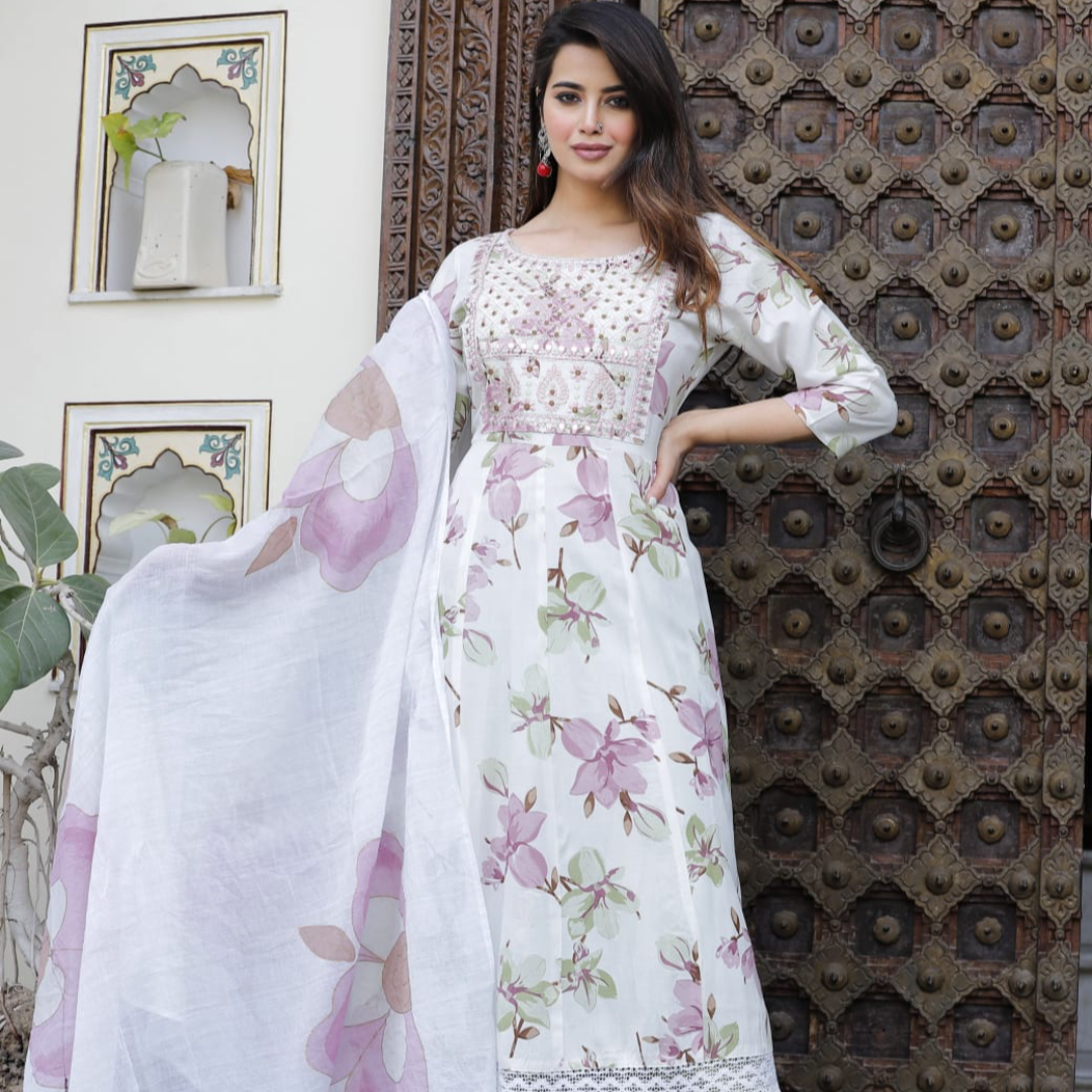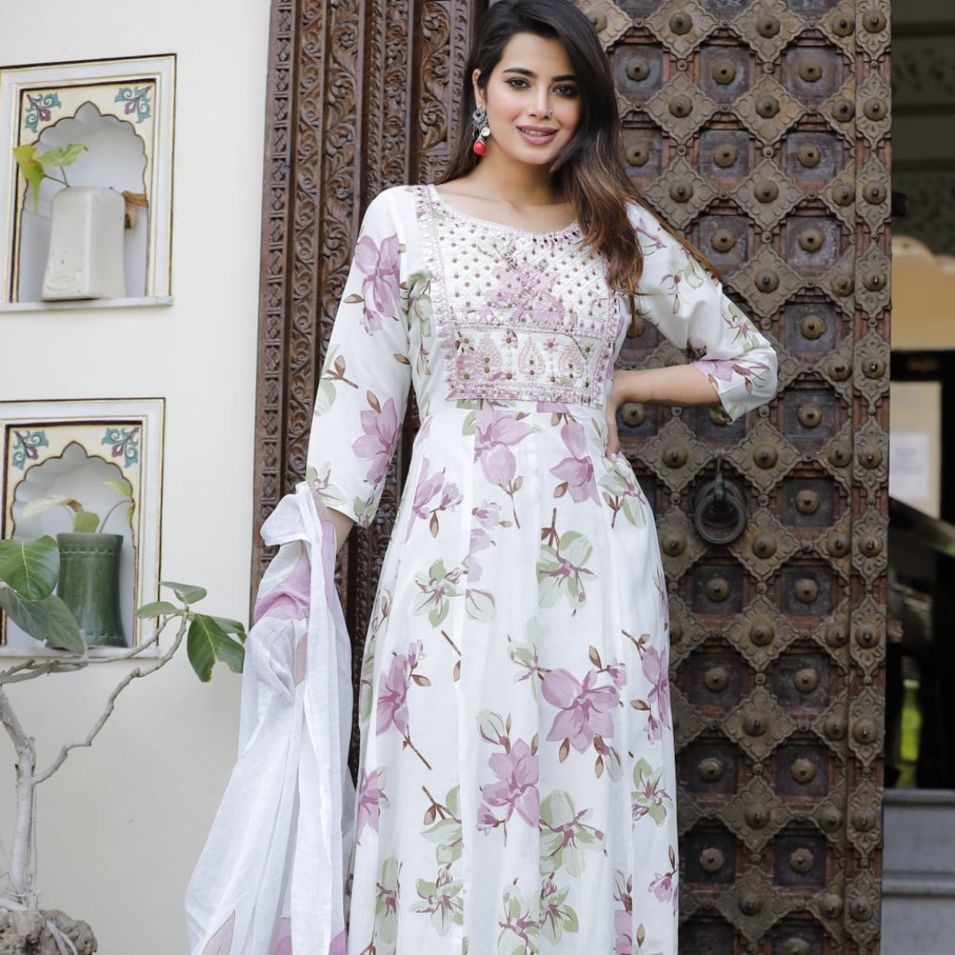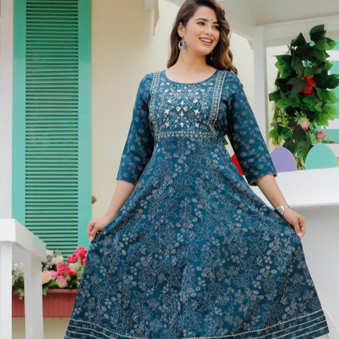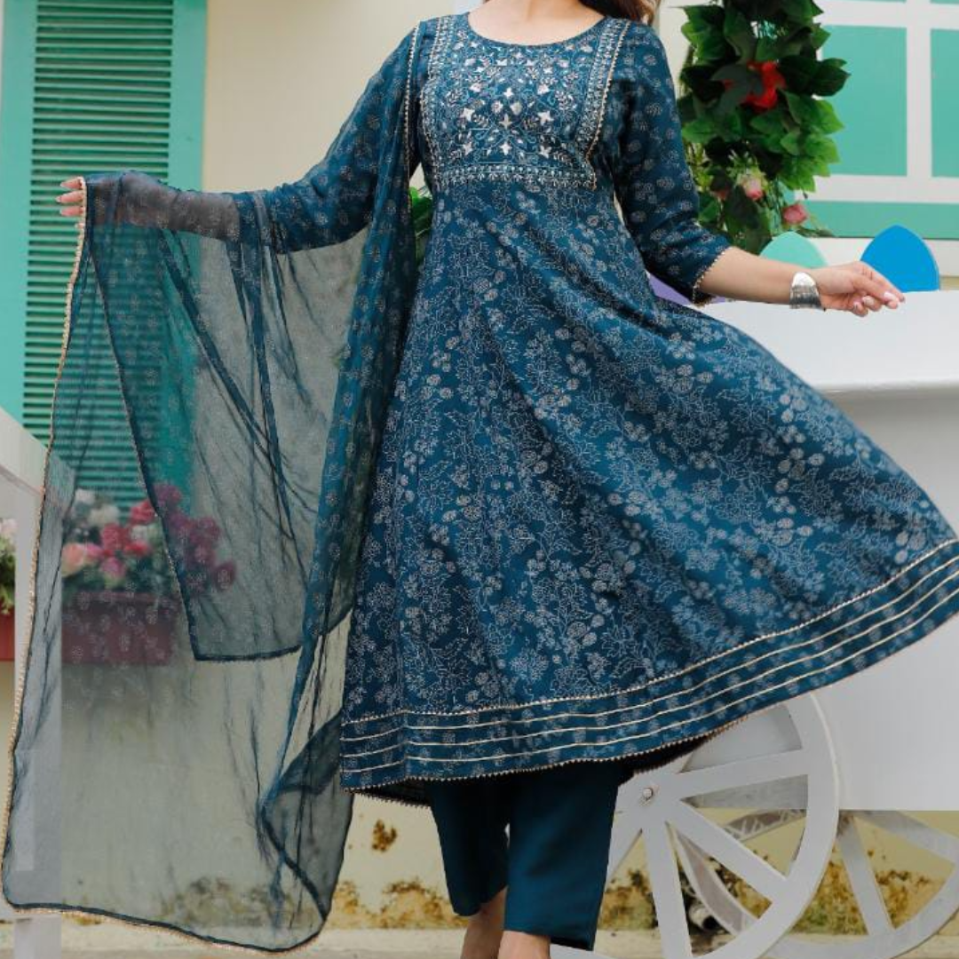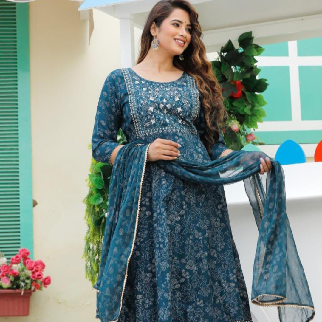 👗 Beautiful Rayon 140 Fabric gown kurti full flair pent with Duppta set 👗