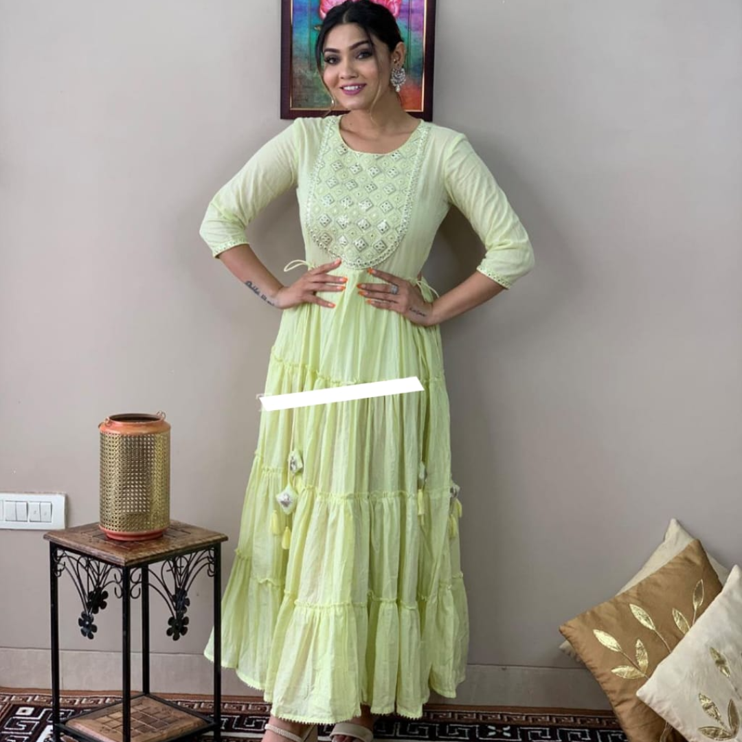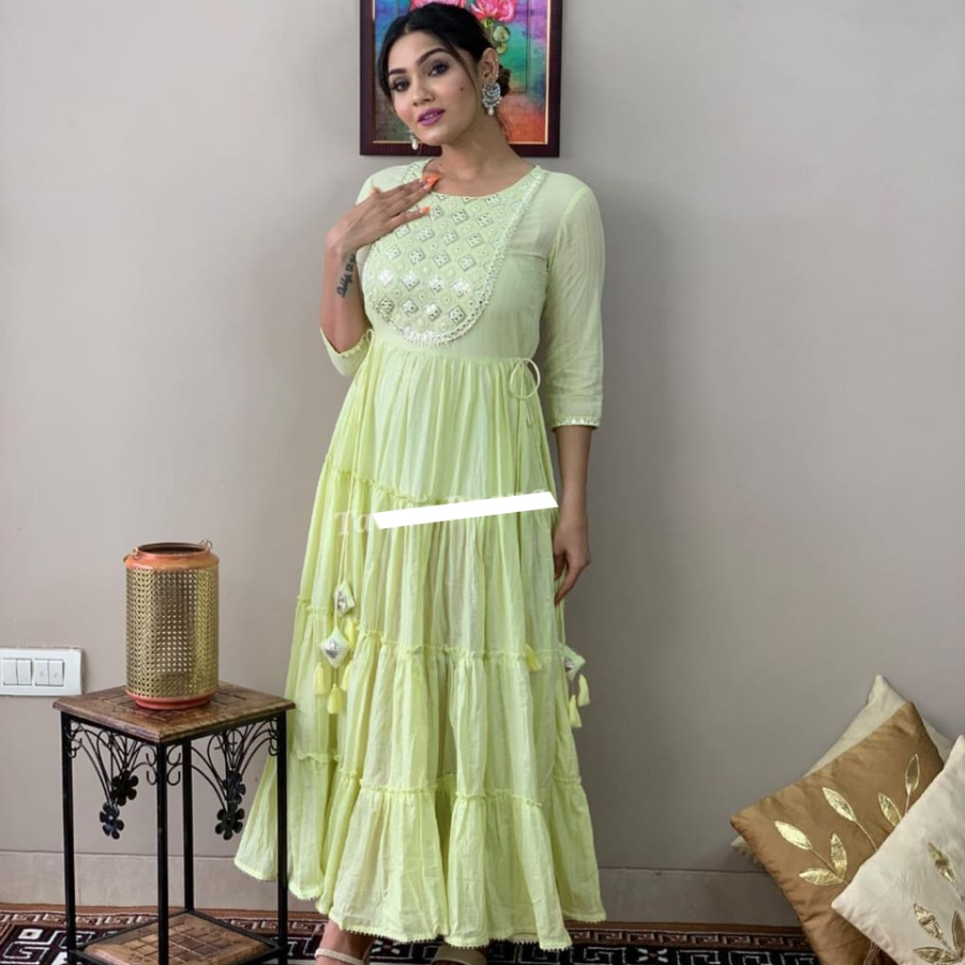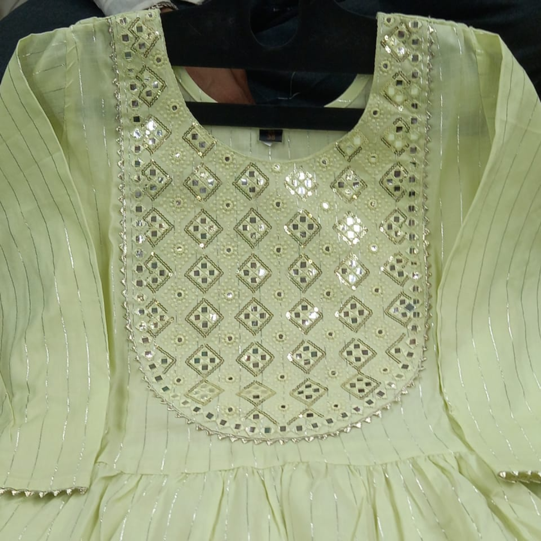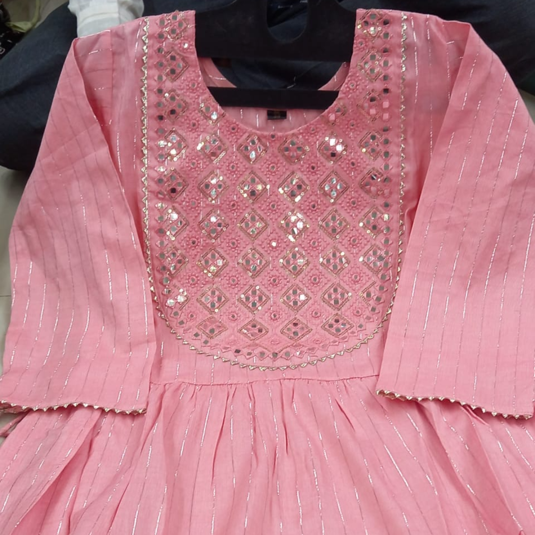 Pure cotton Lurex Fabric Gown with Attached With Pure Cotton sulv linning Highlighted With Beautiful work on neck