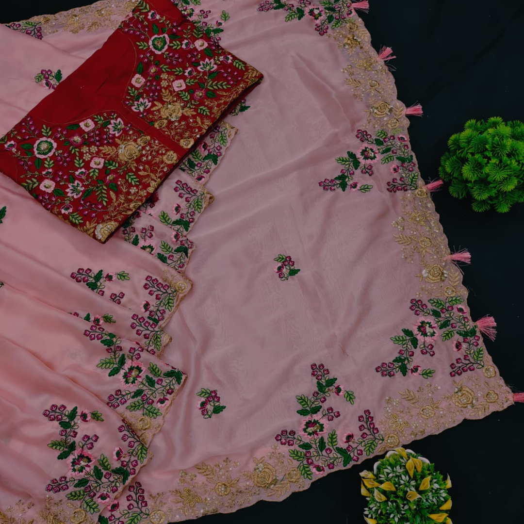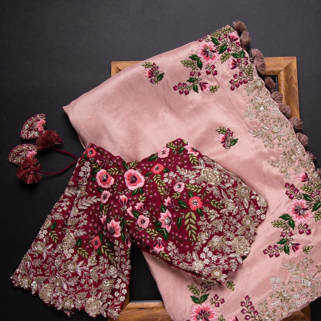 Work Embroidery Sequence With C-Pallu Border With Latkan🍒