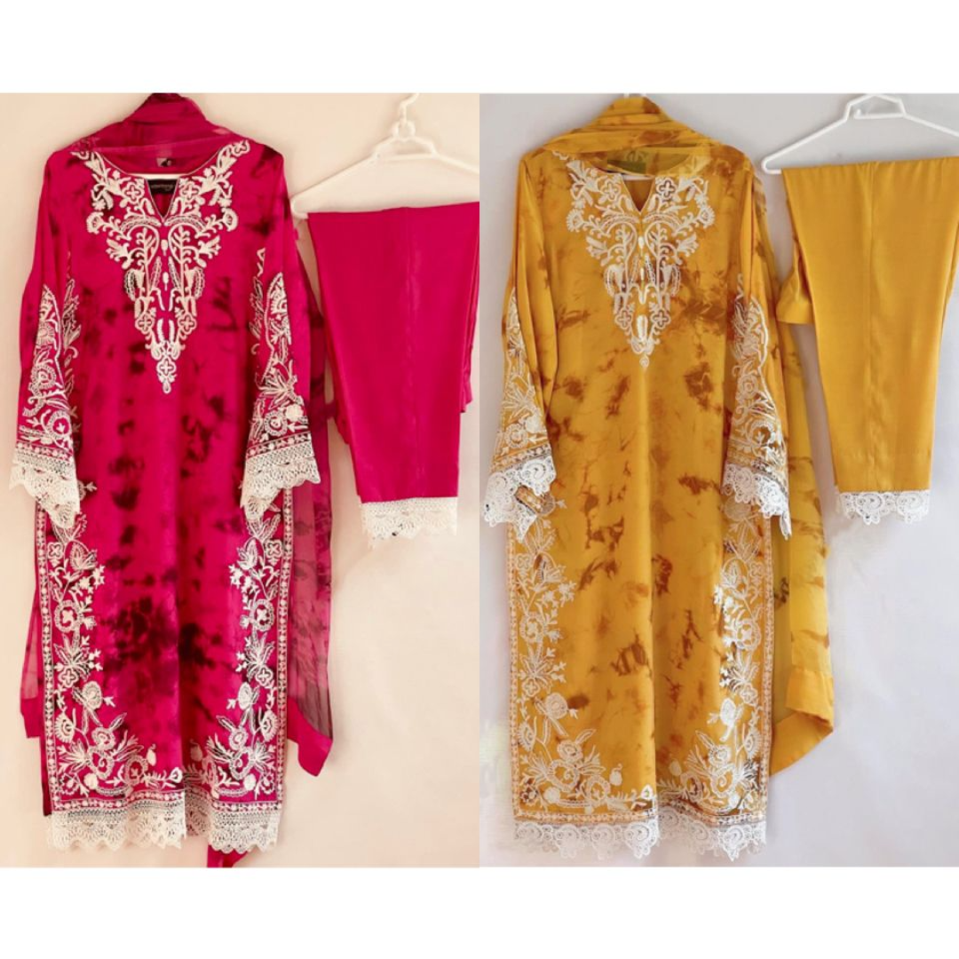 # BOTTOM FABRIC : SOFT BUTTER SILK WITH FANCY LACE WORK