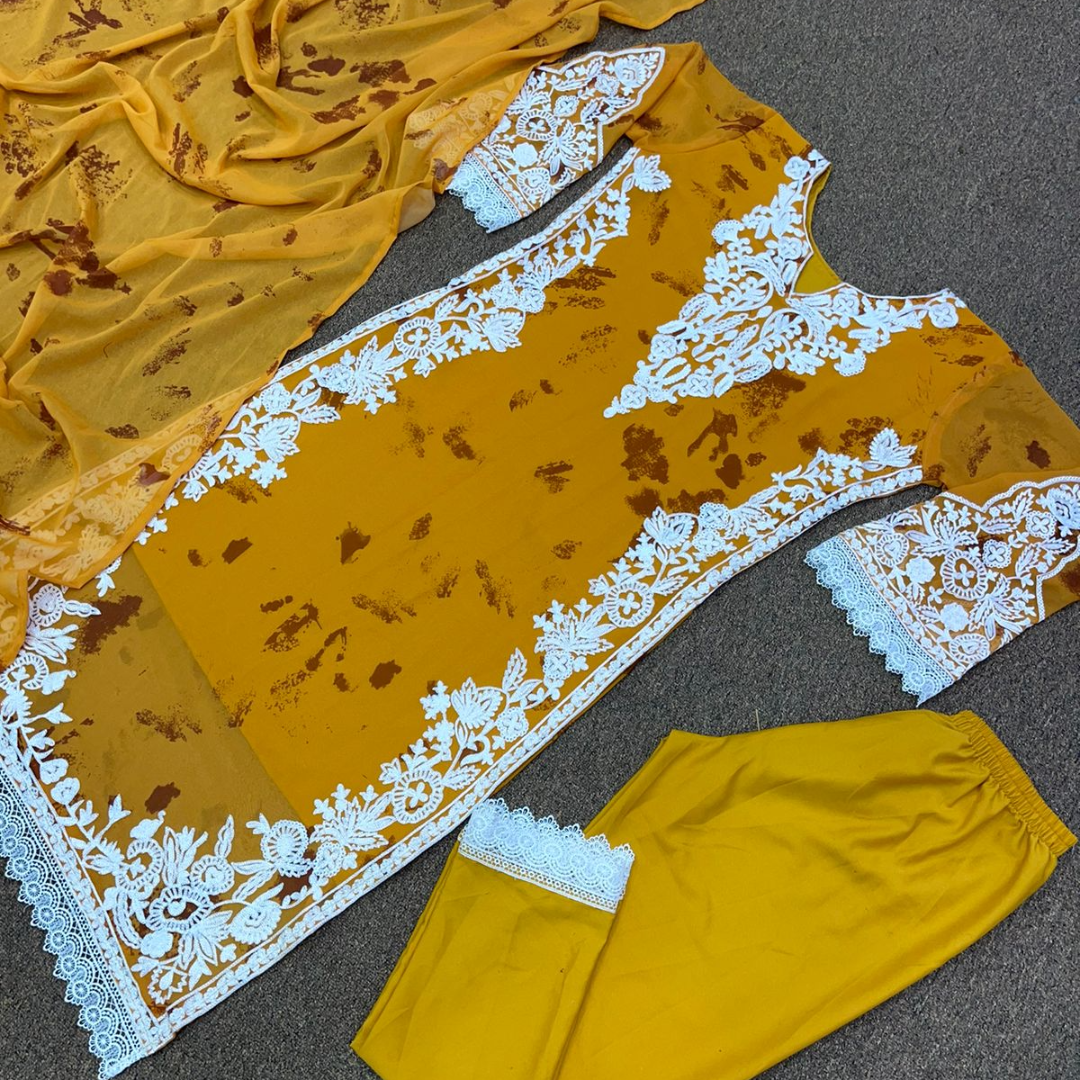 # TOP FABRIC : FAUX GEORGETTE AND FULL SLEEVE WITH WORK AND LACE BORDER