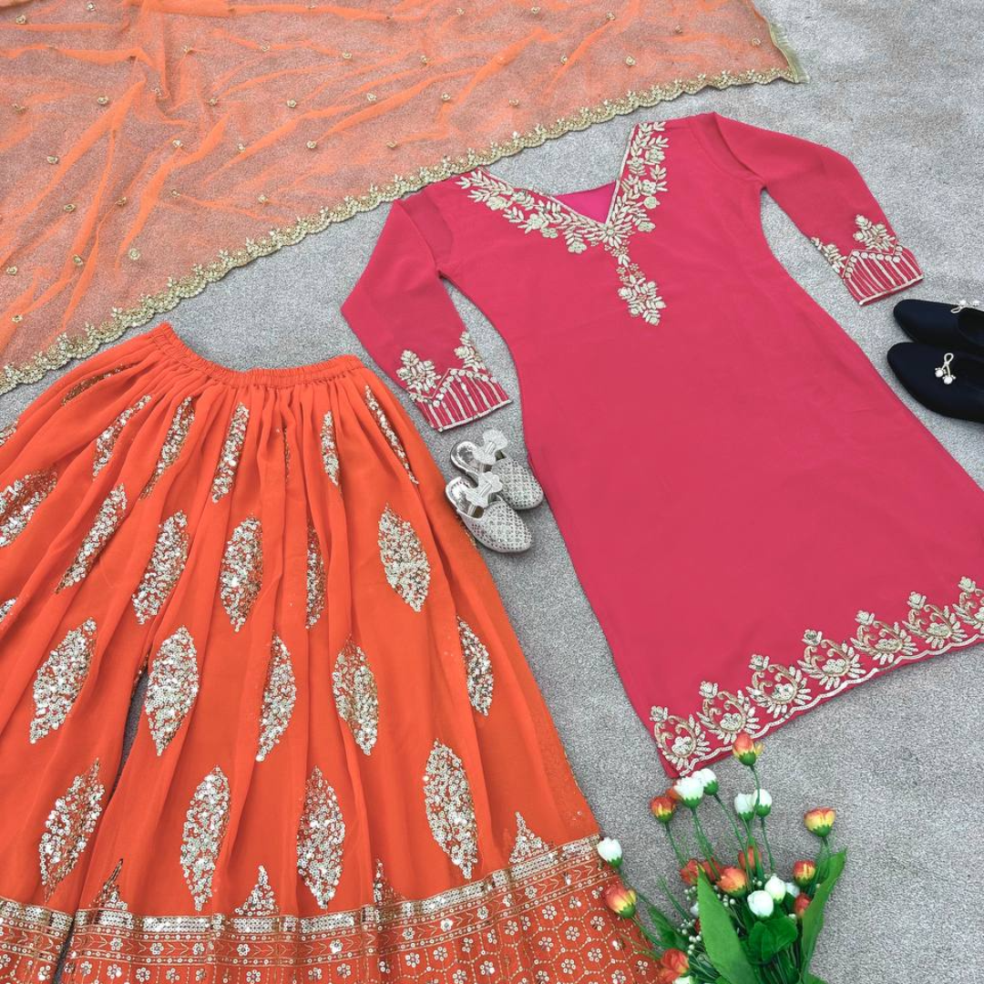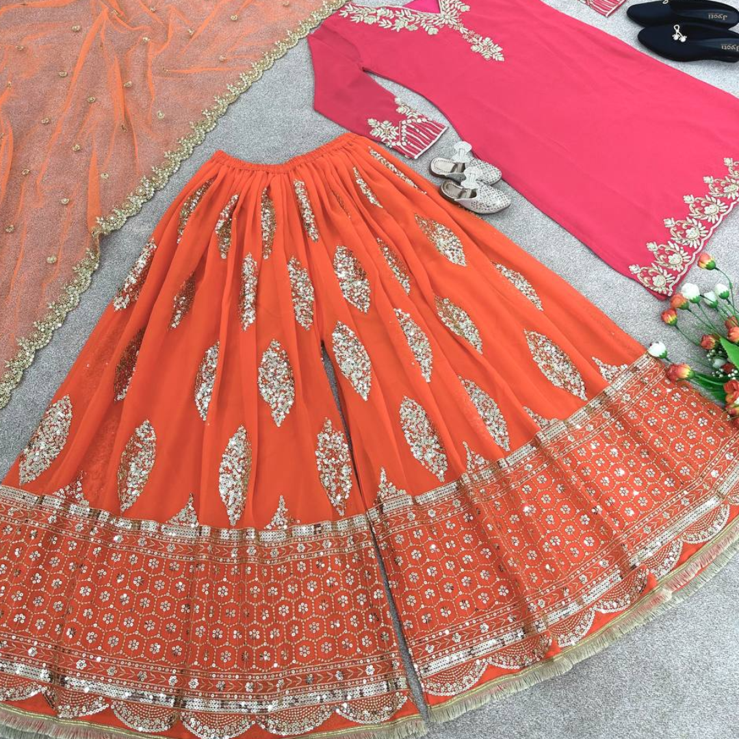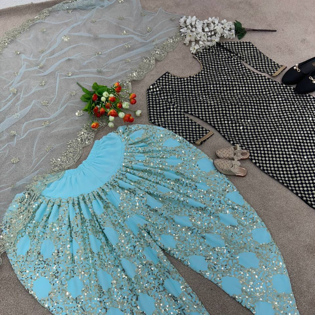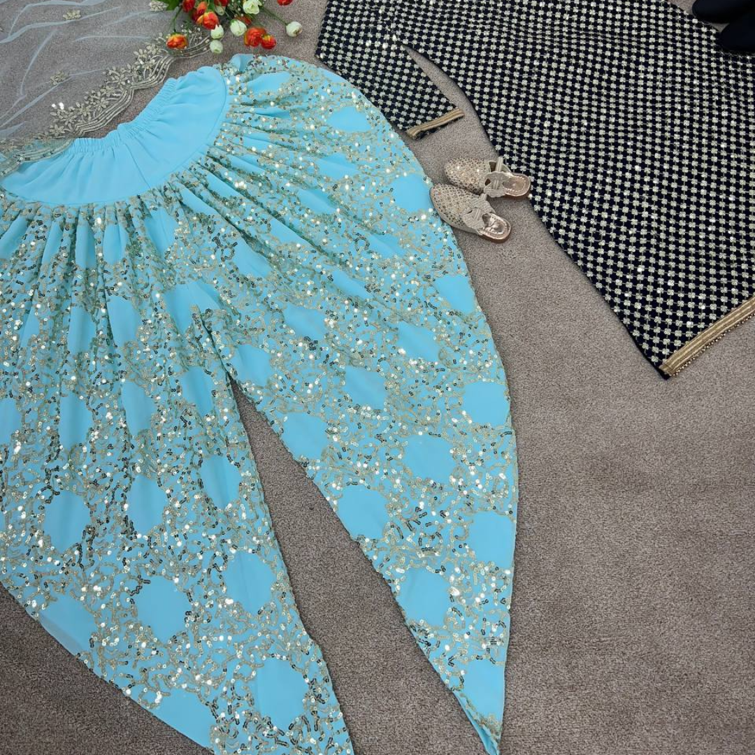 Dhoti Salwar: Faux Georgette With Embroidery 5 mm Sequence Work