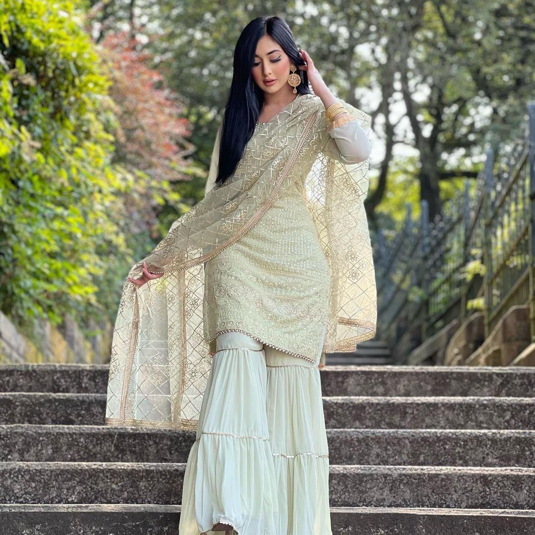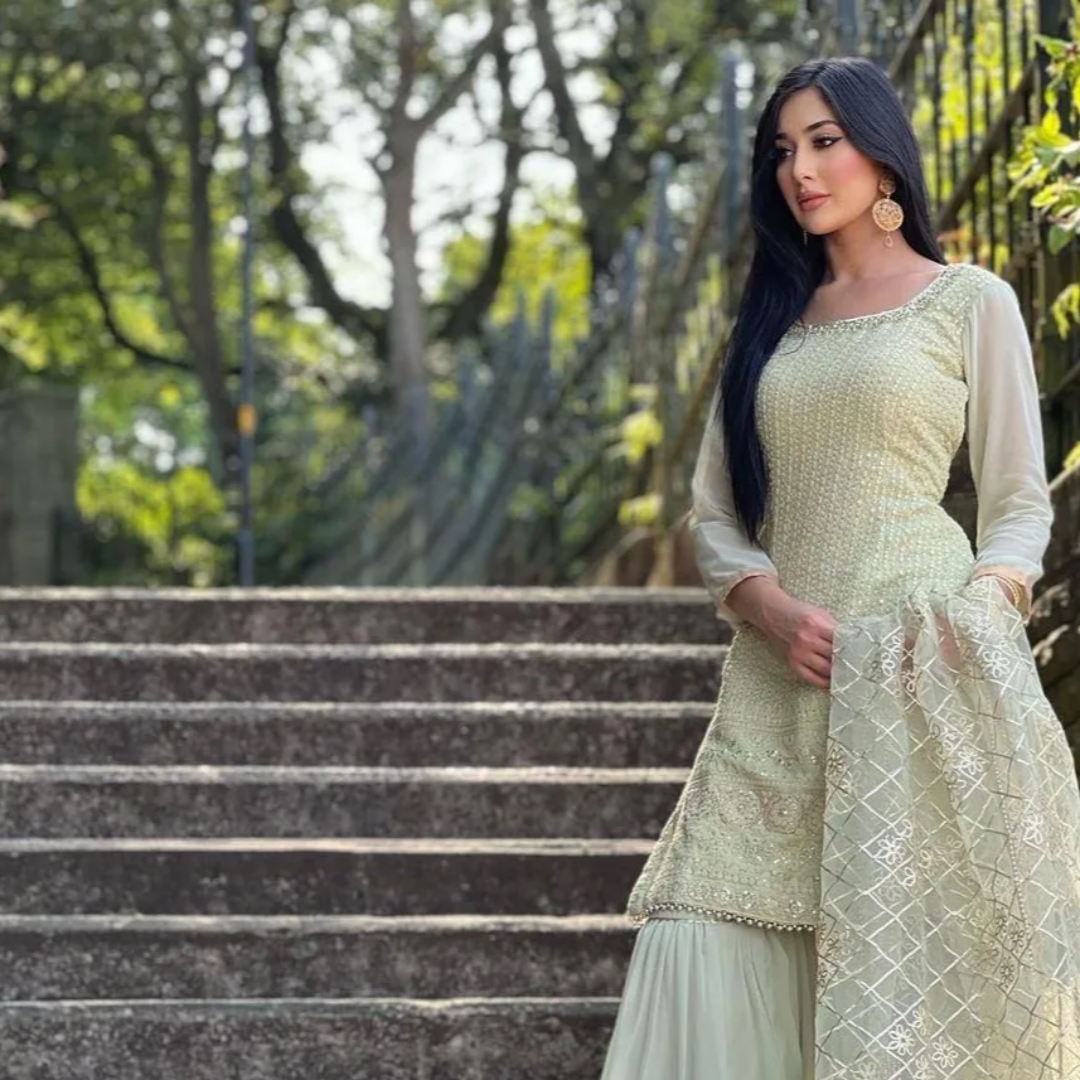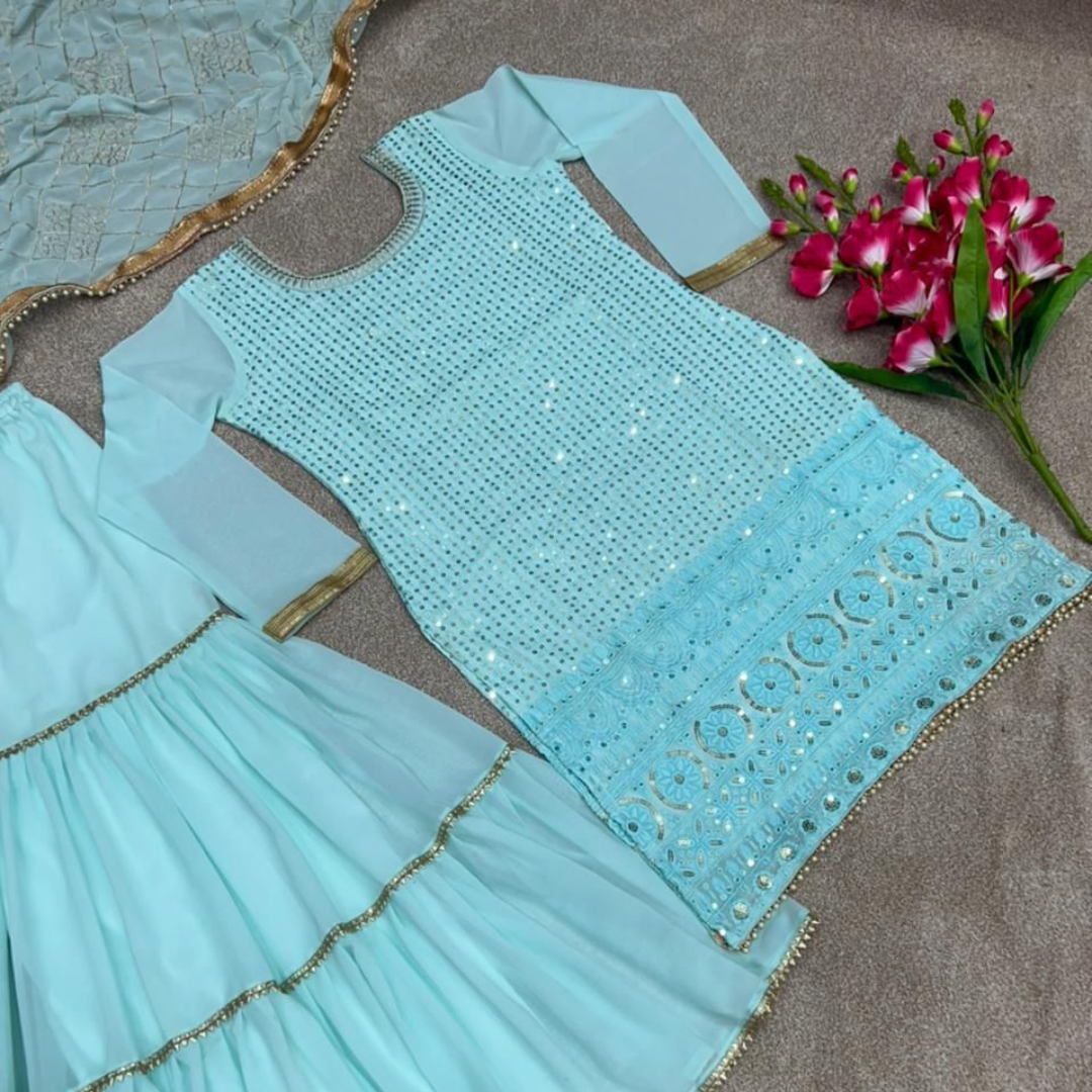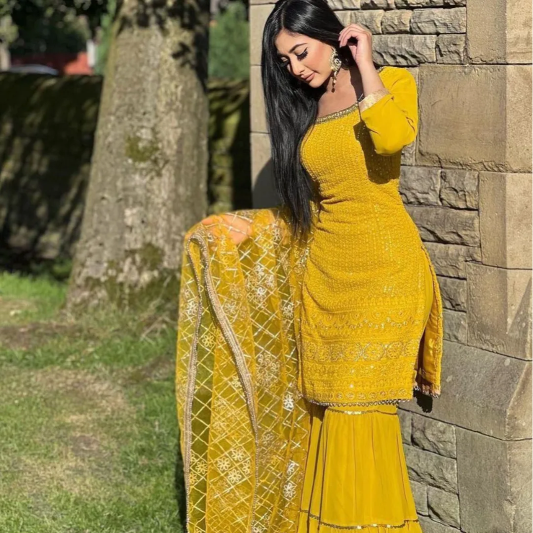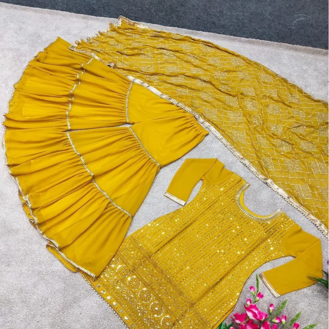 *-Duppta :- Heavy Fox Georgette2.25 mtr with 4s side work patta less