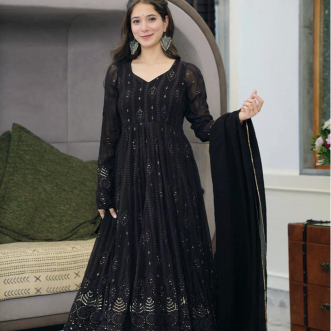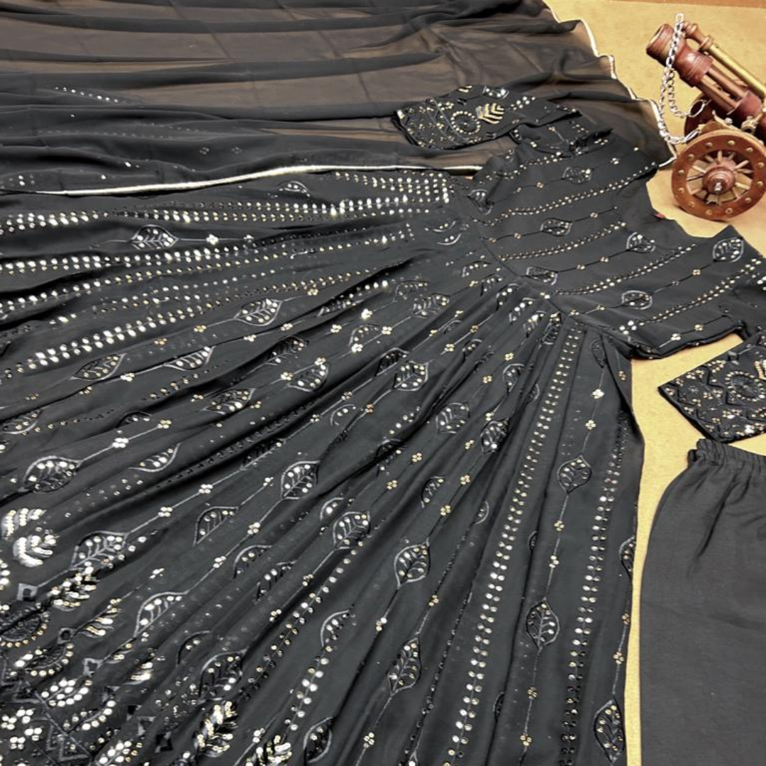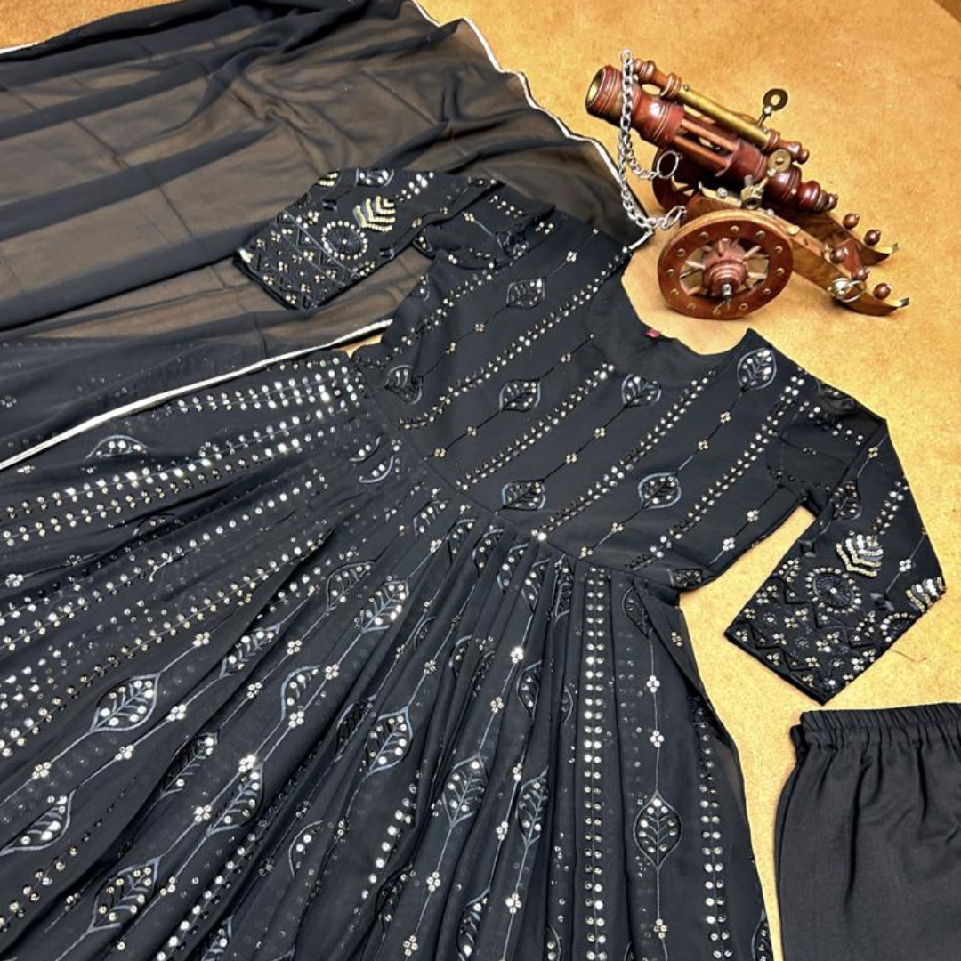 ๐ GOWN FABRIC: FOX GEORGETTE WITH EMBROIDERY 5MM SEQUENCE WORK WITH FULL SLEEVES