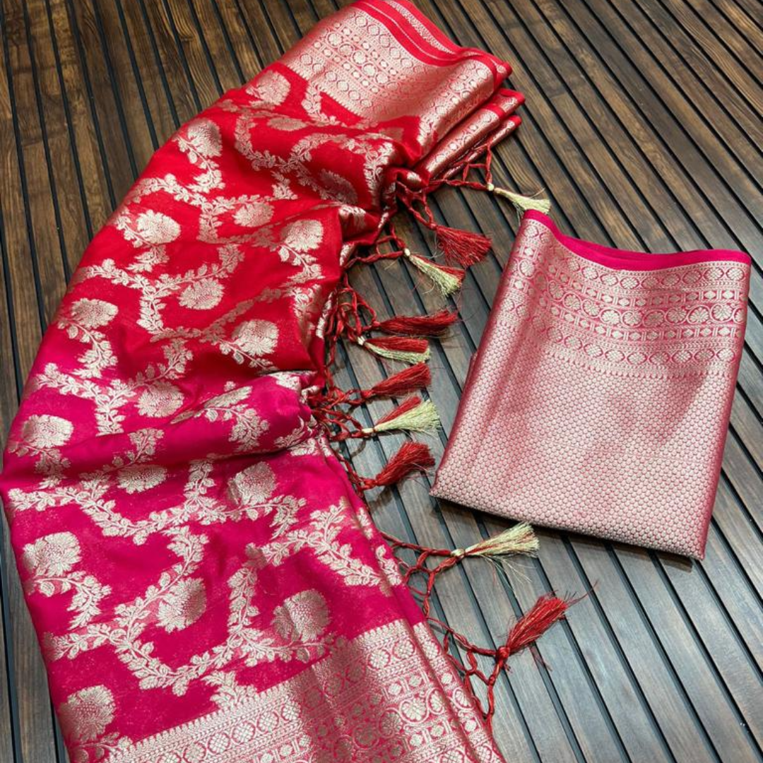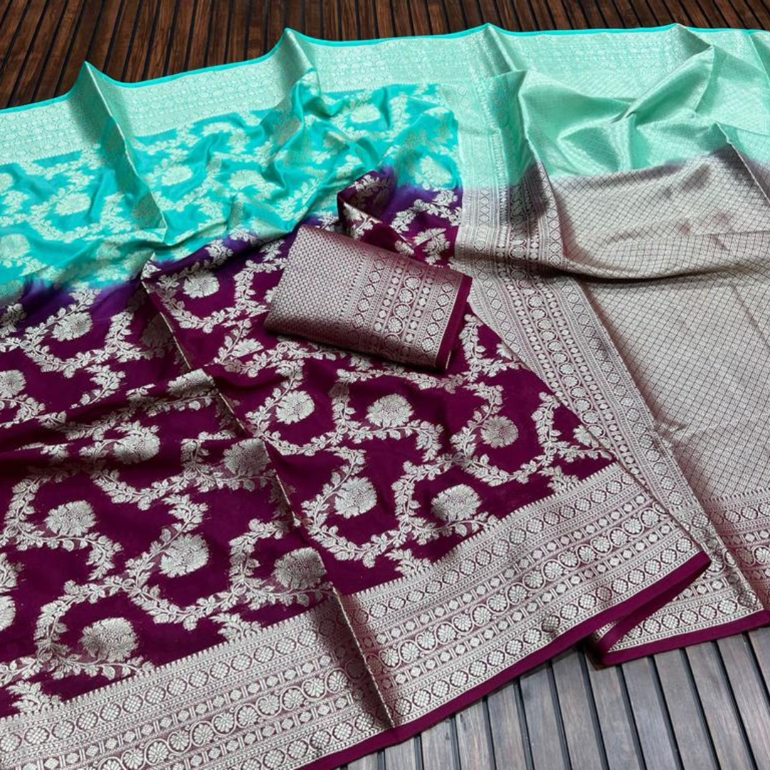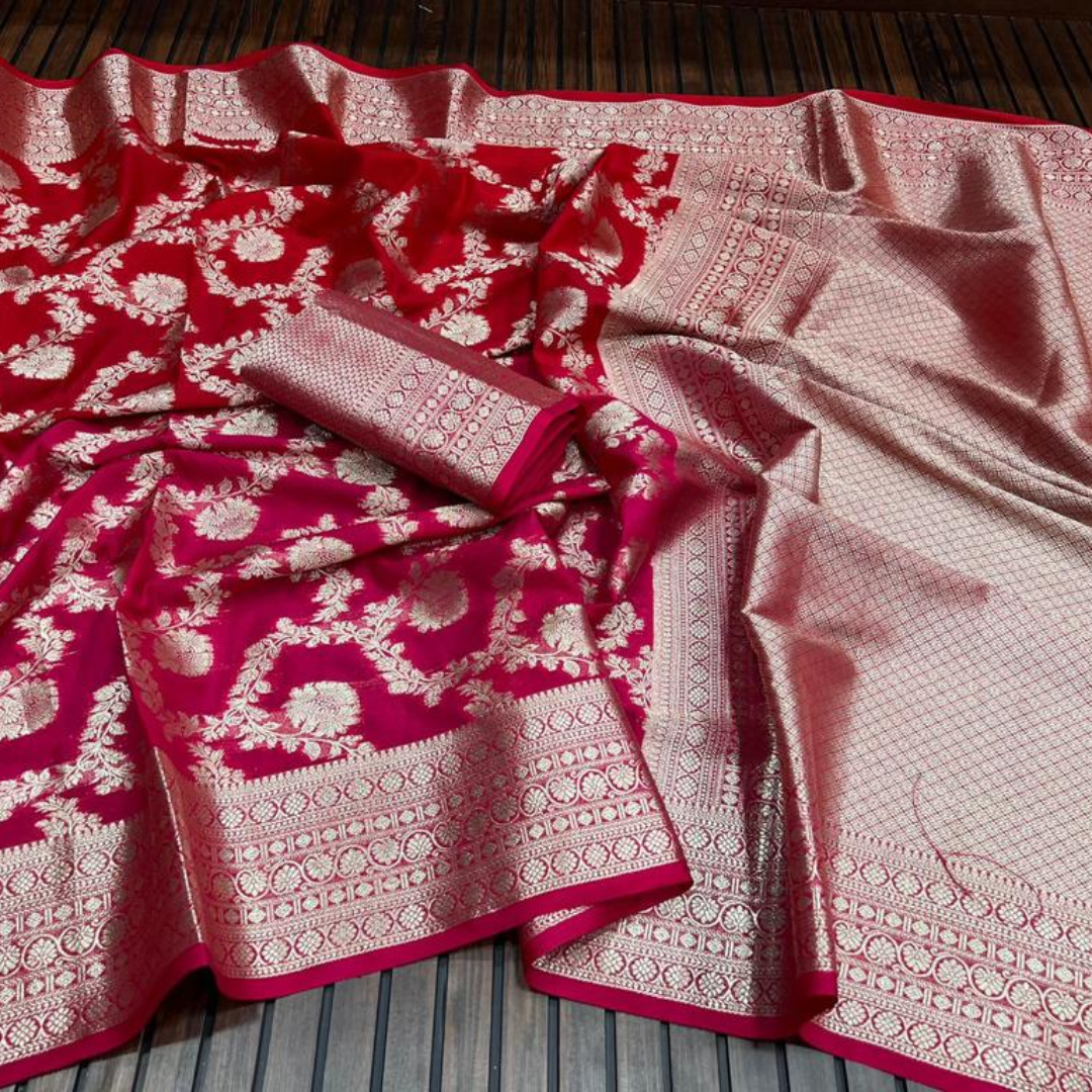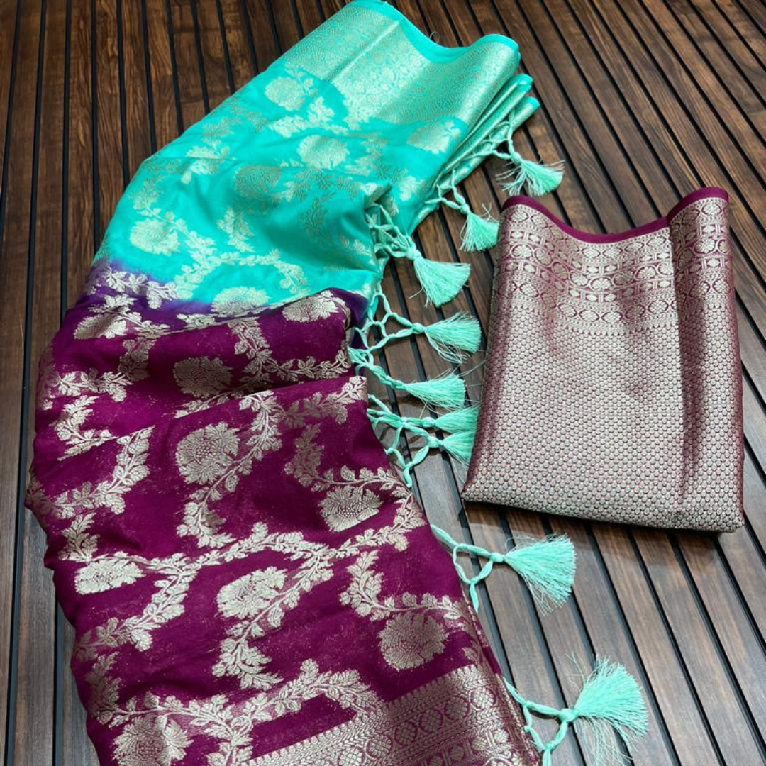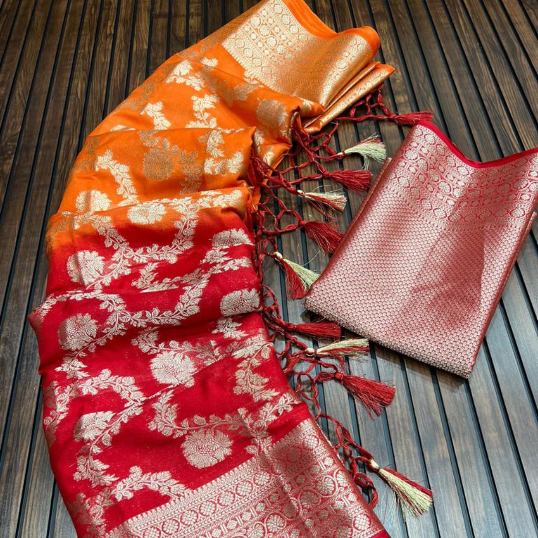 🔺Work Discription:- Pure Zari weaving rich pallu (with Jalar) with full zari weaving Jal design also 2D colour effect in saree