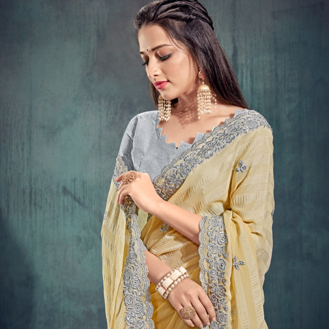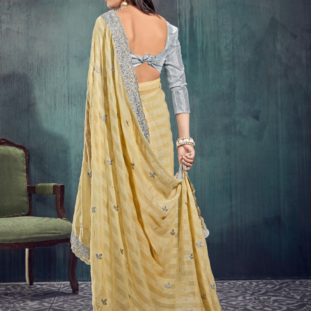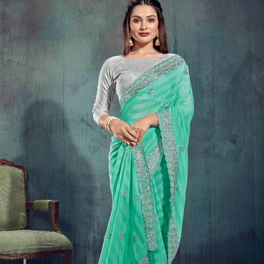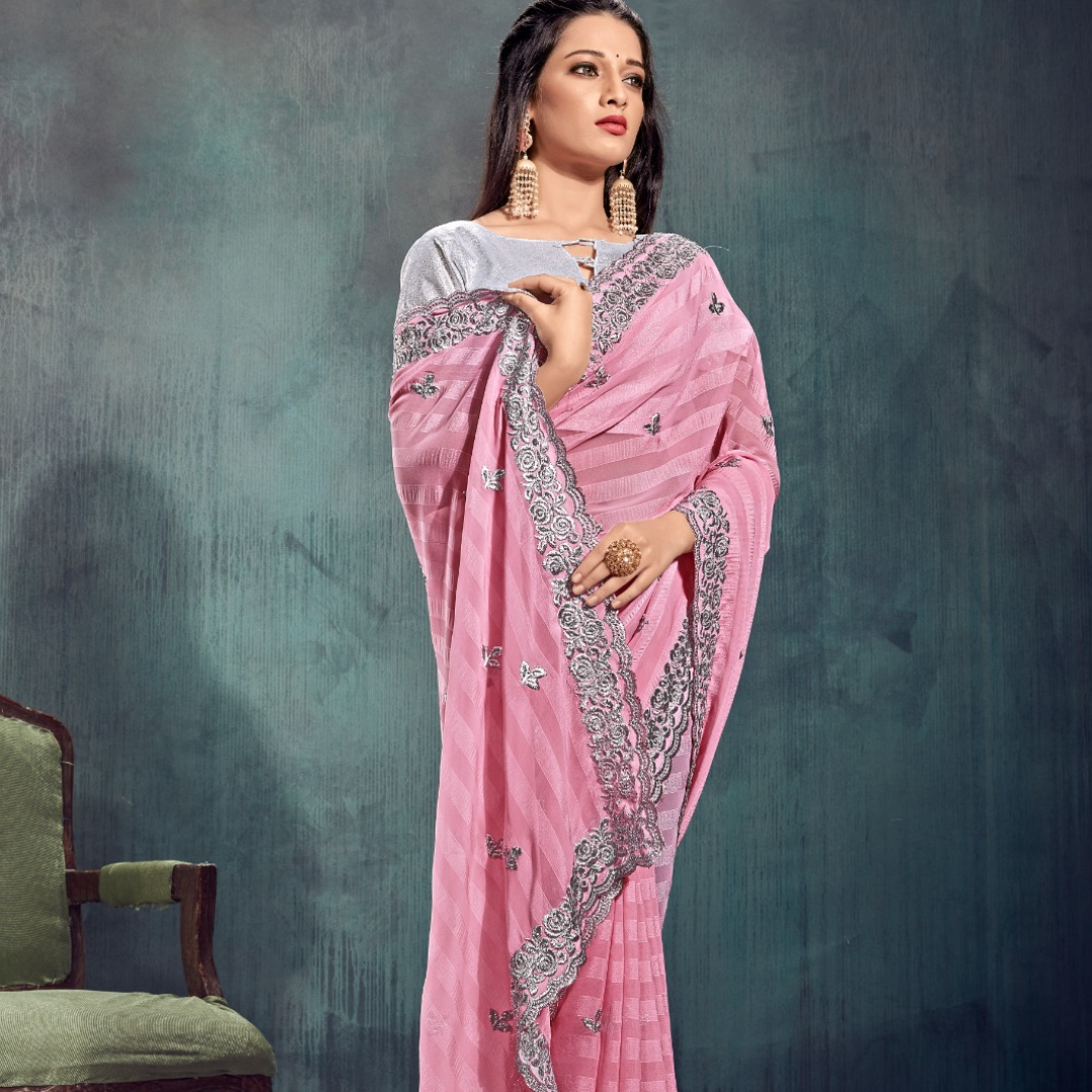 GEORGETTE PATTA FABRIC WITH C PALLU EMBROIDERY ZARI WORK WITH CUT WORK AND DIAMONDS AND BLOUSE
