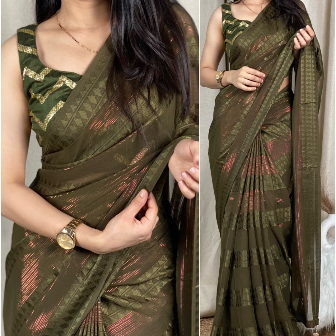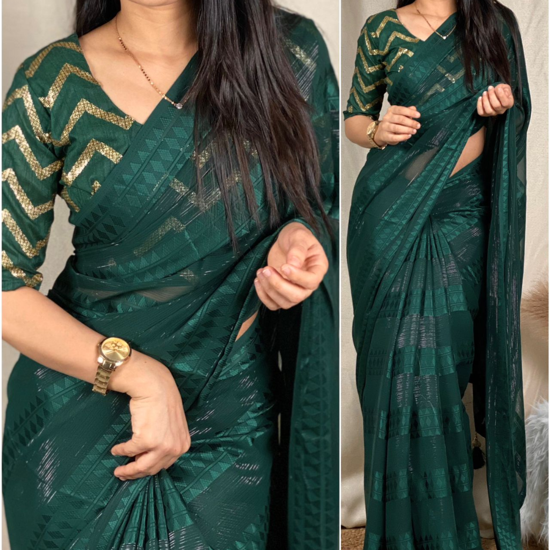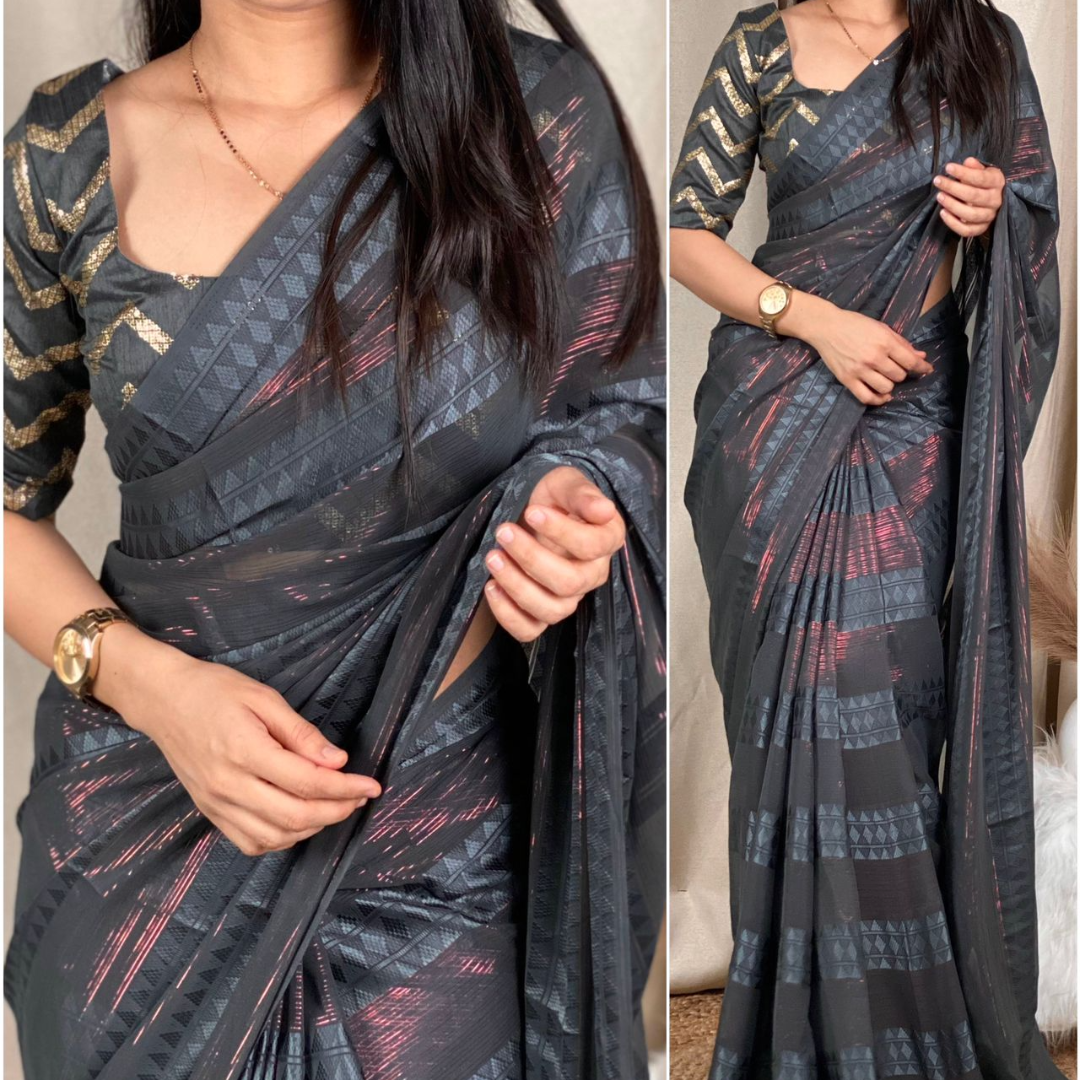 Be party ready to make a statement with this glamorous saree & Designer blouse