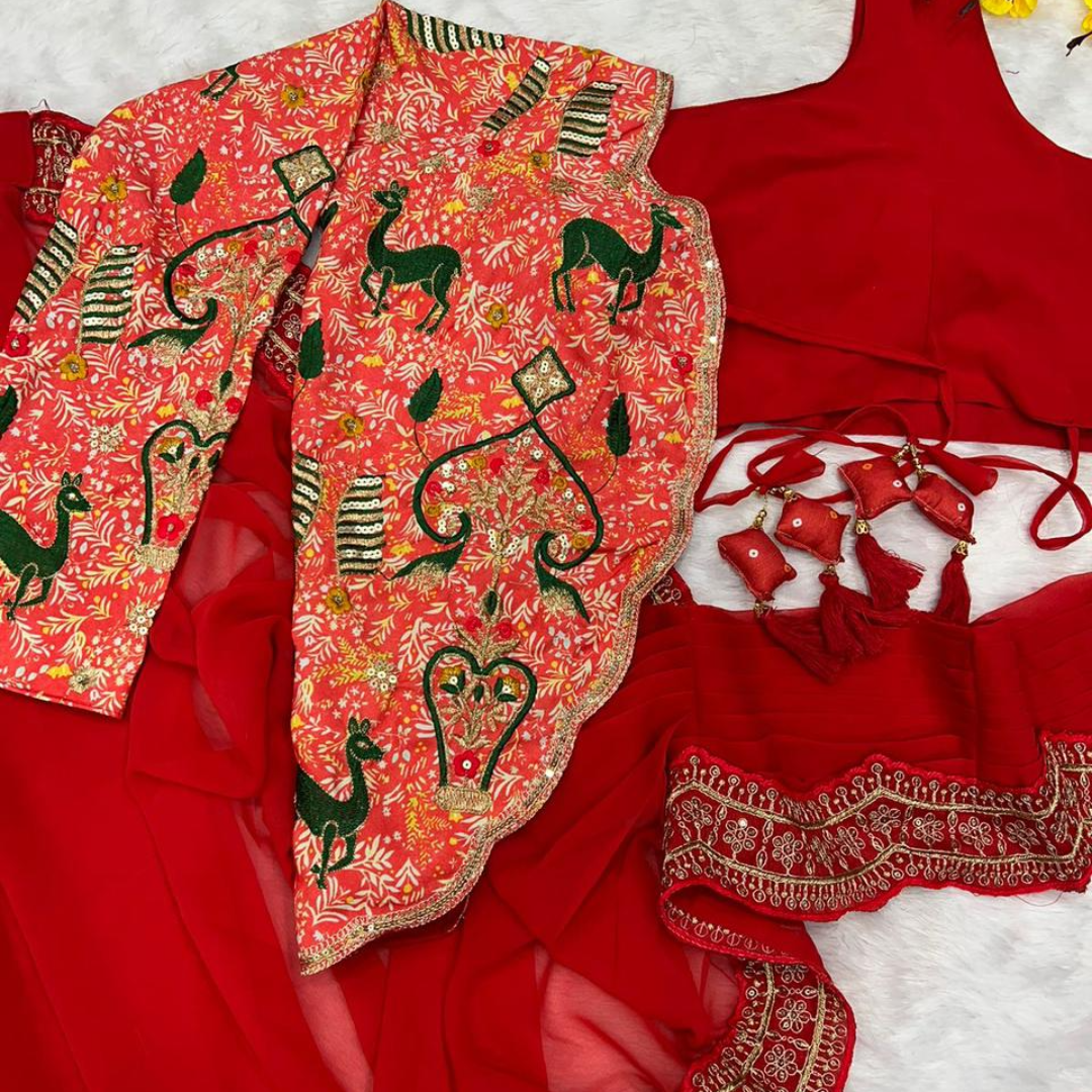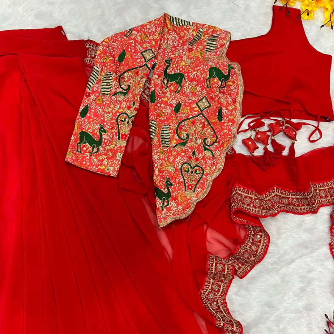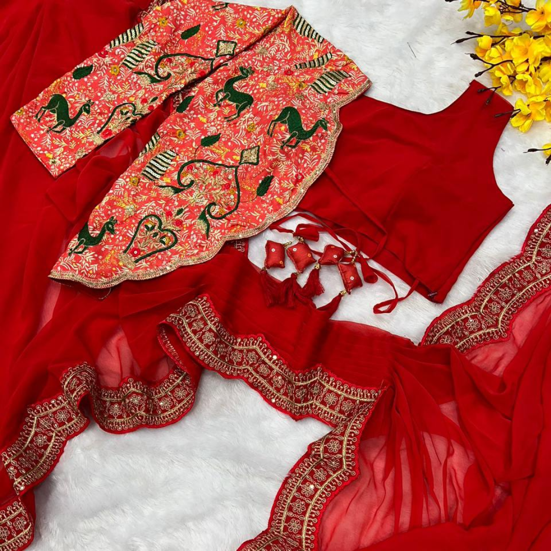 New Super Trending Embroidery cording work ready to wear saree with half koti