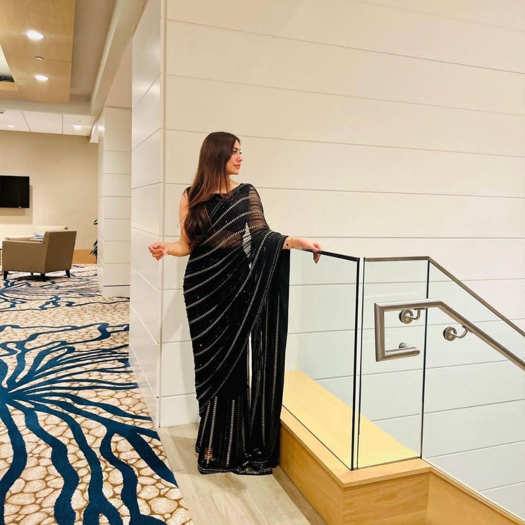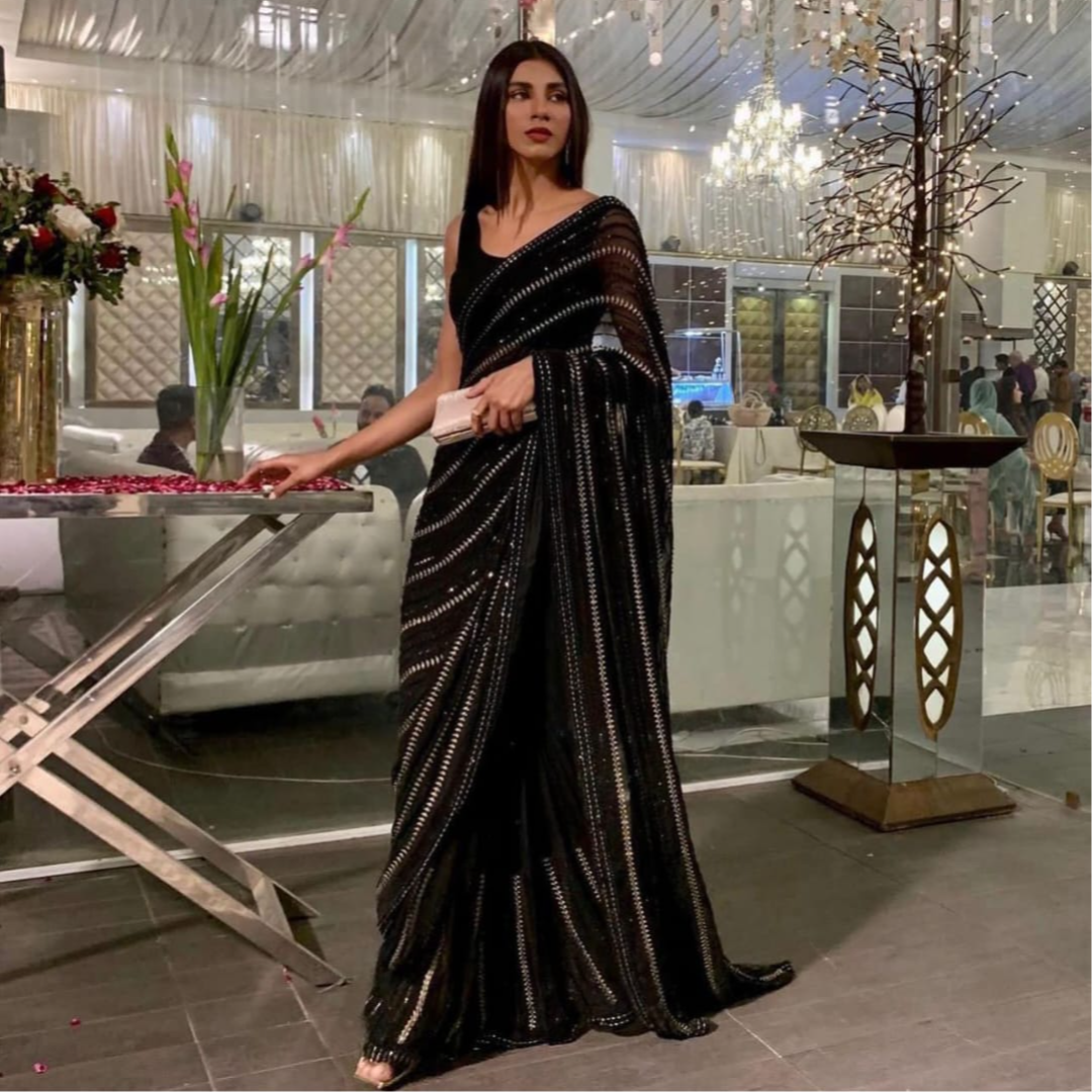 Classic and elegant, this saree will be a perfect addition to your ethnic wardrobe, offering a soothing and pretty wibe the adornment of seqwance work makes it impeccable