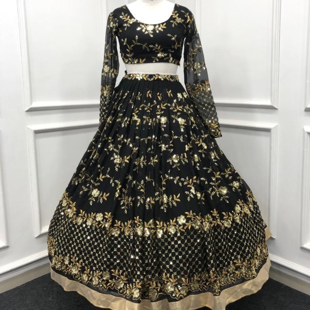 🌟LAHENGHA FABRIC- Georgette with Embroidery sequence work (2)