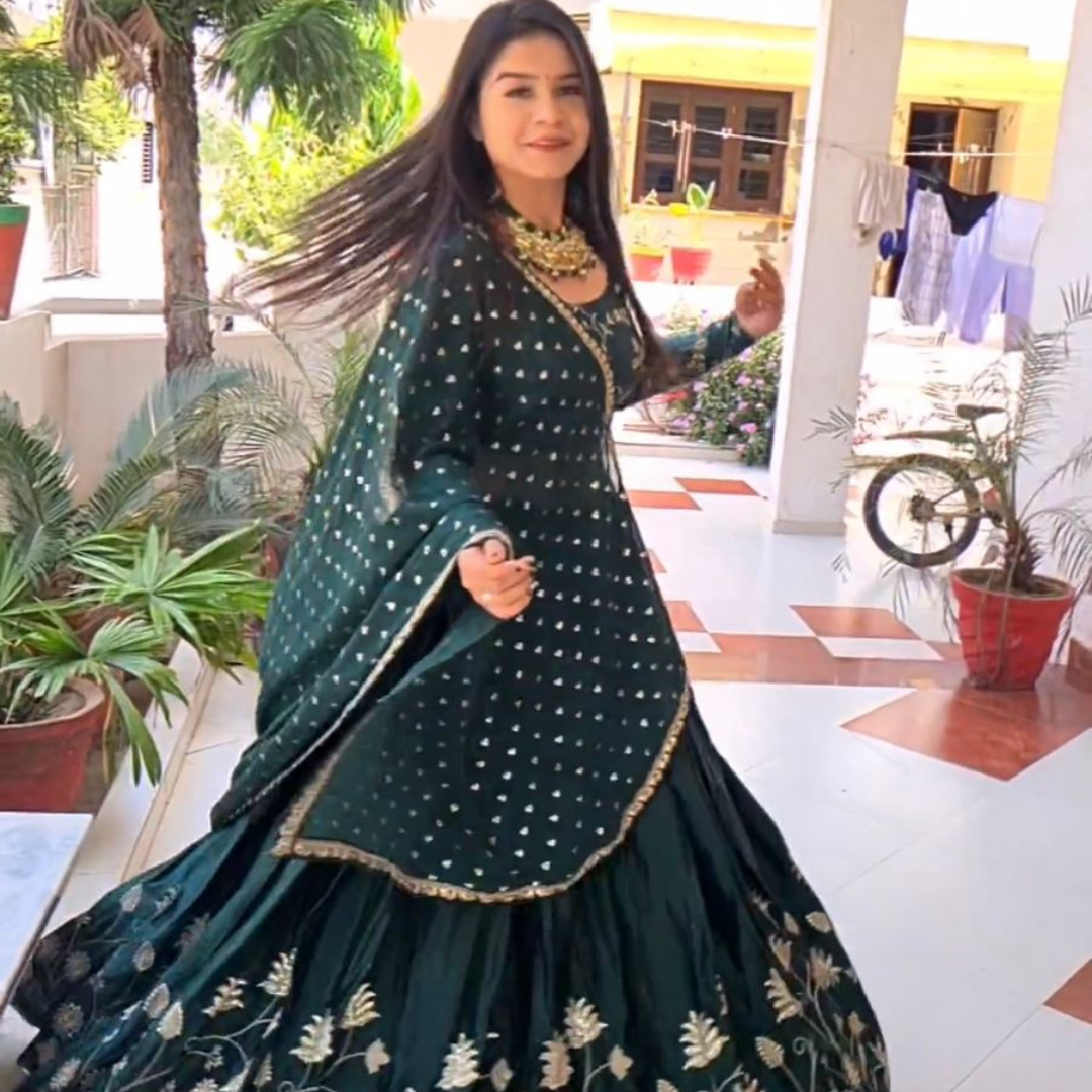 *work *. :- Embroidery with Sequnce with Fourside lace broder