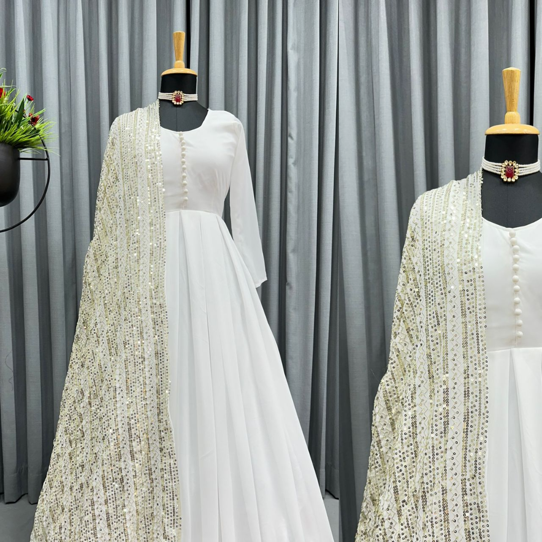Looking for this same colour beautiful Designer Suit on Faux Georgette febric with Fancy Lace and Dupatta on also Faux Georgette Febric with Thread & Sequnce work.