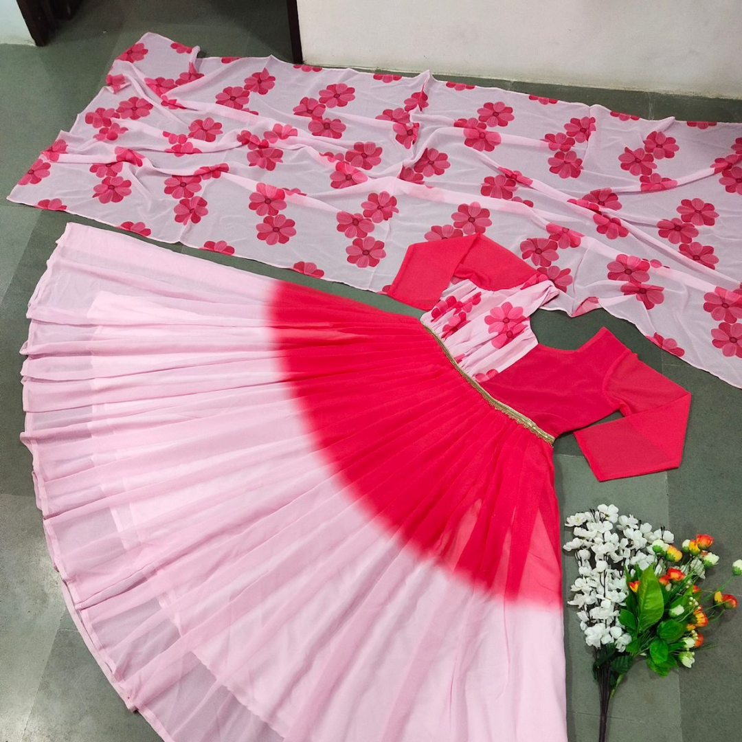 *Gown Fabric * :Faux Georgette With *Digital Print Work With* Full Sleeve and Fancy Style Choli