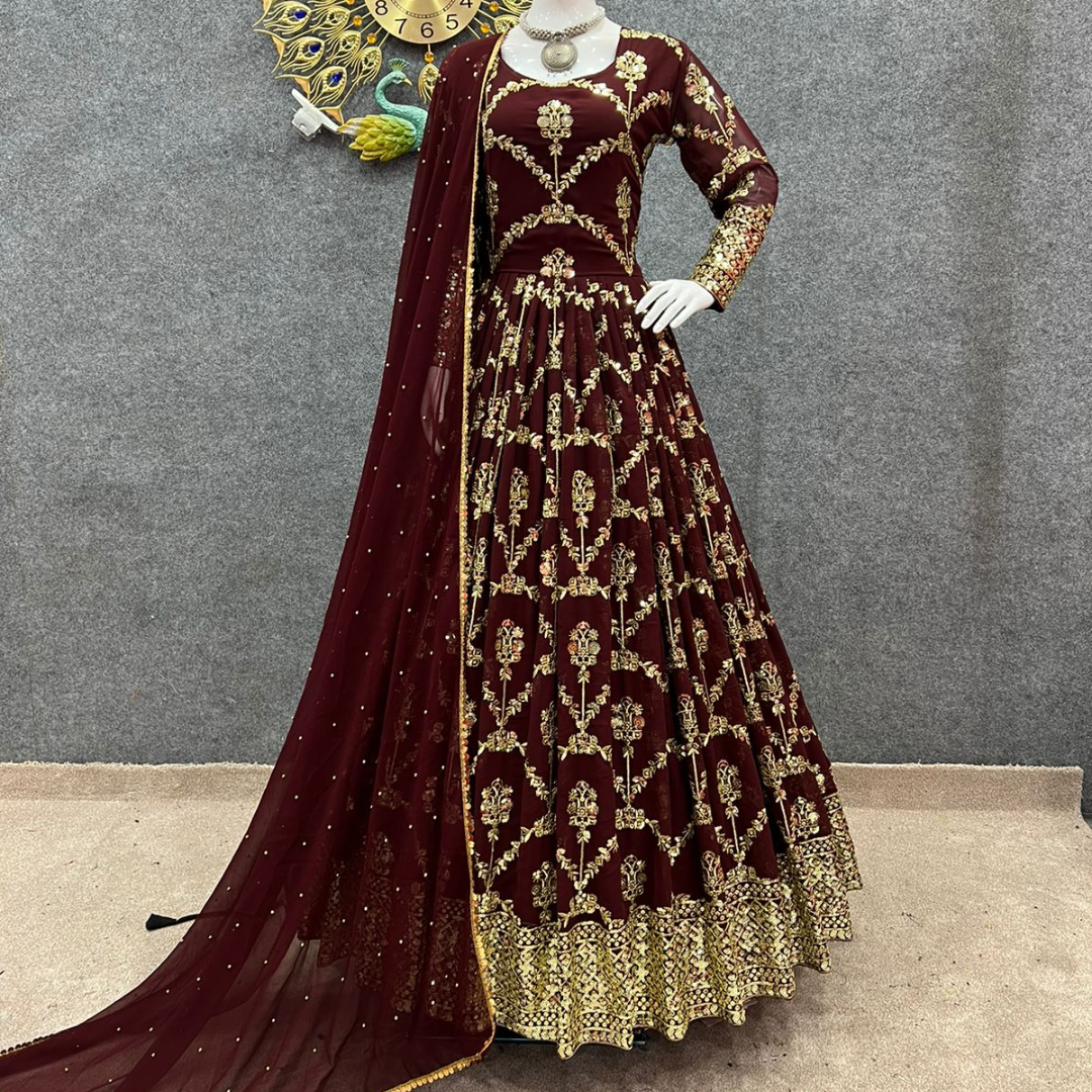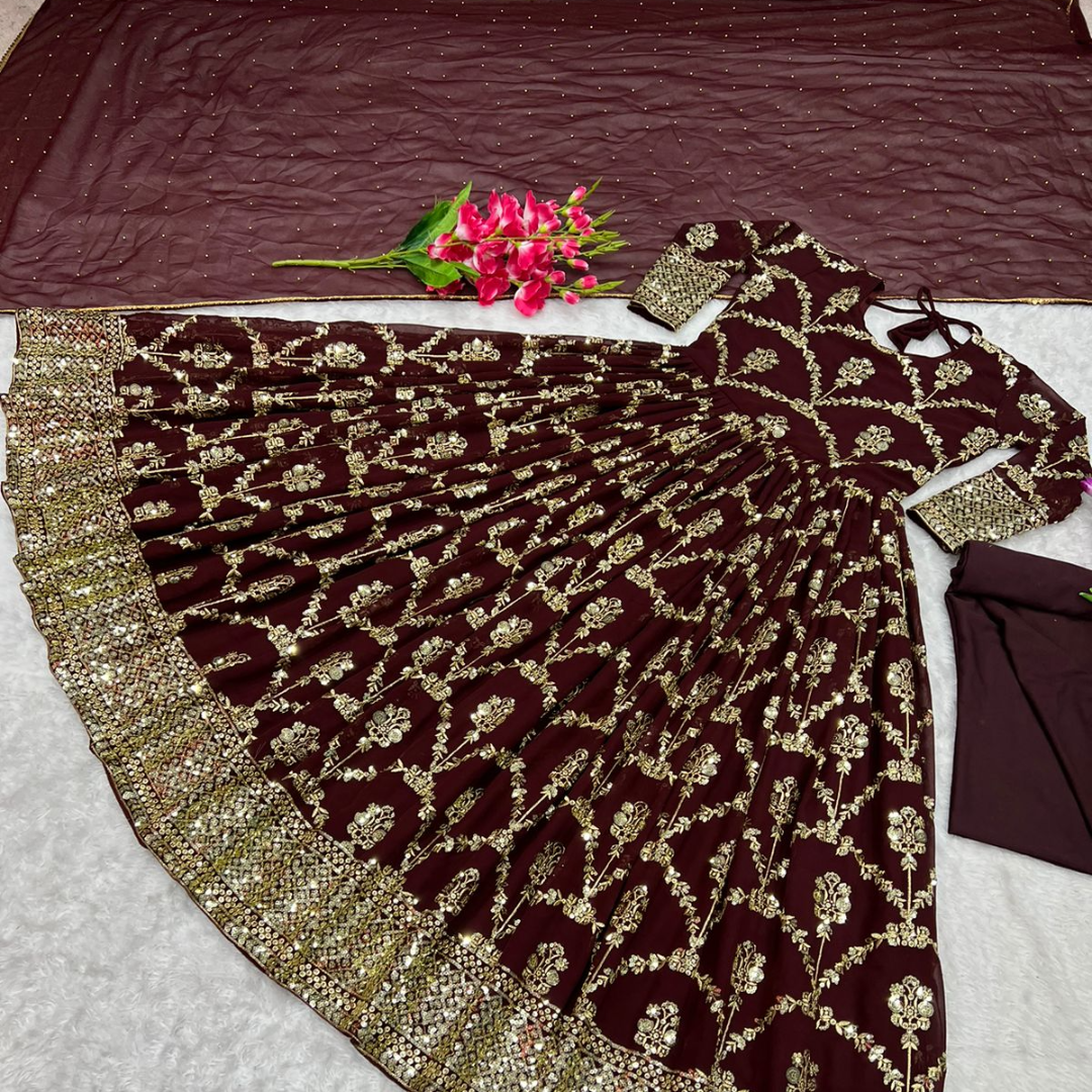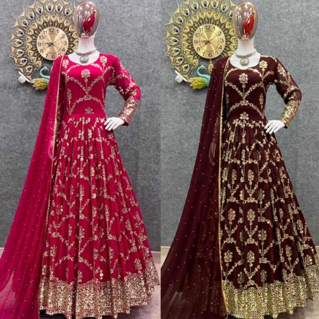 Gown Fabric: Faux Georgette With Full Heavy 5mm Embroidery Sequence Work With Full Sleeve and Fancy Latkan
