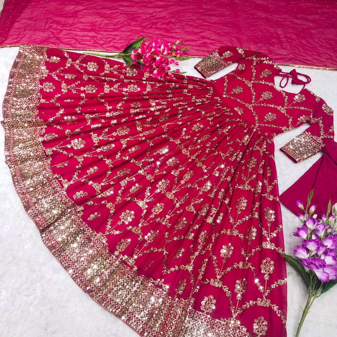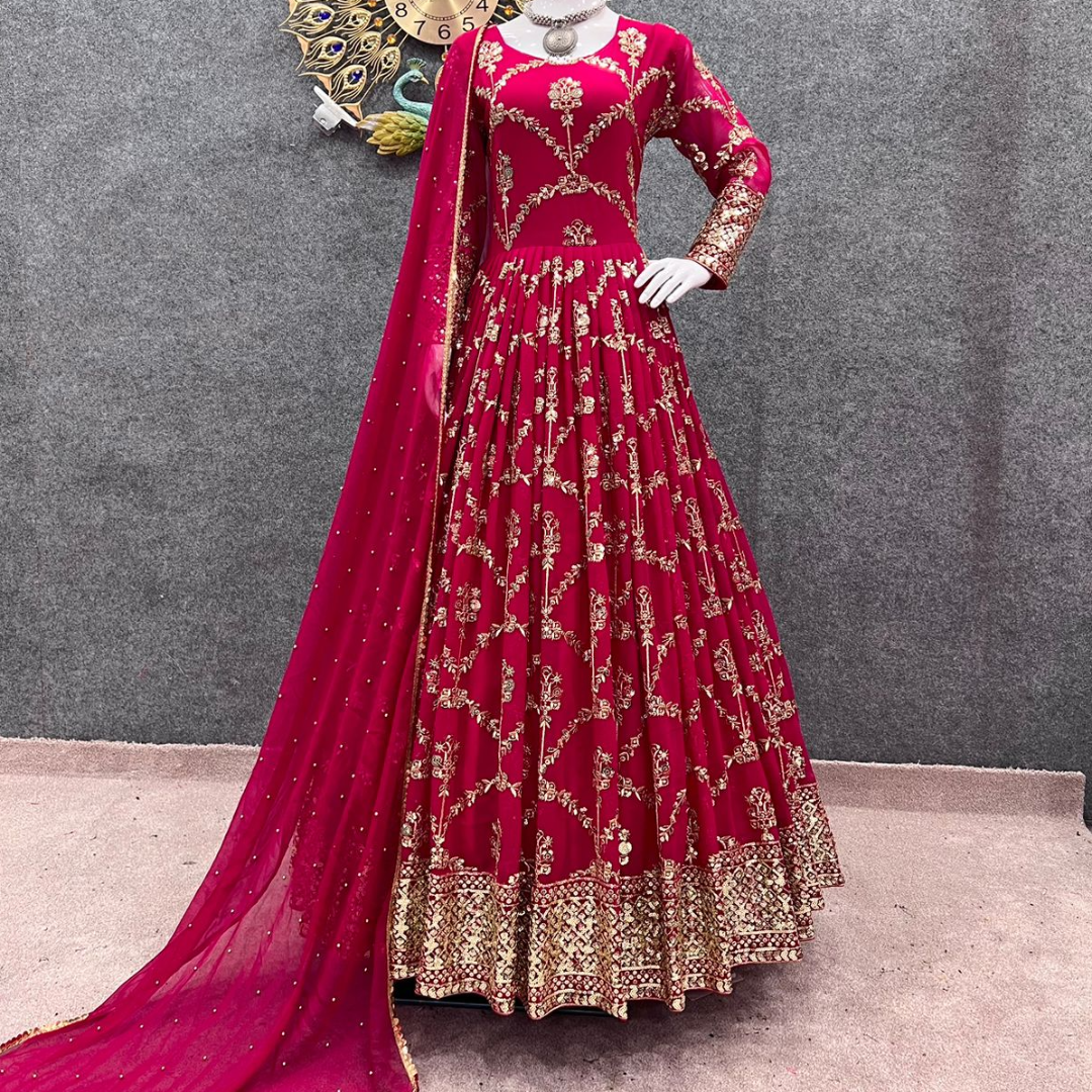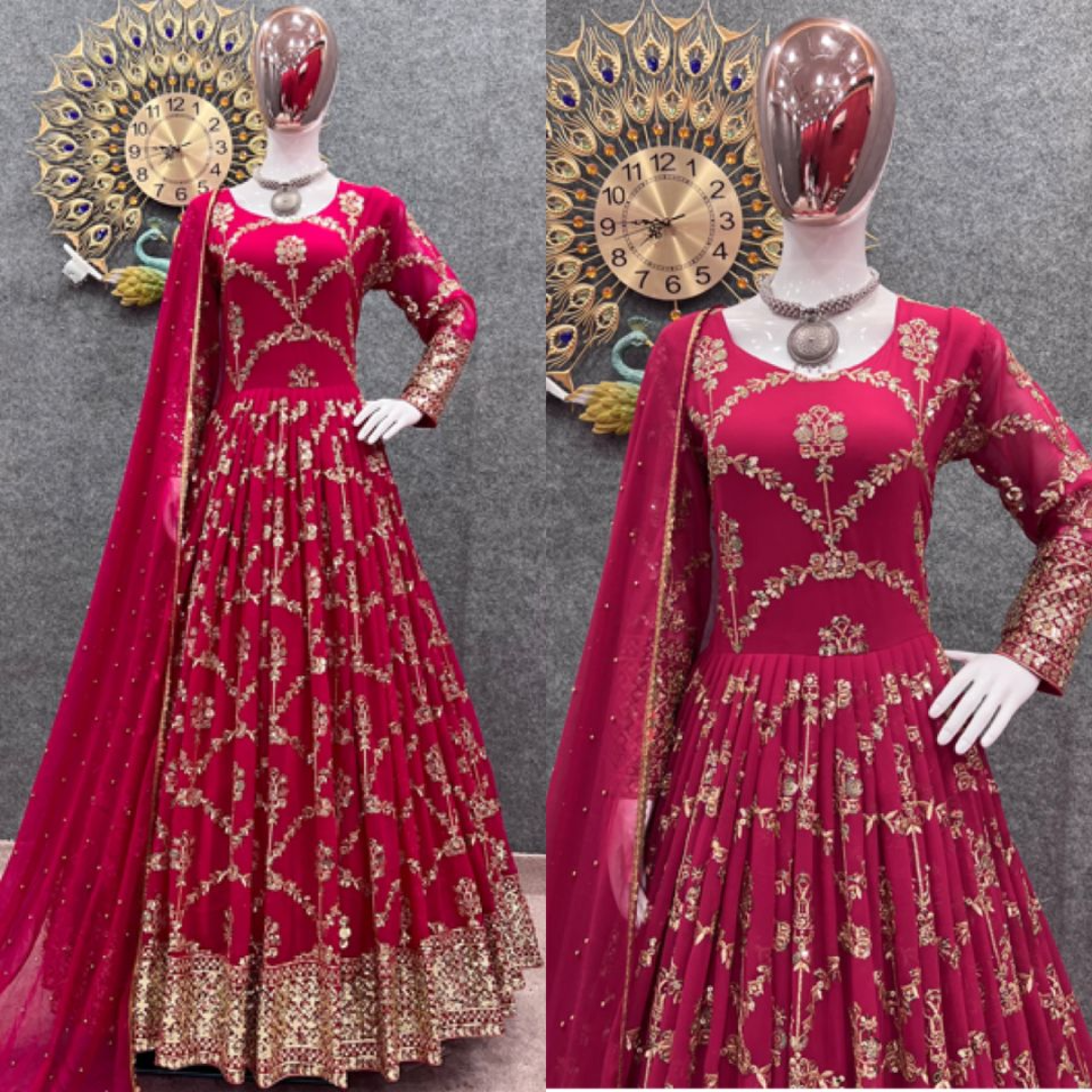Gown Fabric: Faux Georgette With Full Heavy 5mm Embroidery Sequence Work With Full Sleeve and Fancy Latkan