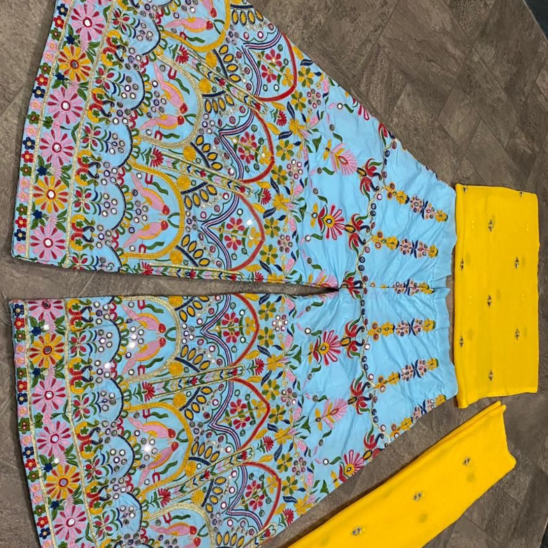 PALAZZO FABRICS: TAFFETA SILK WITH EMBROIDERY WORK WITH RIYAL MIRROR HAND WORK WITH ZIPPER