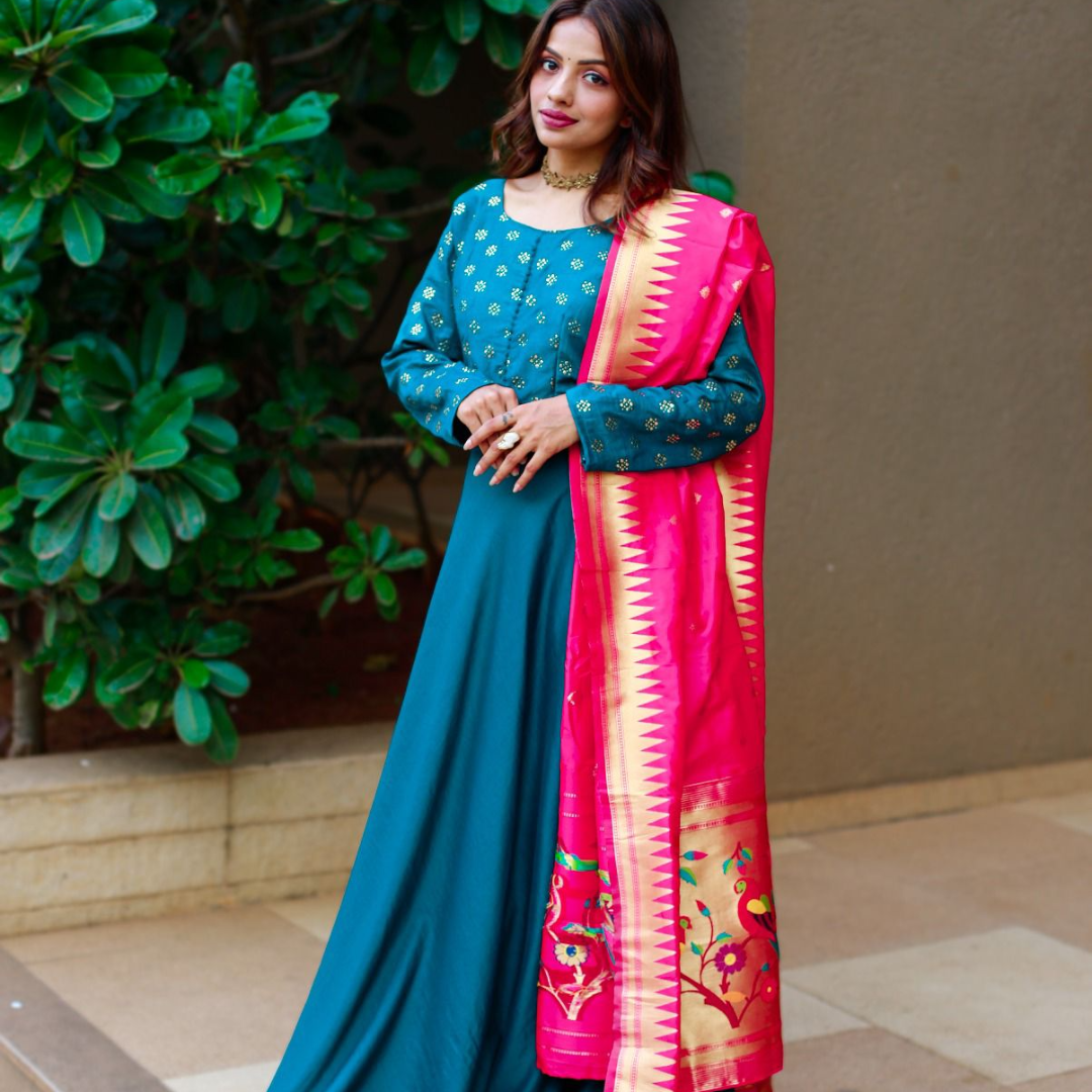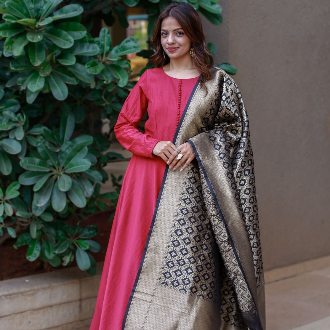 👉🏿Original Bandhej Silk -zari weaving work with tassels