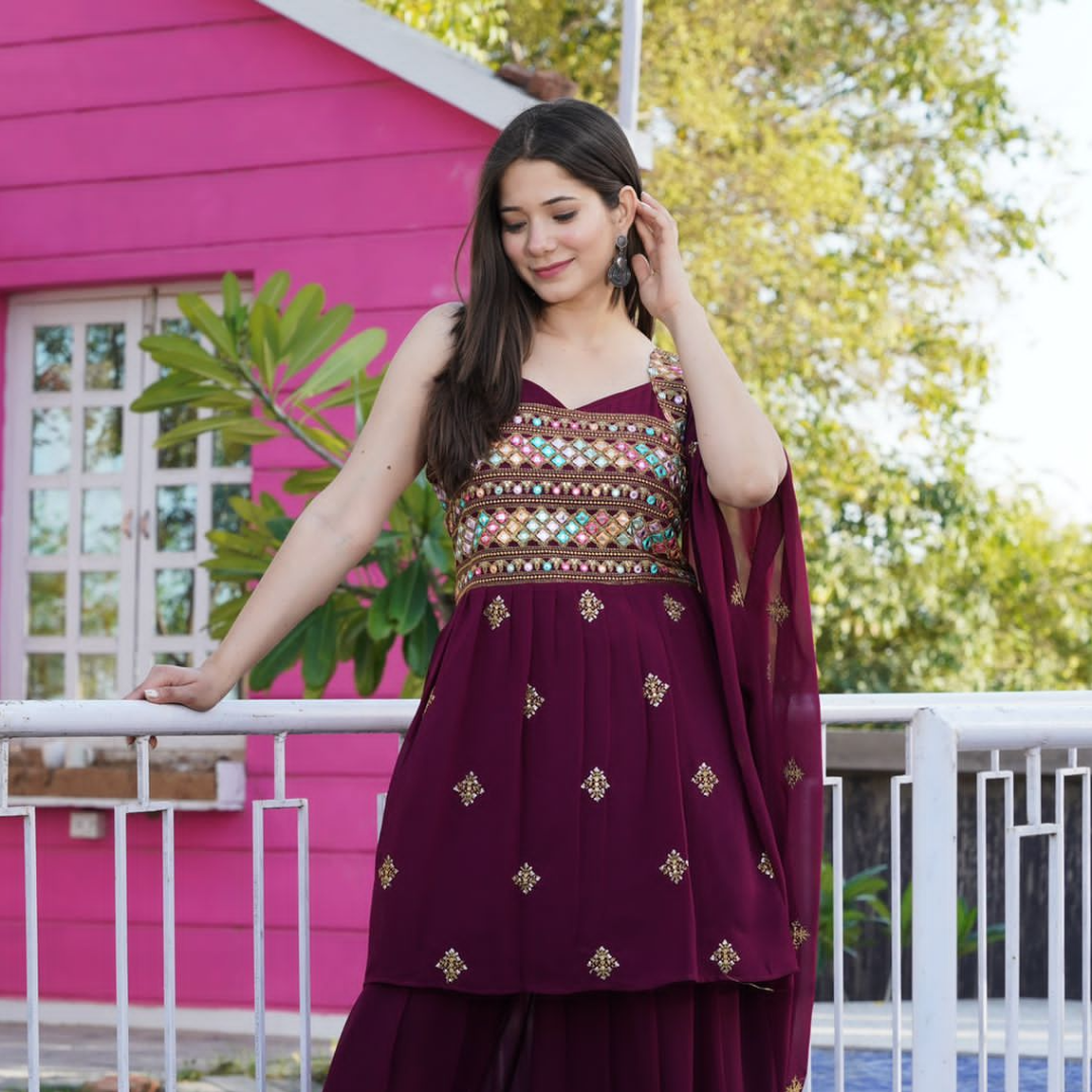 _Top:Bottom:Dupatta Ready to Wear Party Wear_😊