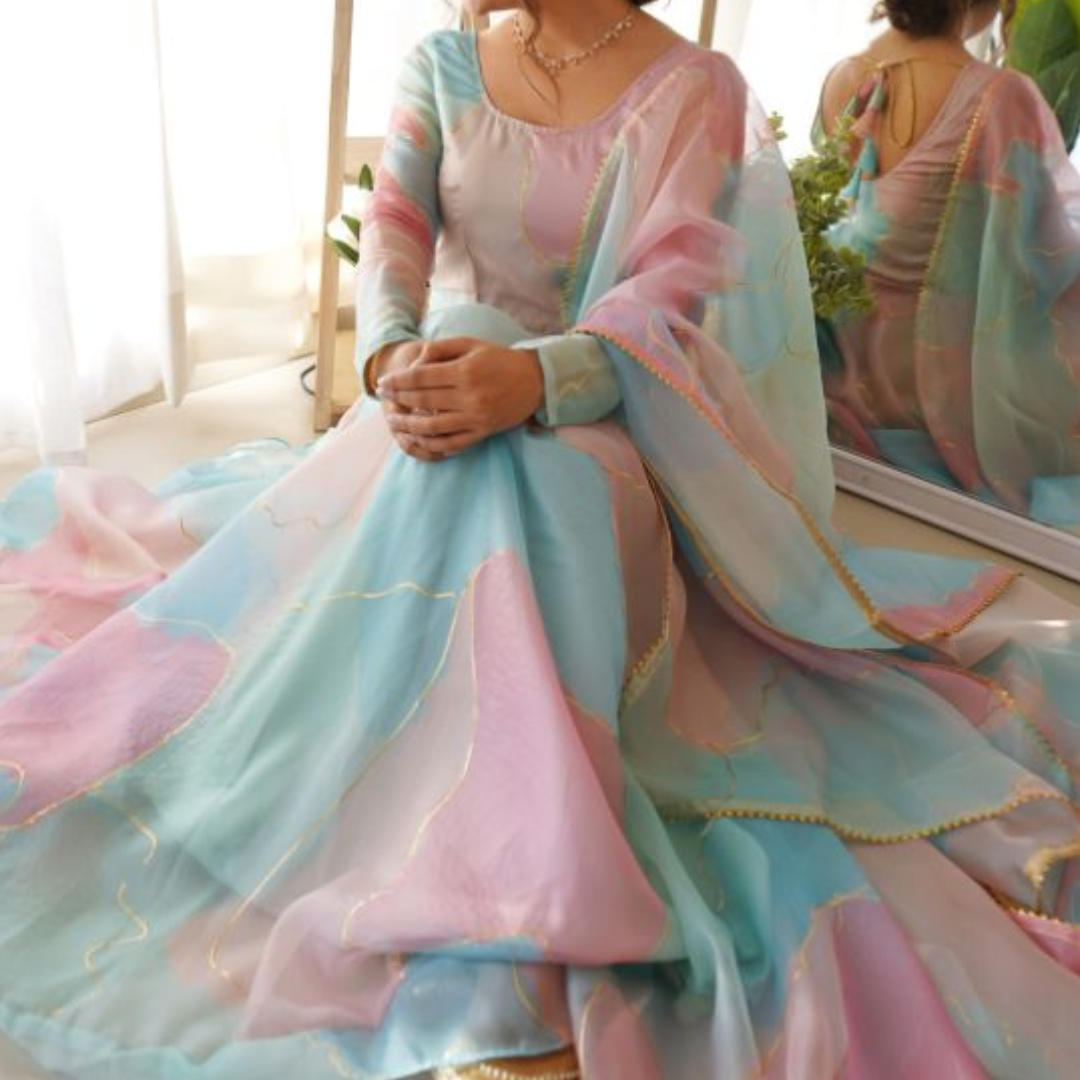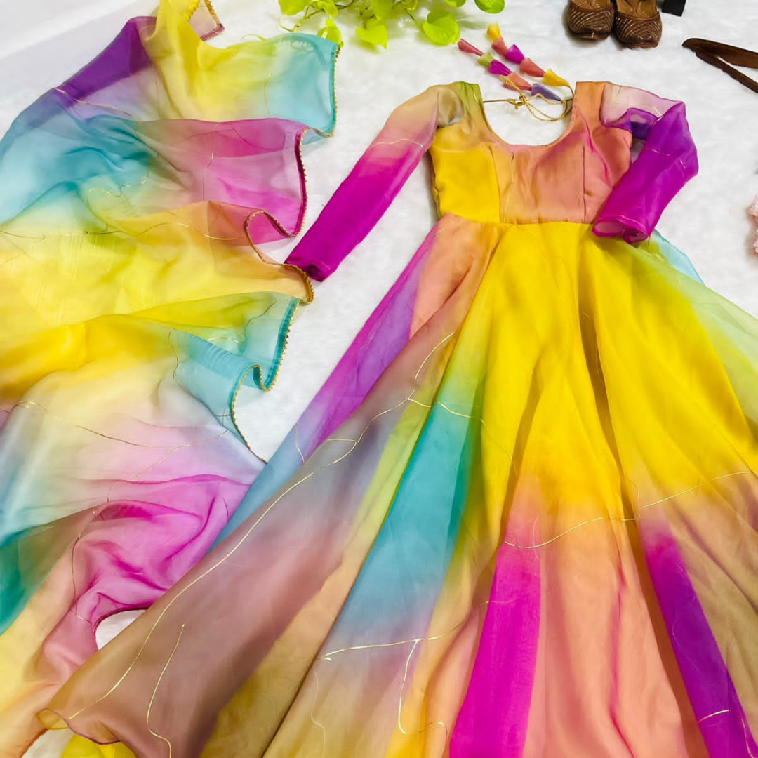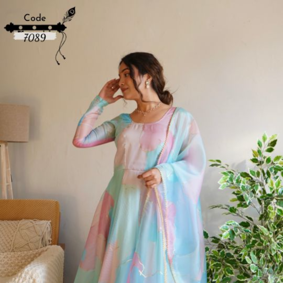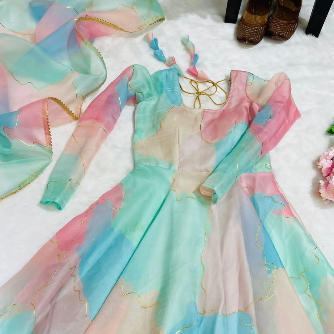 ๐๐ฅ๐ฅPresenting By New Party Wear Look Organza Taby Silk Gown With Dupatta