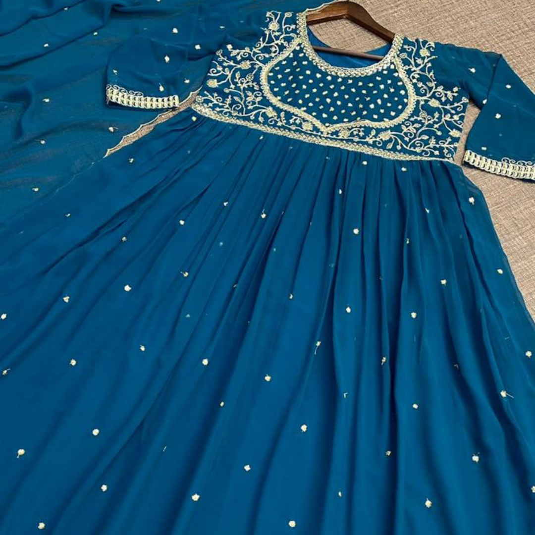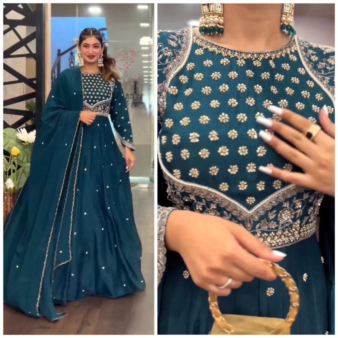 NEW BOUTIQUE DESIGNER HEAVY CORDING EMBROIDERED WORK GOWN AND LEHENGHA WITH DUPATTA