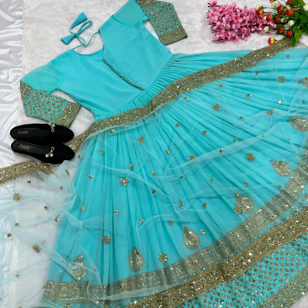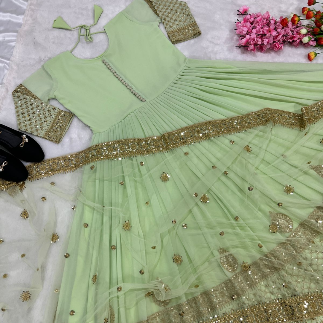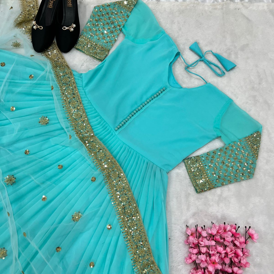 π Gown Fabric * : Heavy Faux Georgette With Heavy *5mm Embroidery Sequence Work