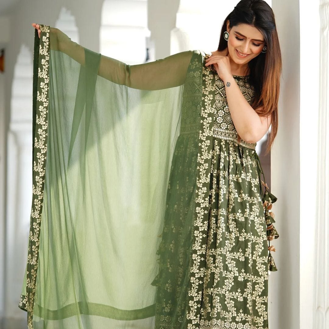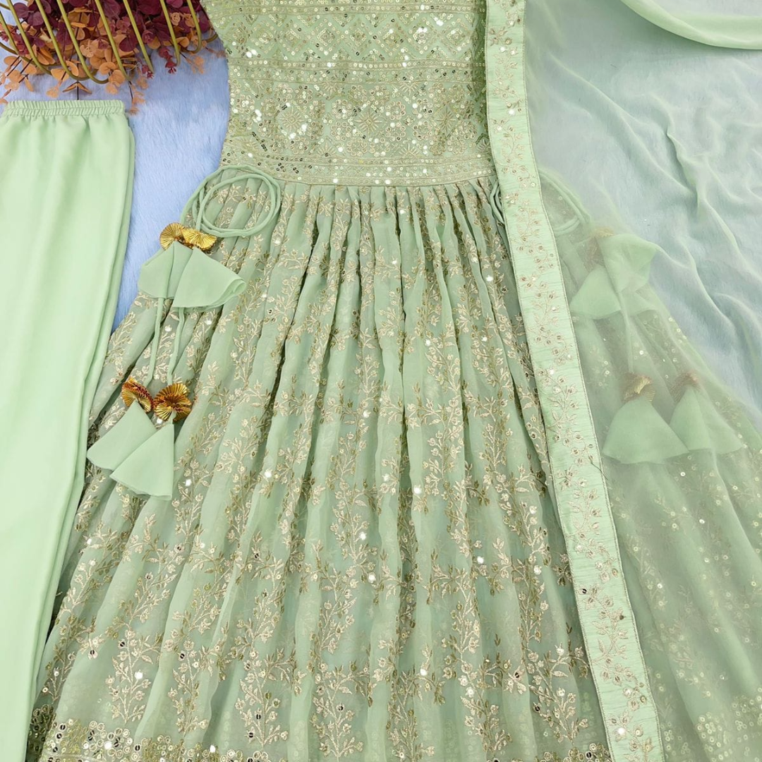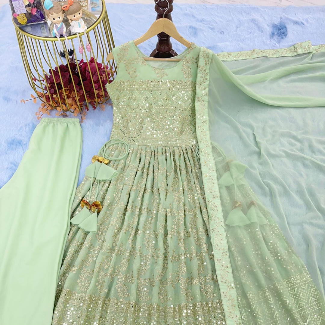 👉Dupatta Fabric: Heavy Faux Georgette With Four Side Embroidery 5 mm Sequence Work Lece Broder