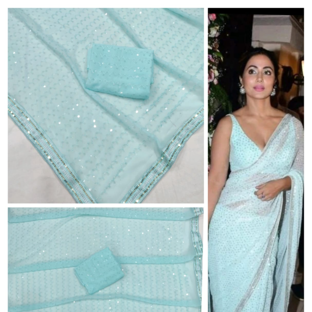 Classic and elegant, this saree will be a perfect addition to your ethnic wardrobe, offering a soothing and pretty wide The adornment of sequence work makes it impeccable