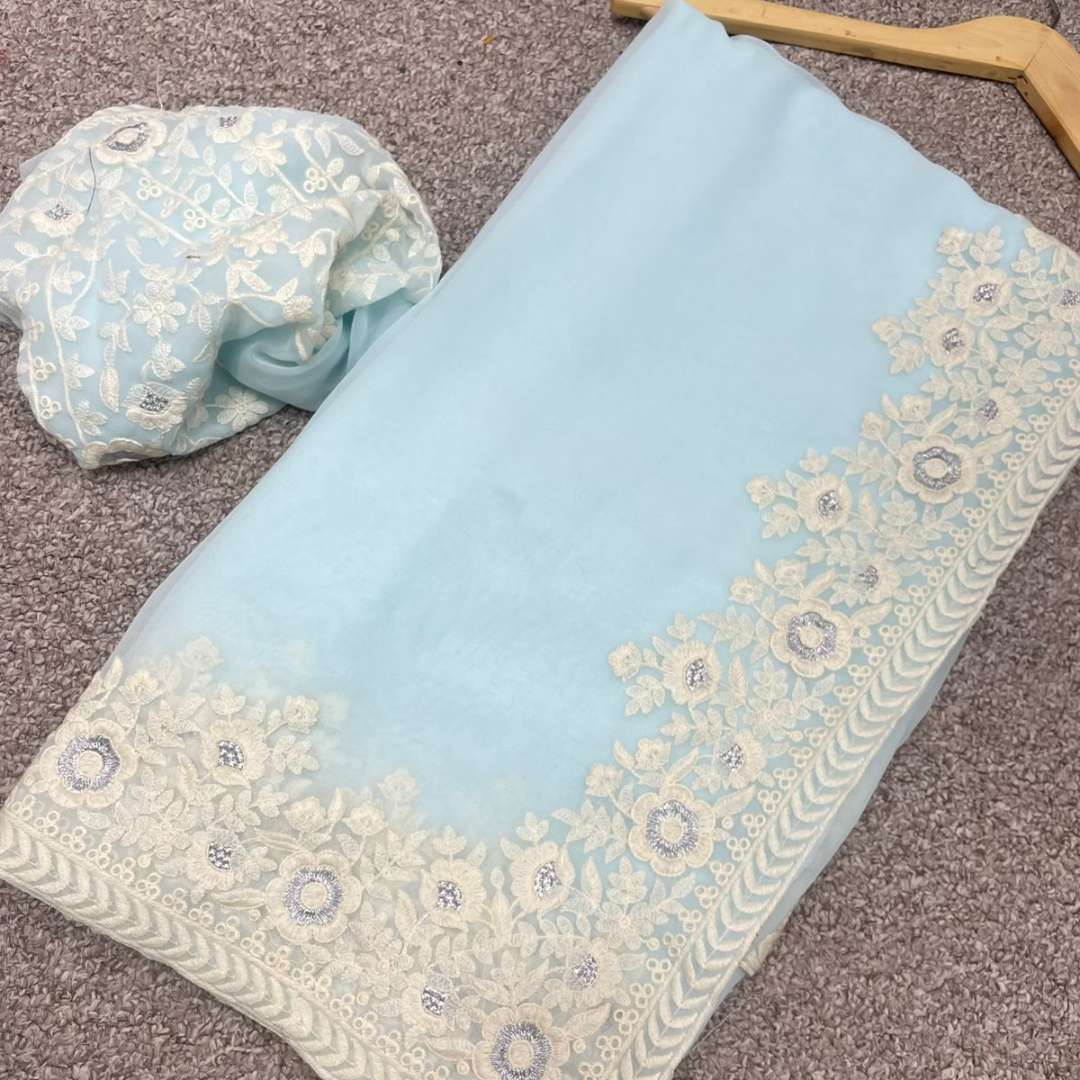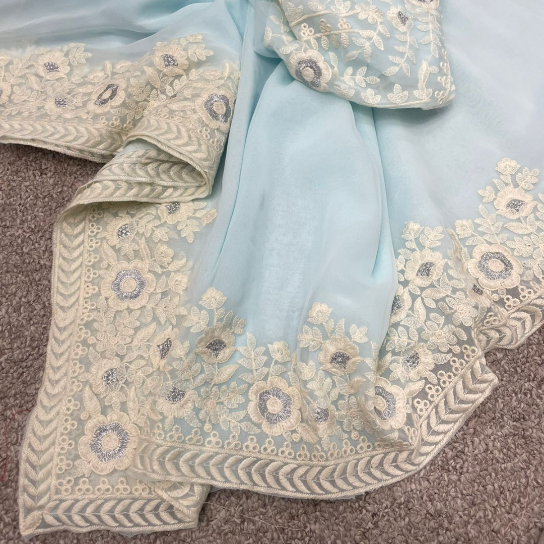 Saree :- Heavy Georgette saree with C Pallu cotton thread embroidery work with cut work.