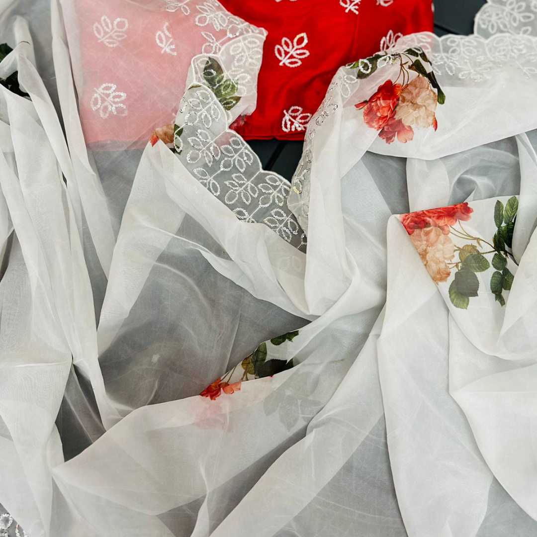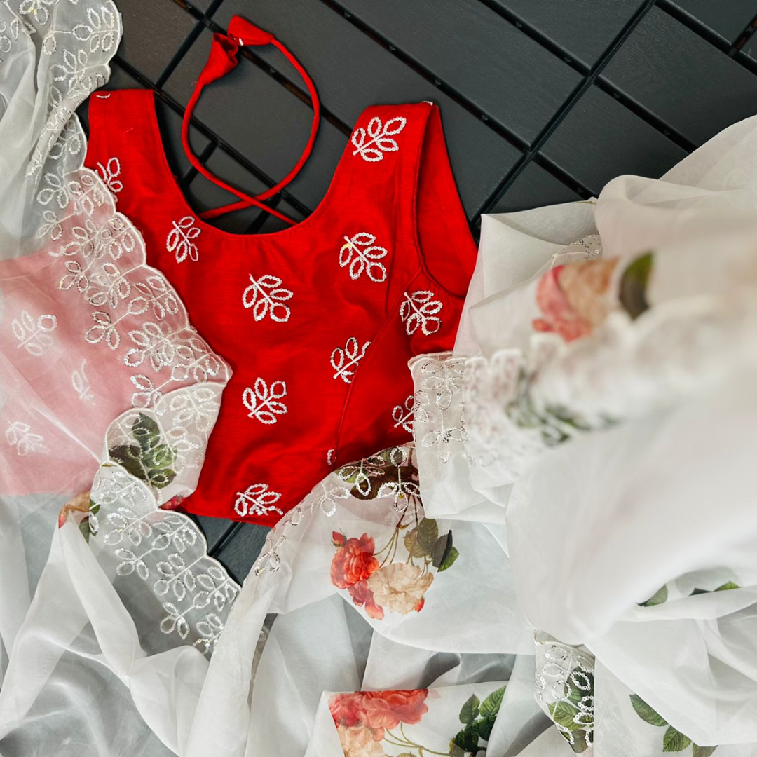 unstitched also available approx 1-meter fabric for blouse small leaf's embroidery all over