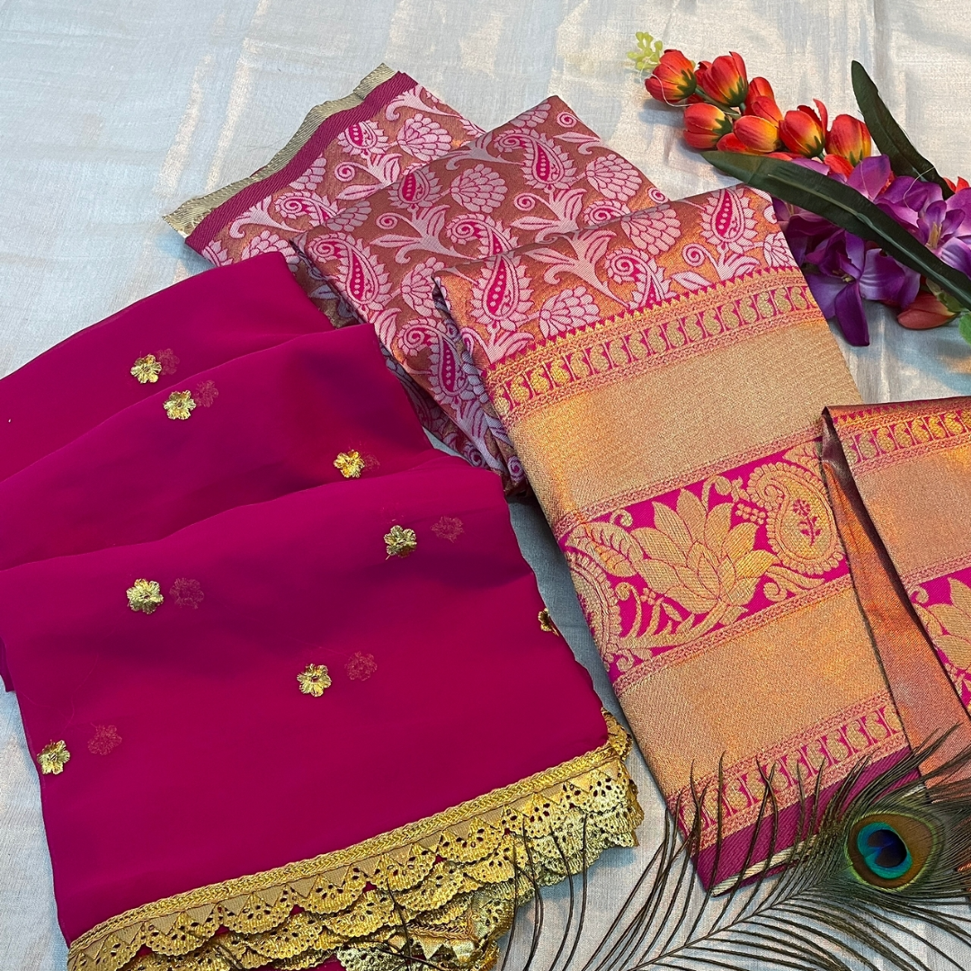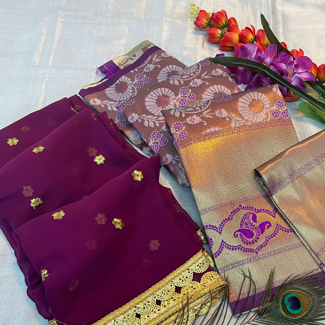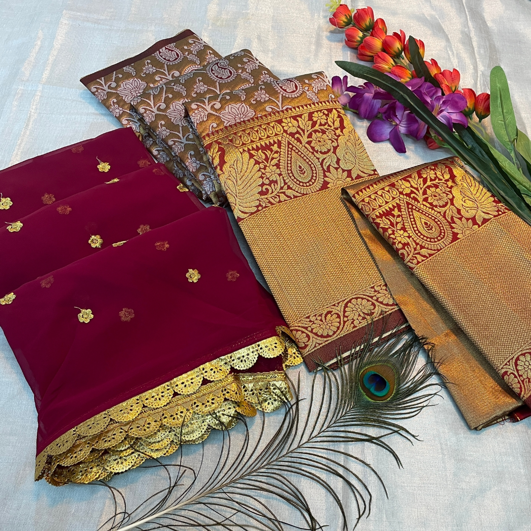 🪷New design arrived Gold Zari combination Kanjivaram Silk lehnga having a length of 3.00 MTR. (1)