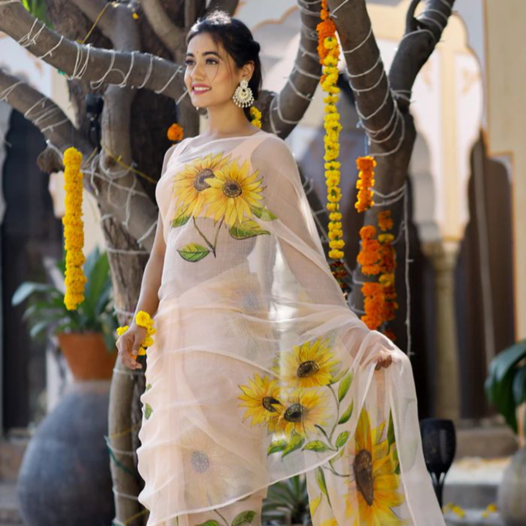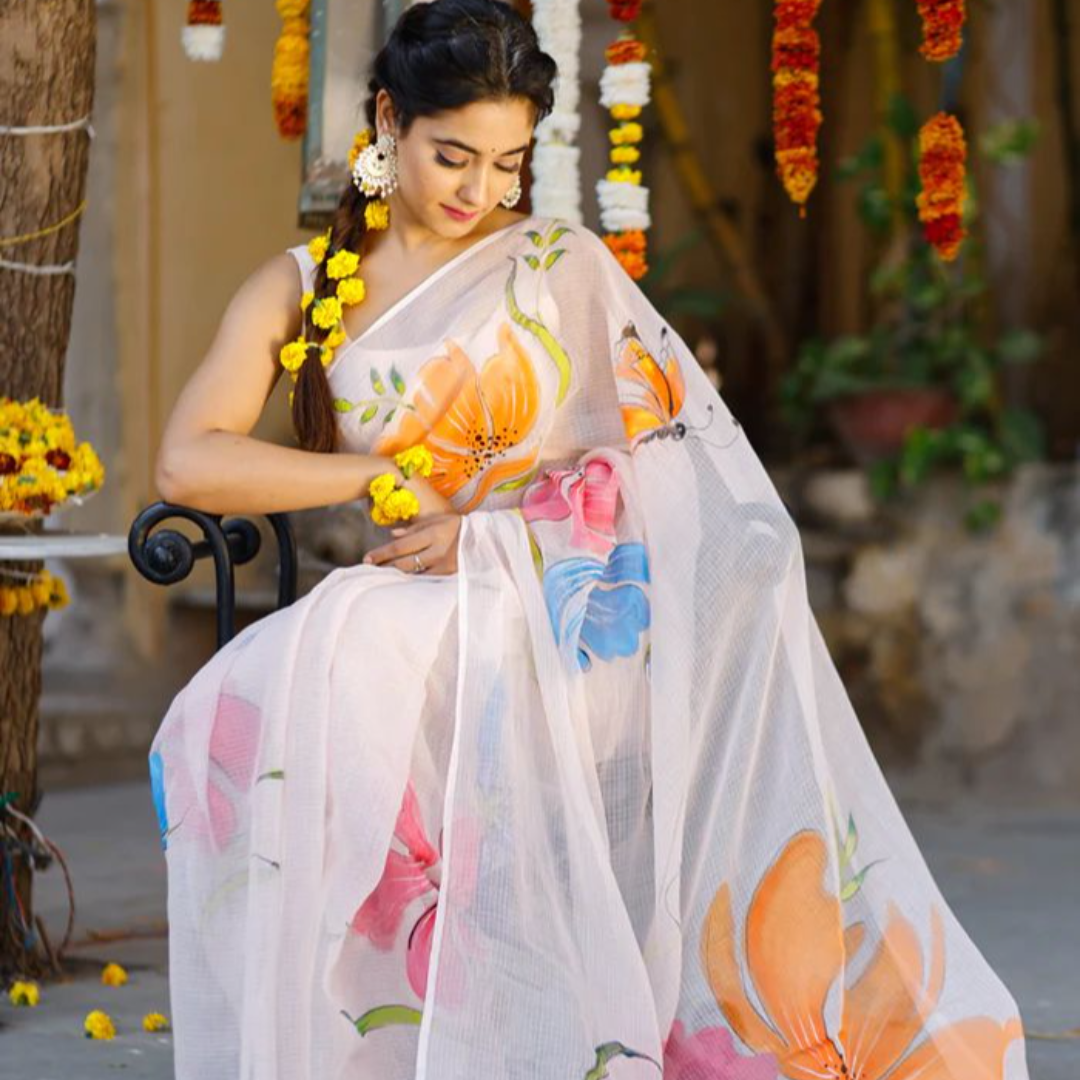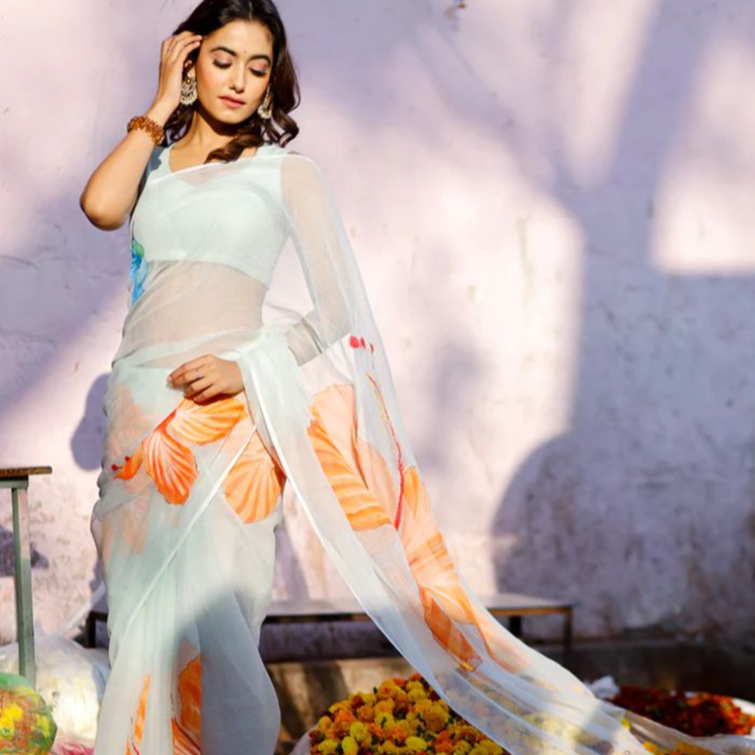 Beautiful n elegant Kota doriya sarees with floral print crafted digital on the fabric